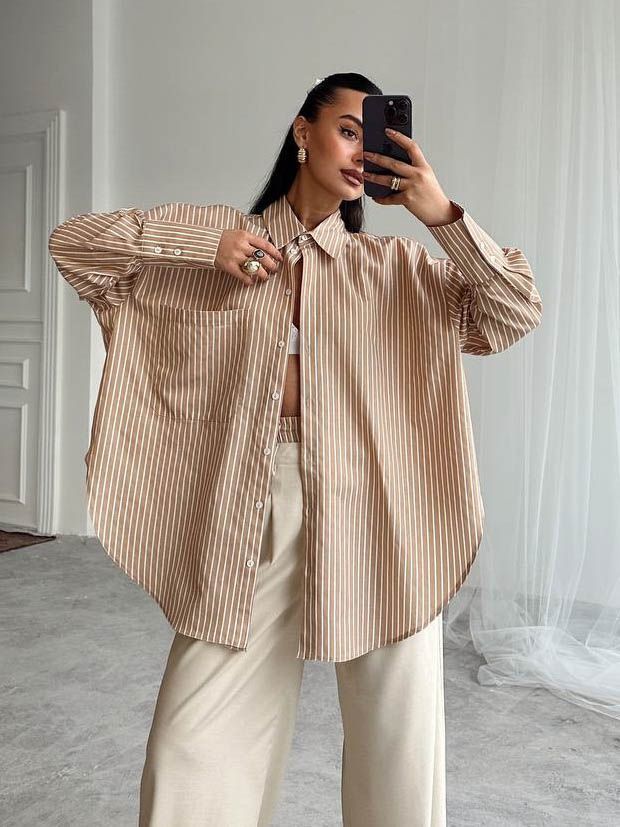 Эта женская рубашка в полоску в пижамном стиле - идеальный выбор для тех, кто ценит стиль и комфорт. Она изготовлена из высококачественного хлопка, что гарантирует ее долговечность и надежность.