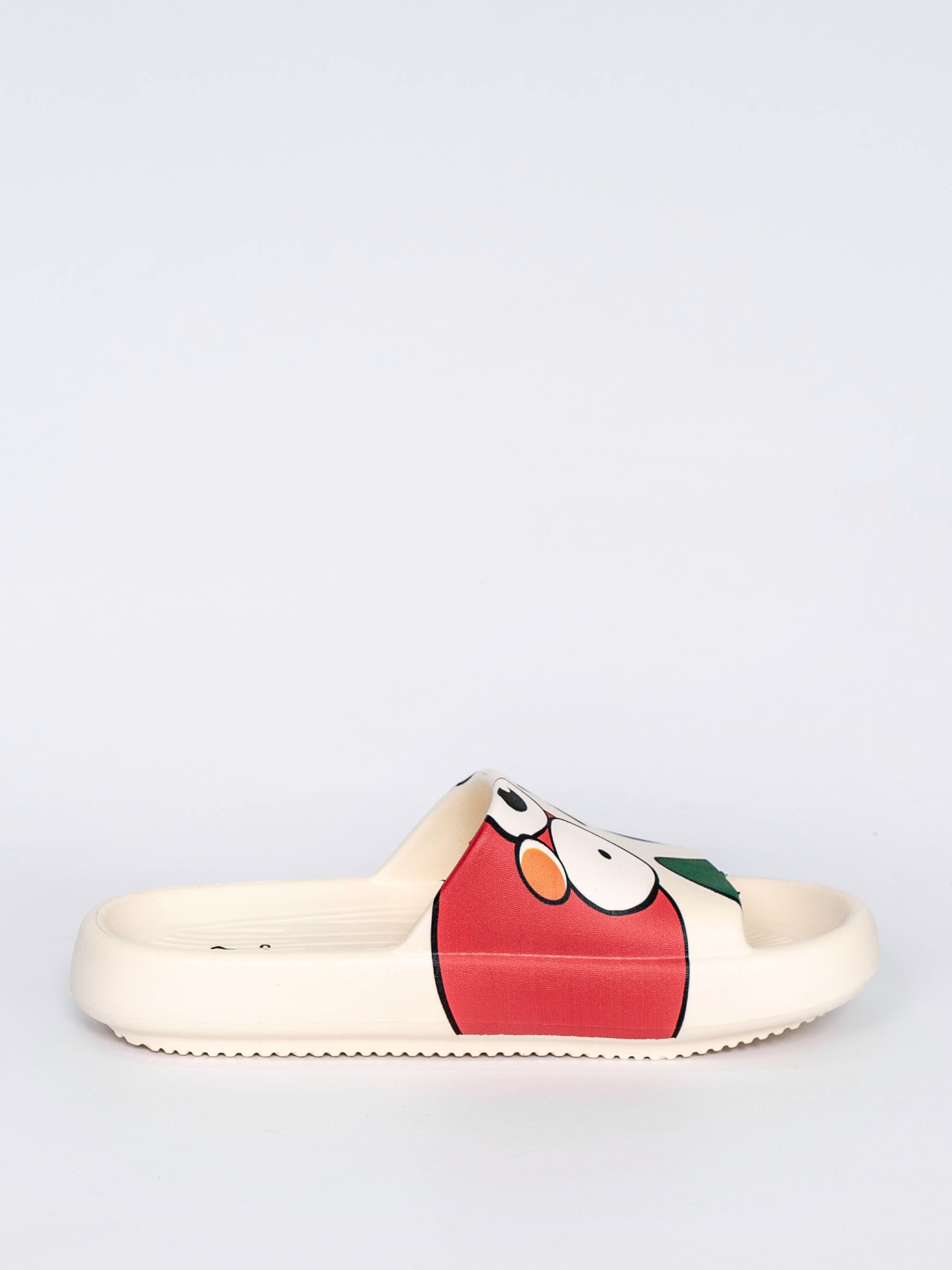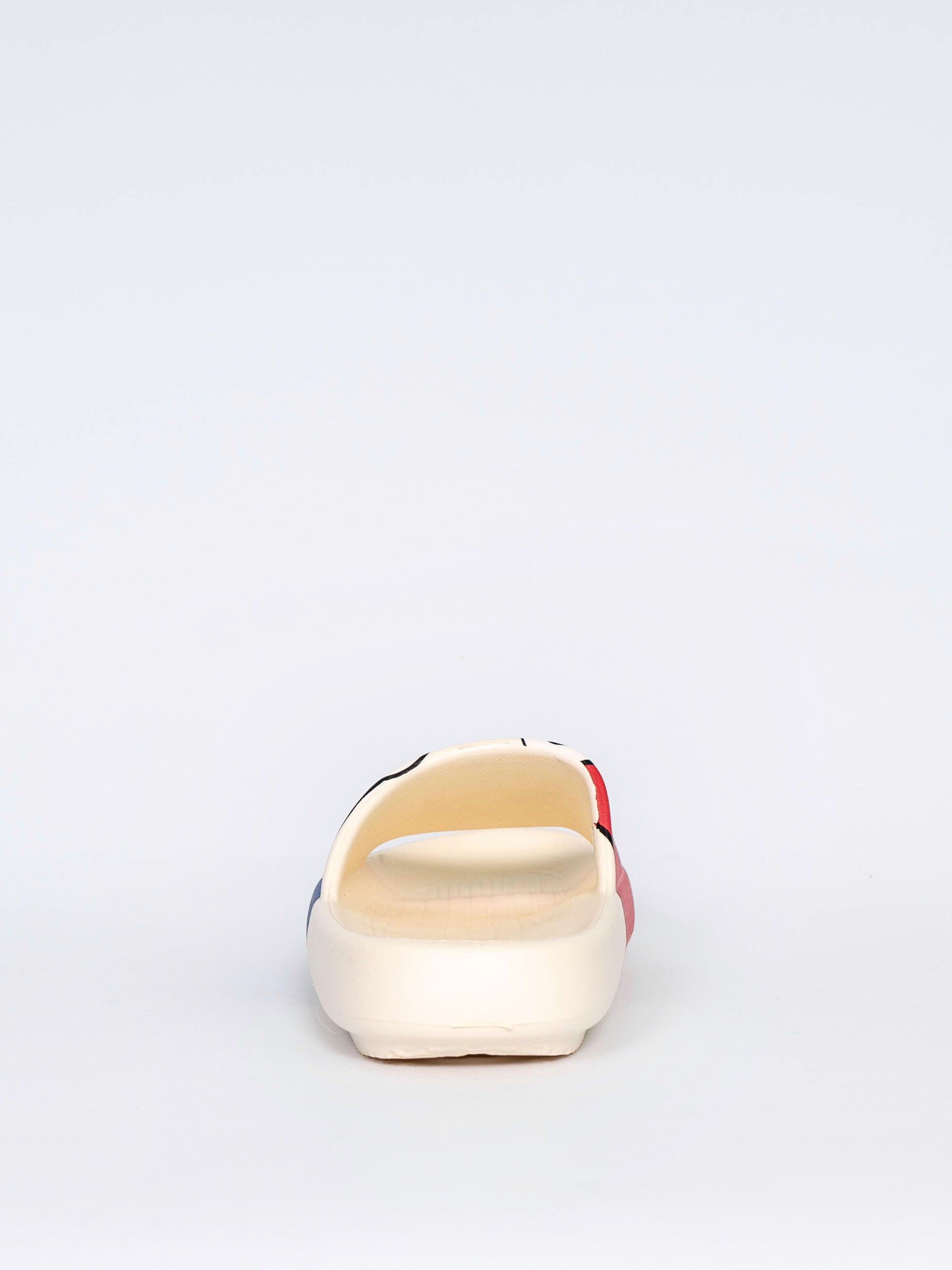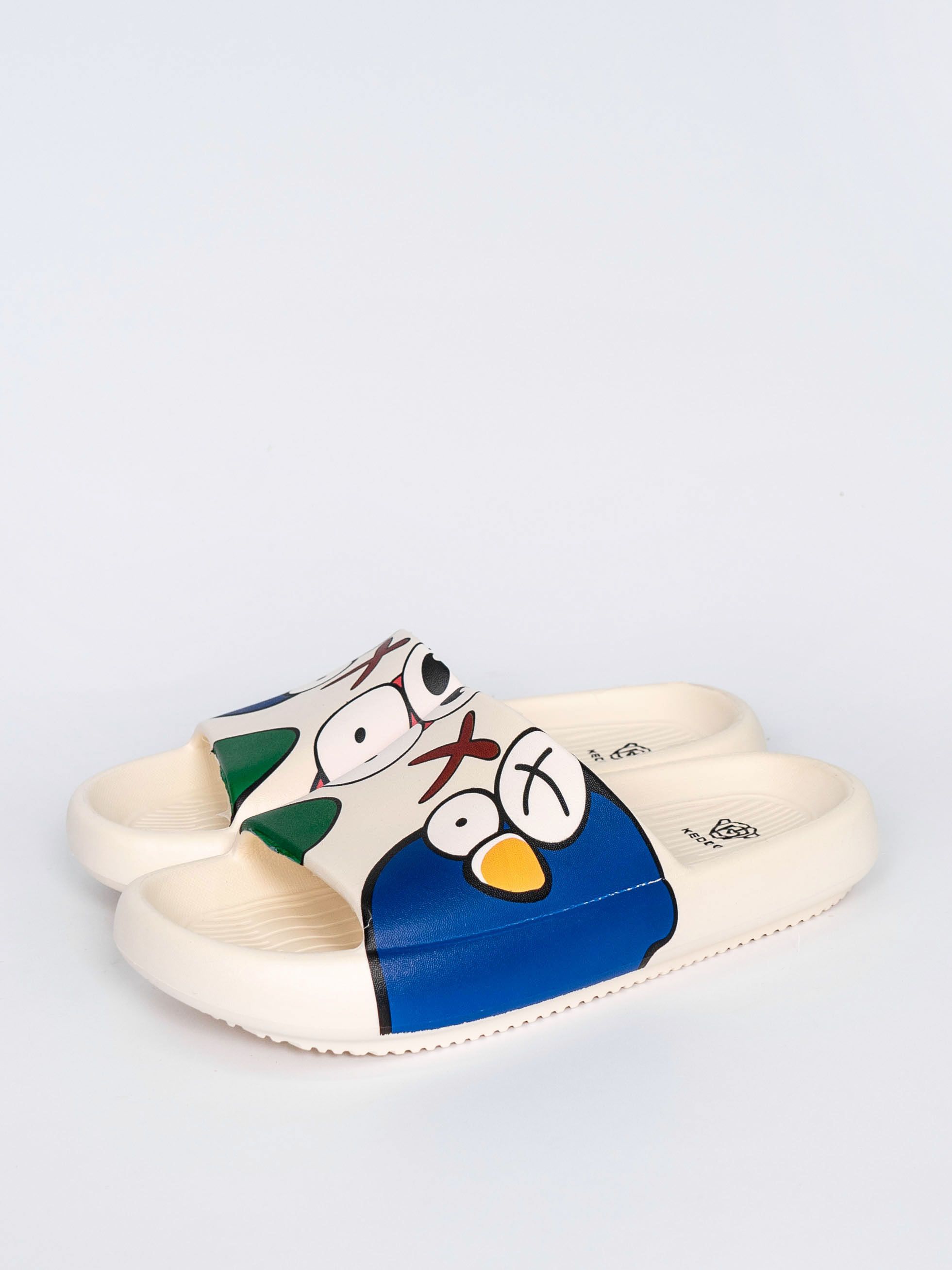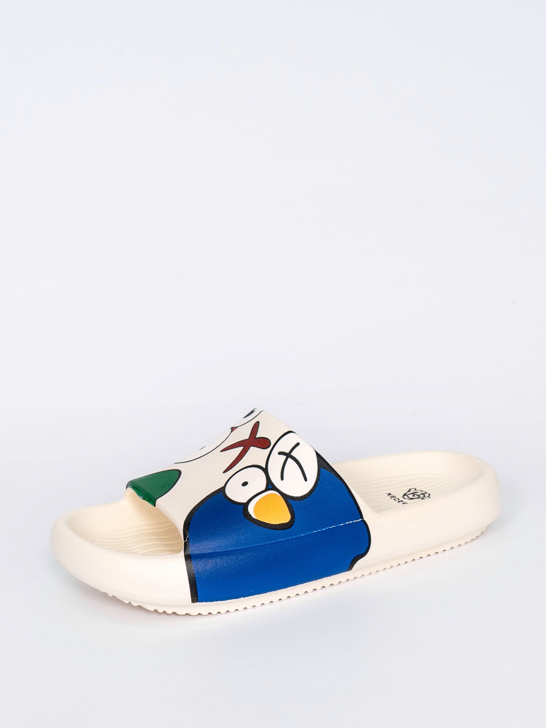 Шлепанцы женские светло-бежевого цвета с ярким принтом разработаны с учетом анатомических особенностей стопы и гарантируют комфорт даже при длительной носке, а отсутствие подкладки позволяет ноге дышать.