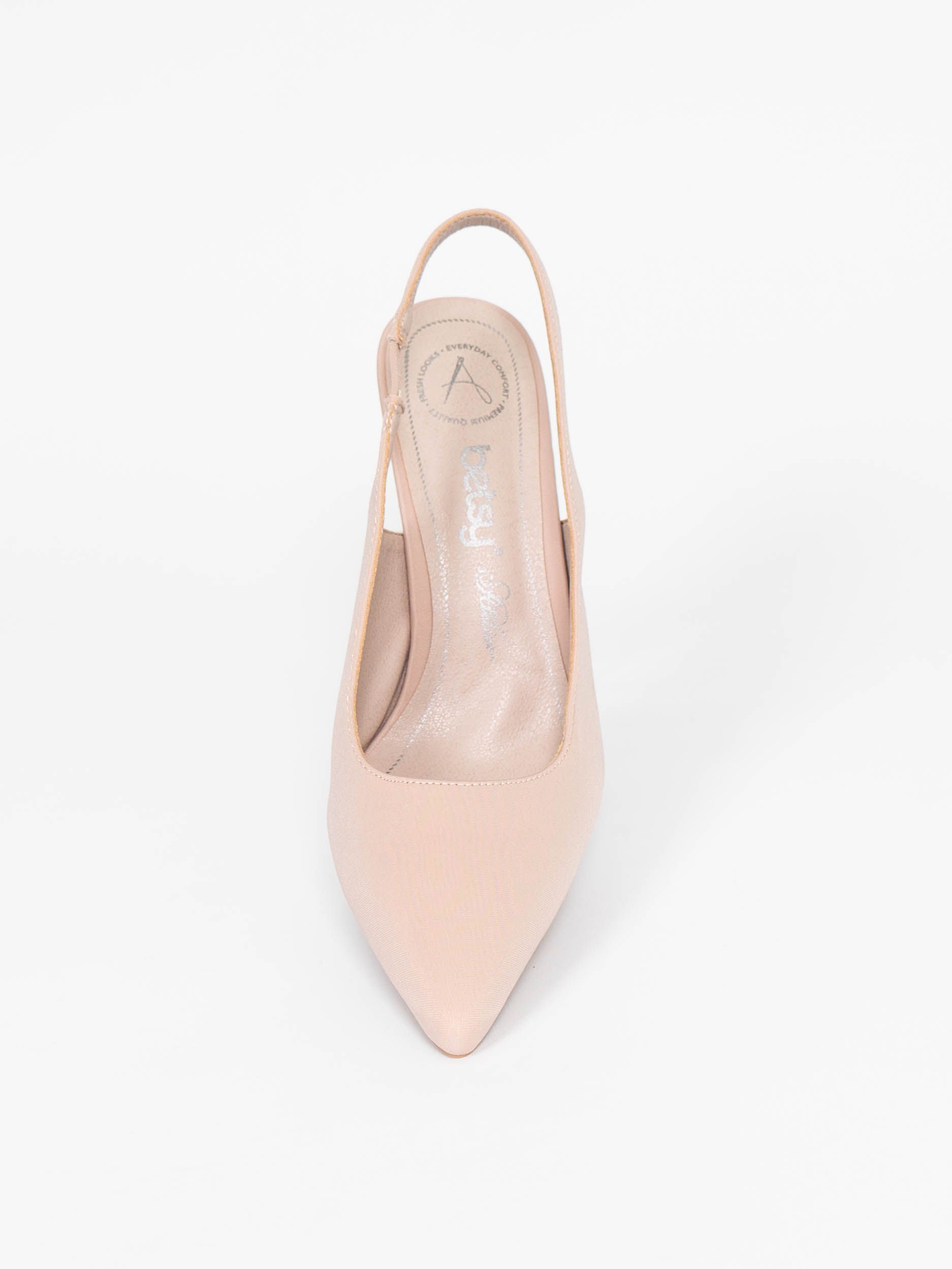 Туфли женские бежевого цвета на устойчивом каблуке-шпильке разработаны с учетом анатомических особенностей стопы и гарантируют комфорт даже при длительном ношении, а мягкая подкладка позволяет ноге находиться в комфорте на протяжении всего времени. Модель слингбэки отличается изысканным дизайном в виде изящного регулируемого ремешка на открытой пятке , который надёжно фиксирует туфли на стопе.