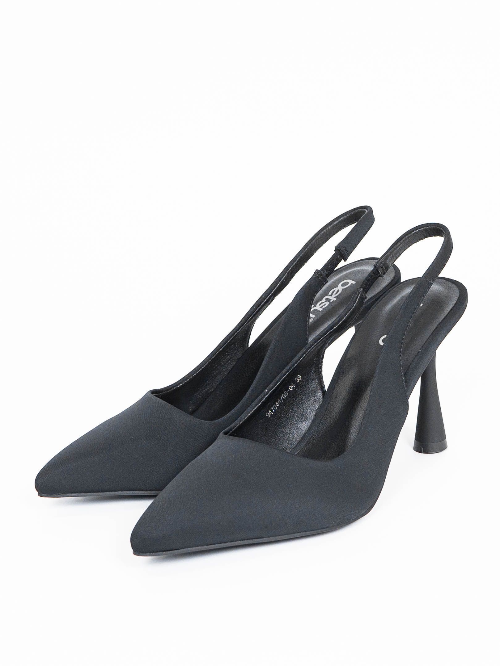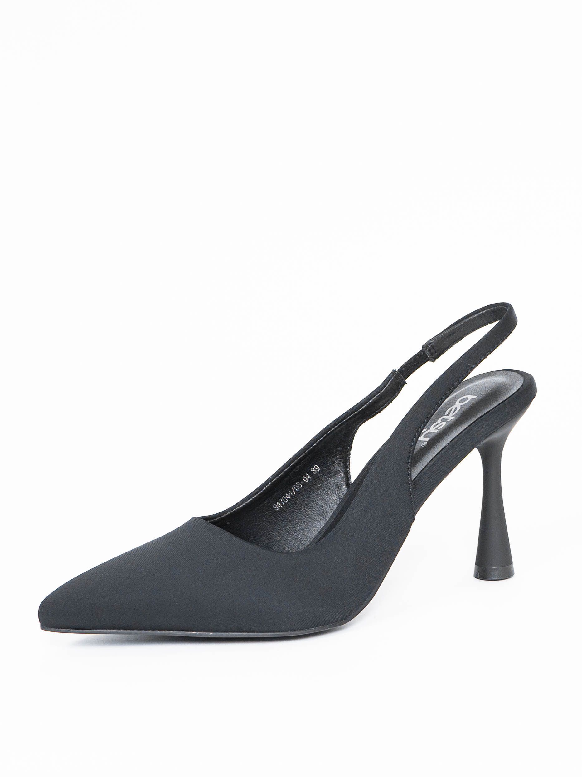Туфли женские черного цвета на устойчивом каблуке-шпильке разработаны с учетом анатомических особенностей стопы и гарантируют комфорт даже при длительном ношении, а мягкая подкладка позволяет ноге находиться в комфорте на протяжении всего времени. Модель слингбэки отличается изысканным дизайном в виде изящного регулируемого ремешка на открытой пятке , который надёжно фиксирует туфли на стопе.