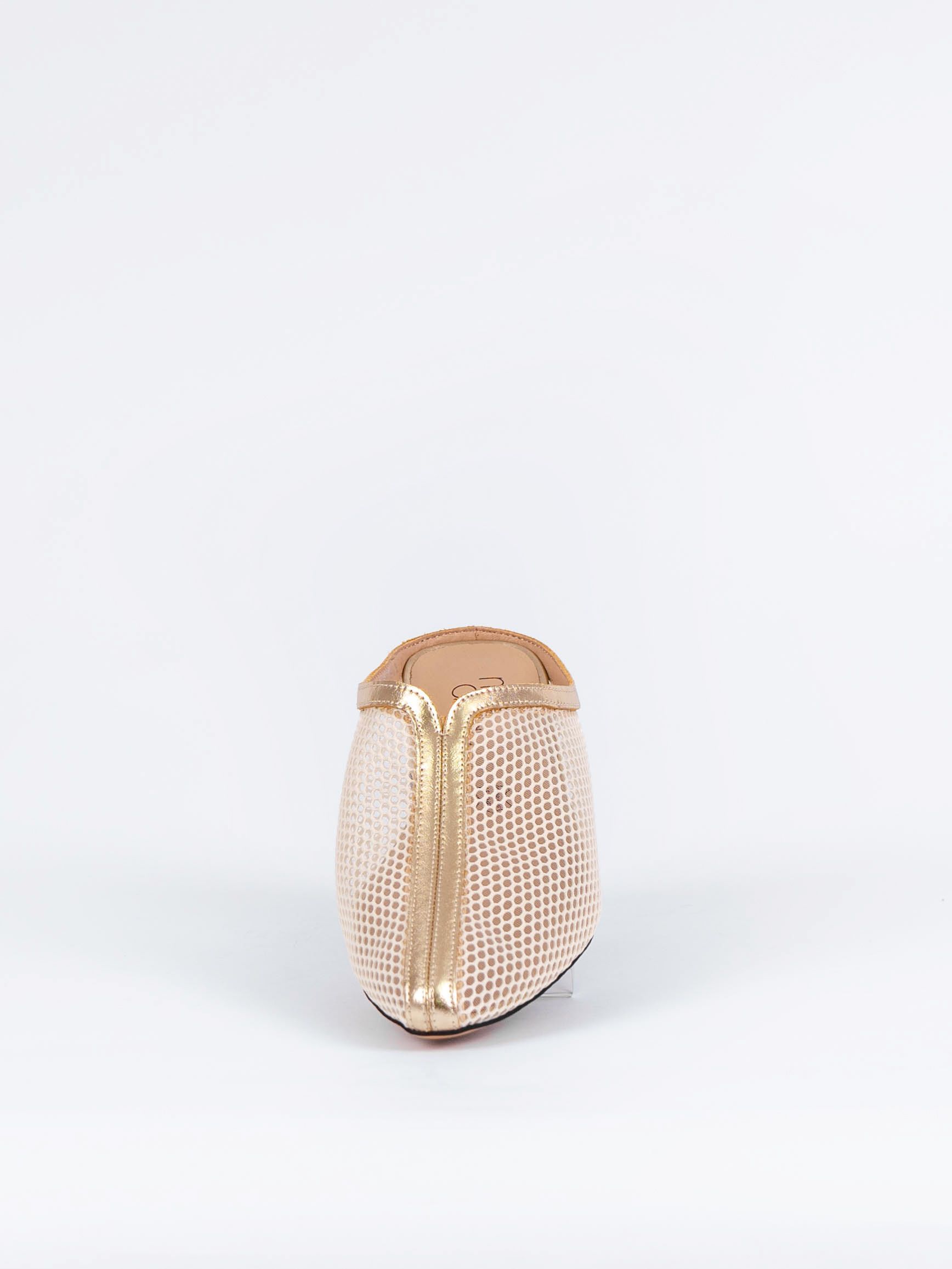 Сабо золотистого цвета сочетаются с разной палитрой одежды и сделают Ваш образ более ярким и привлекательным.