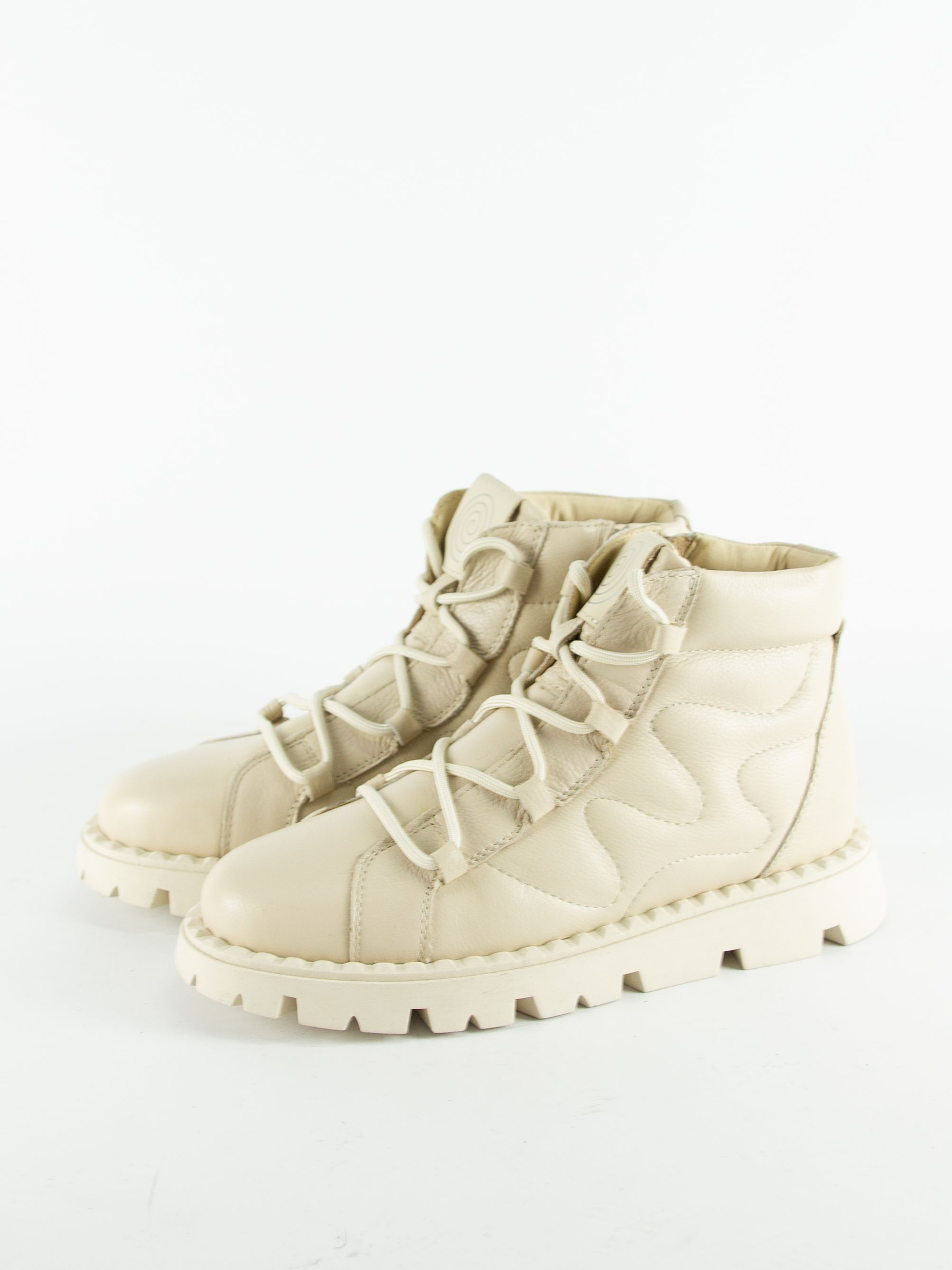 Ботинки женские российского производителя Nine Lines. Верх изготовлен из натуральной кожи бежевого цвета. Материал подкладки натуральная шерсть. Идеально подойдут на зиму и станут отличным завершением к Вашему гардеробу.