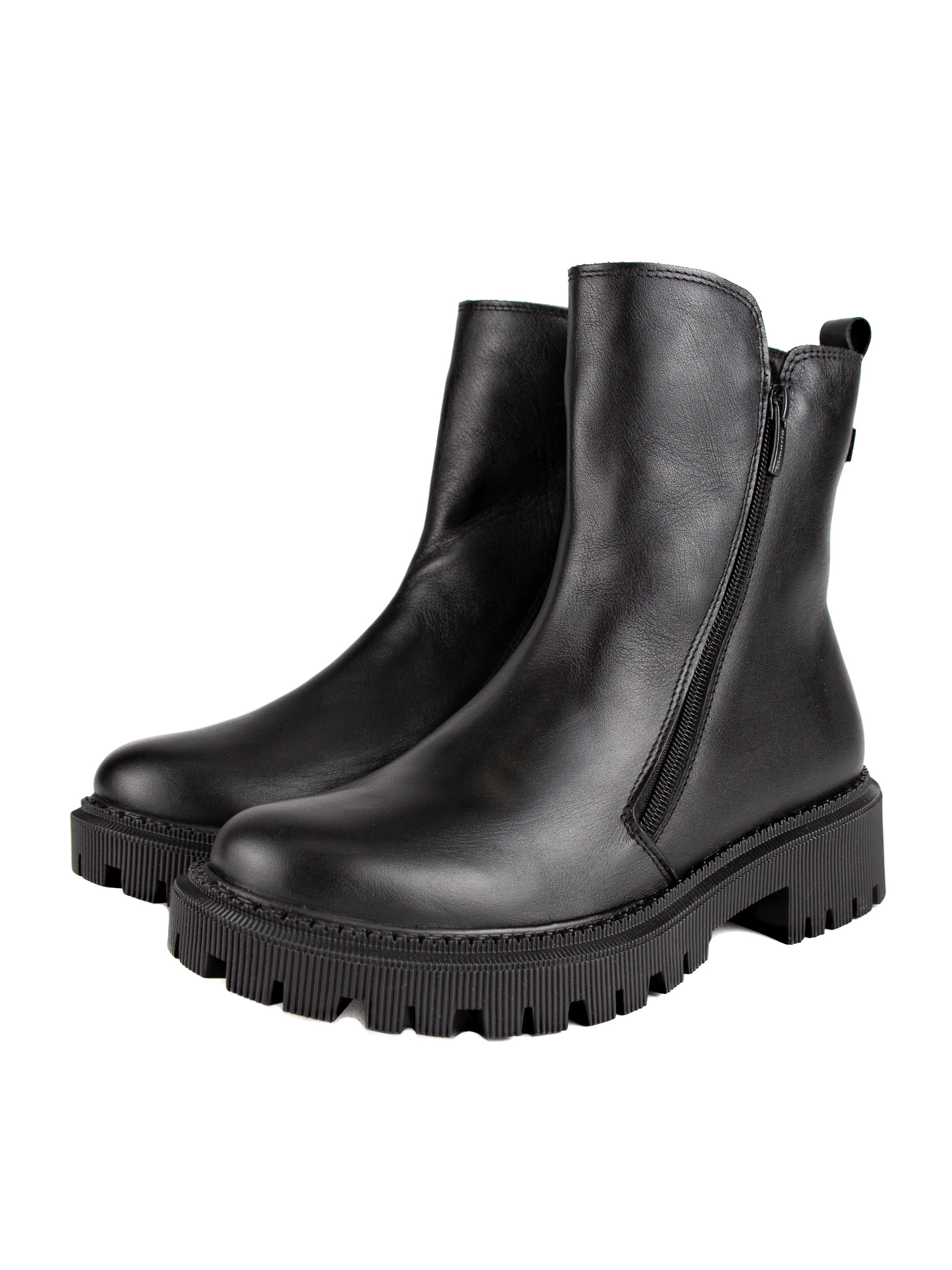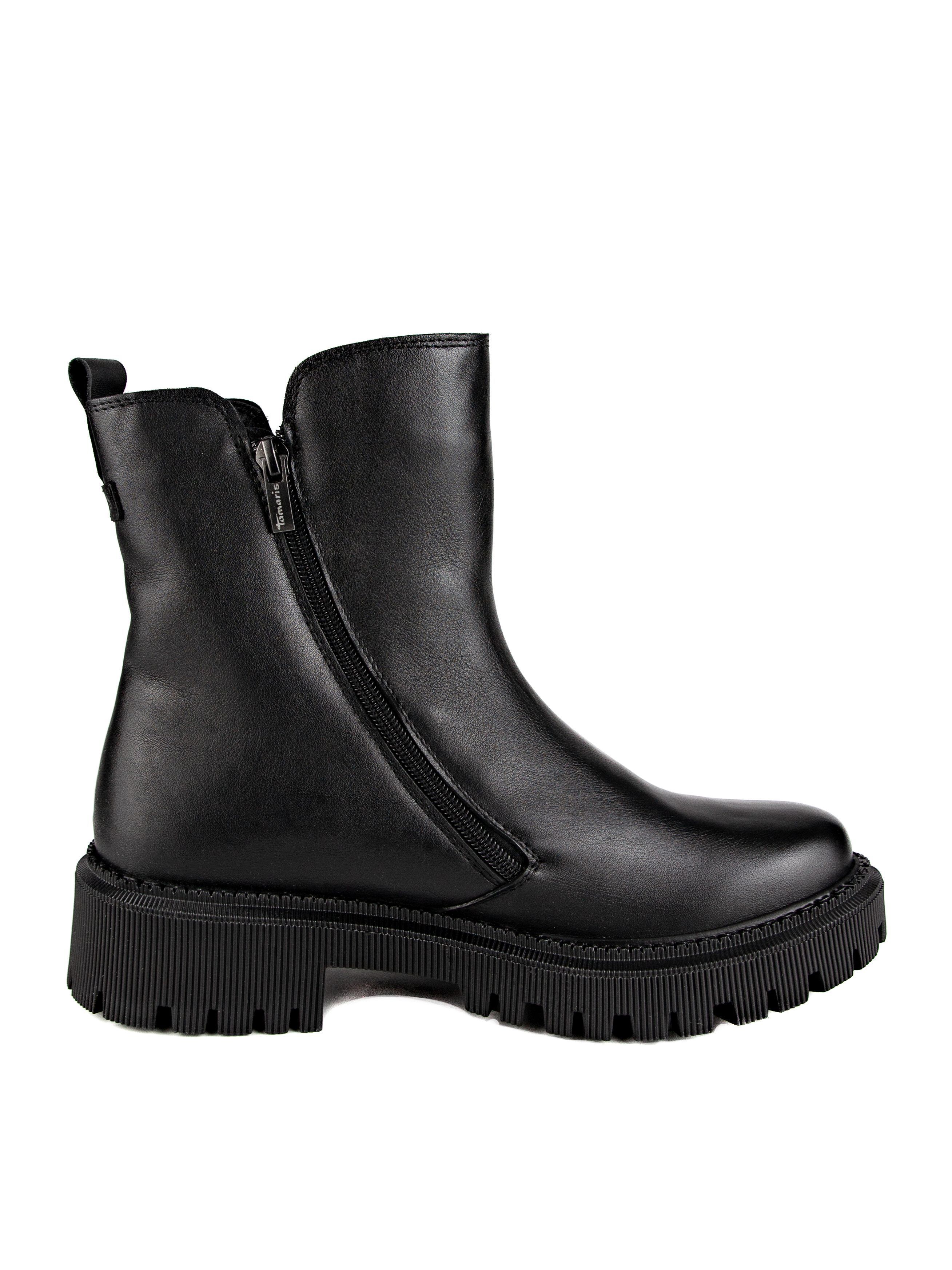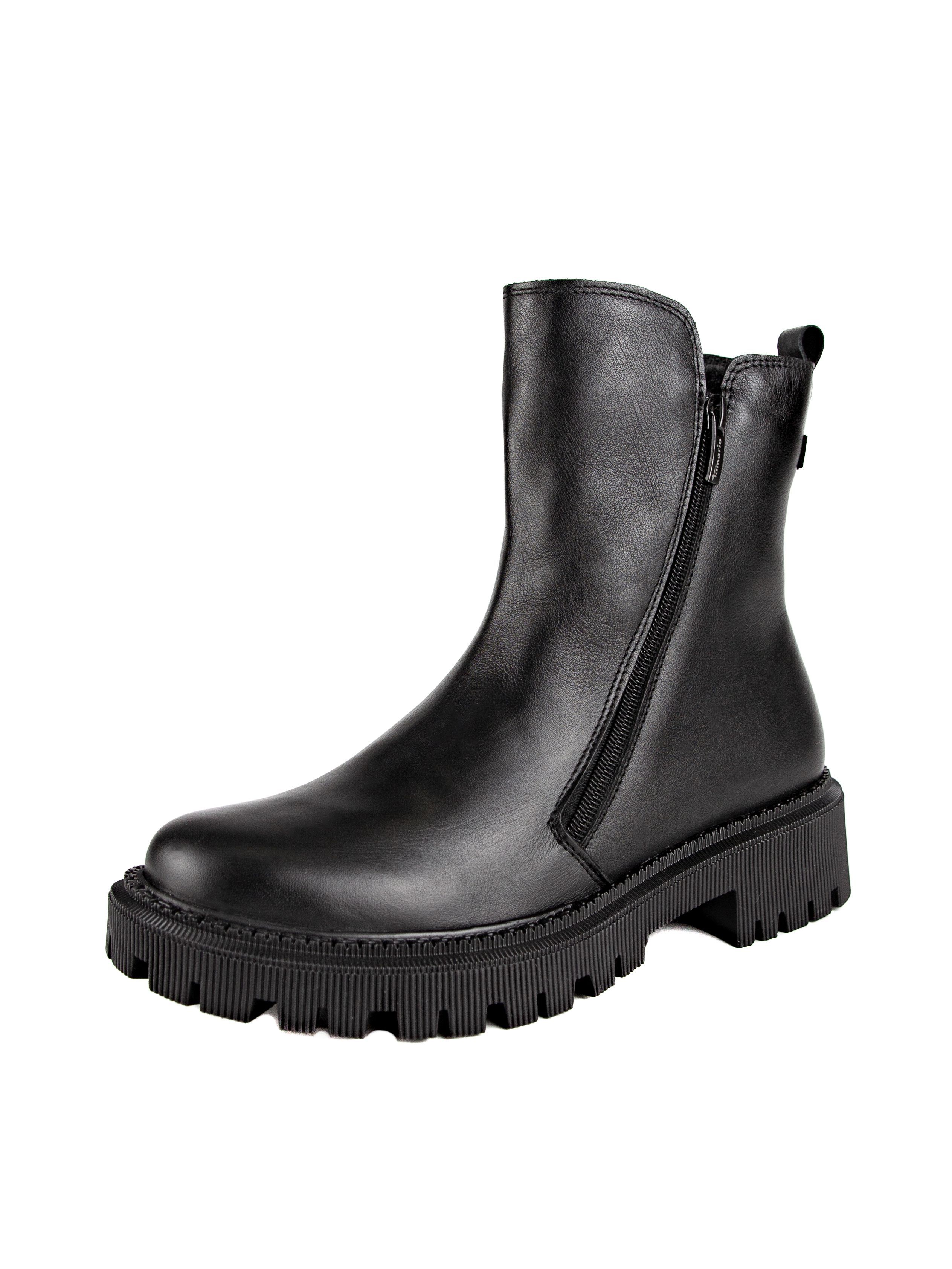 Ботинки женские немецкого бренда Tamaris. Верх изготовлен из натуральной кожи черного цвета. Материал подкладки натуральный мех. Идеально подойдут на зиму и станут отличным завершением к Вашему гардеробу.