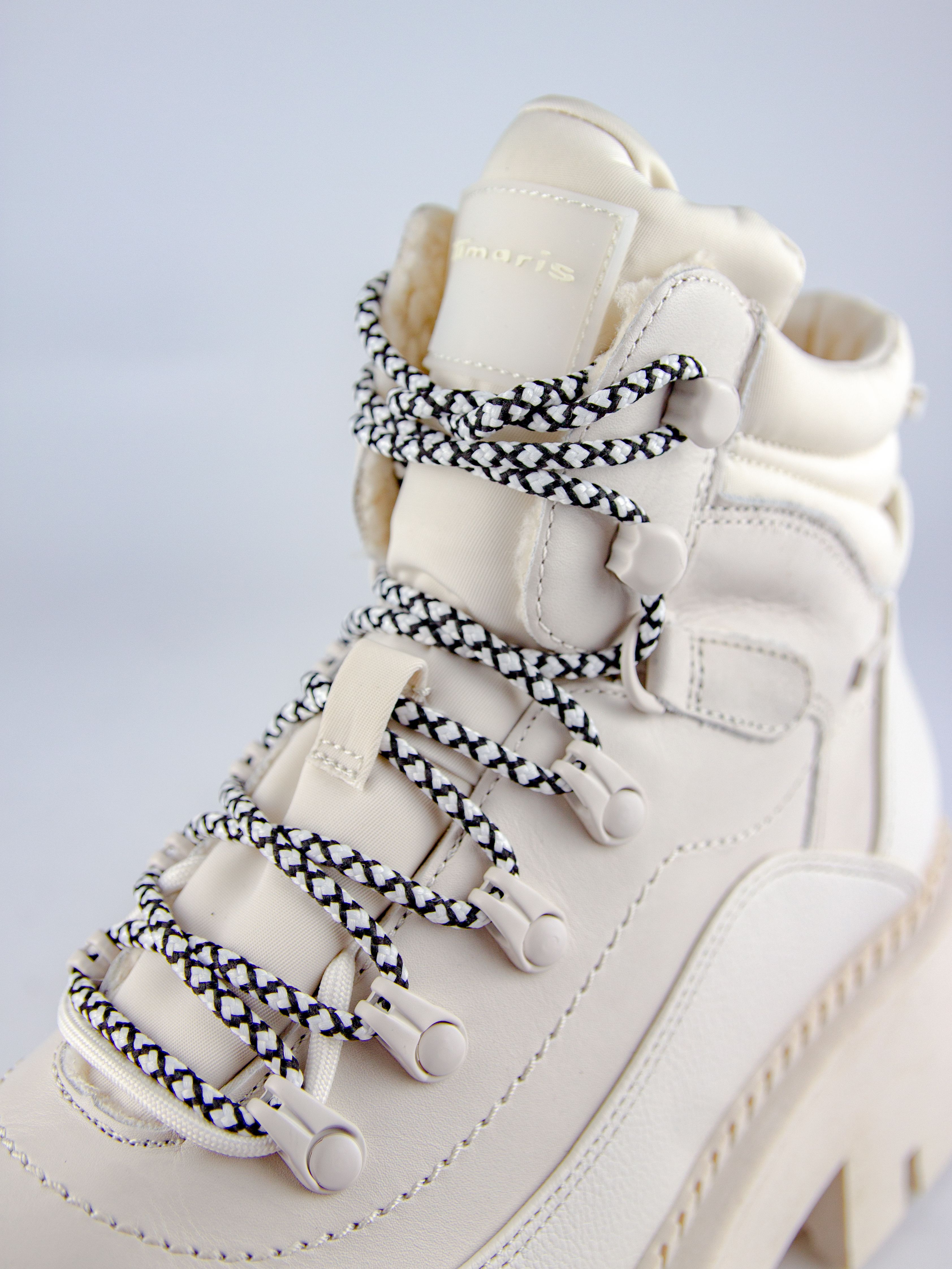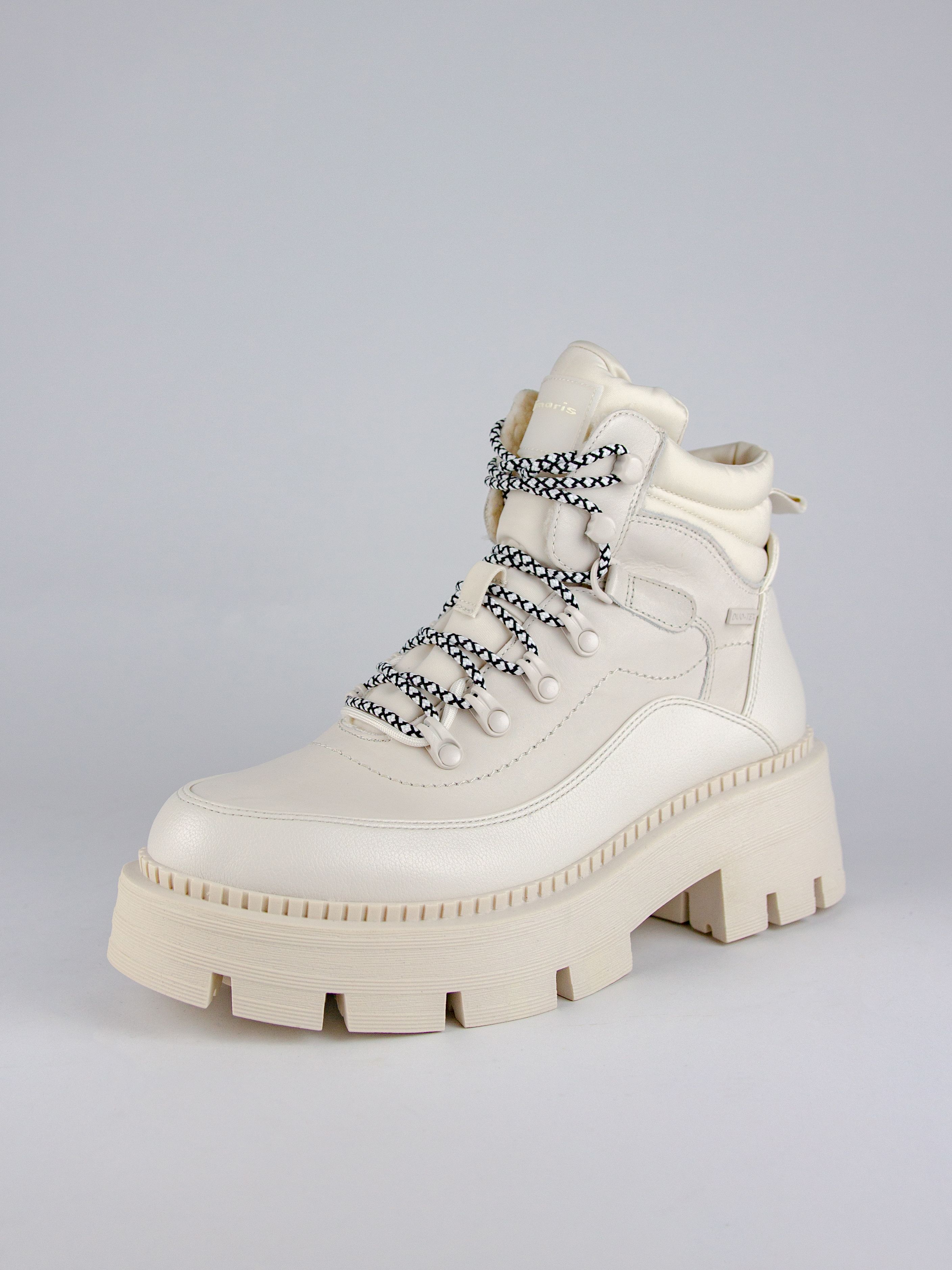 Ботинки женские немецкого бренда Tamaris. Верх изготовлен из натуральной кожи белого цвета. Материал подкладки текстиль. Идеально подойдут на осень-весну и станут отличным завершением к Вашему гардеробу.