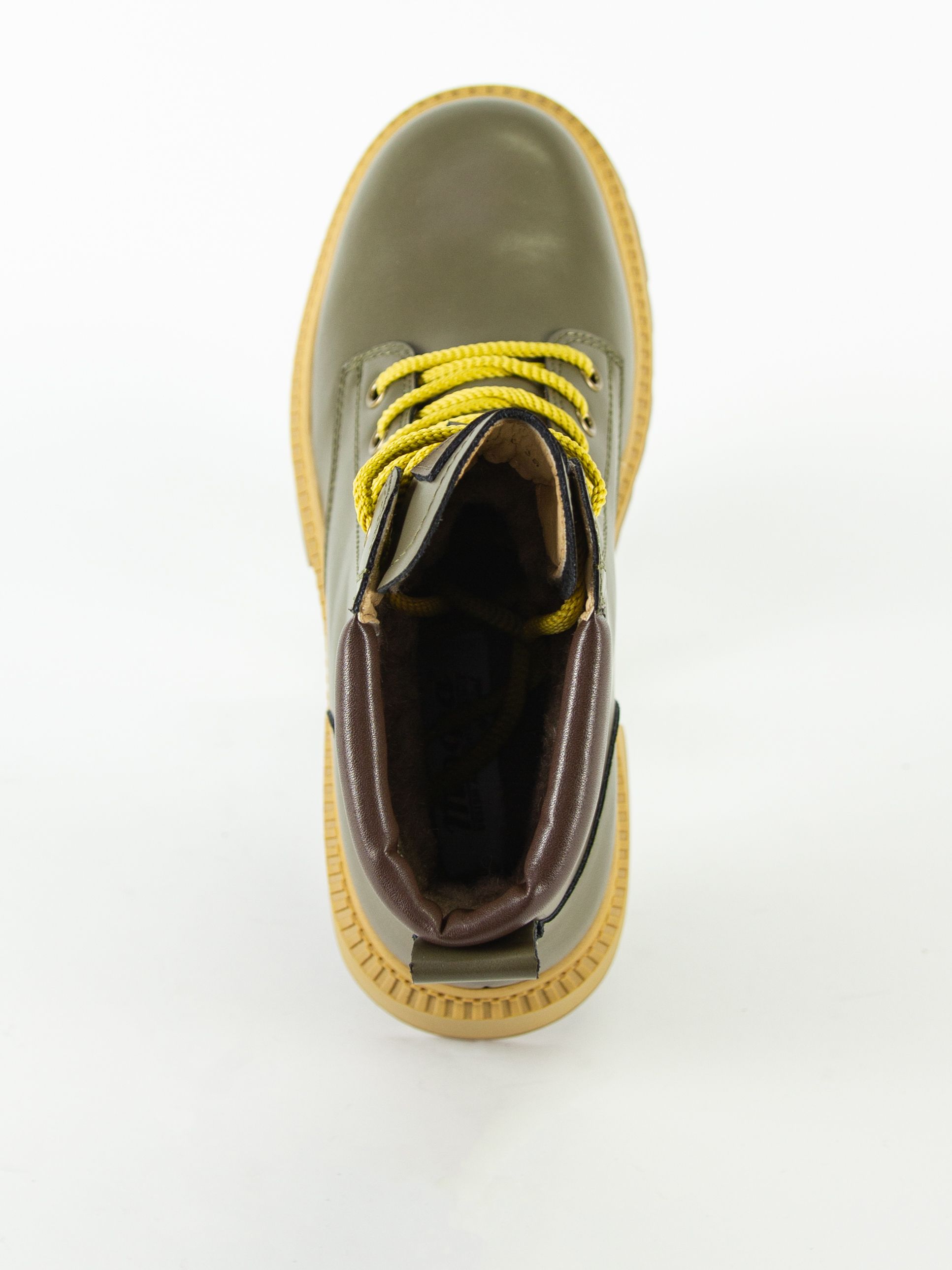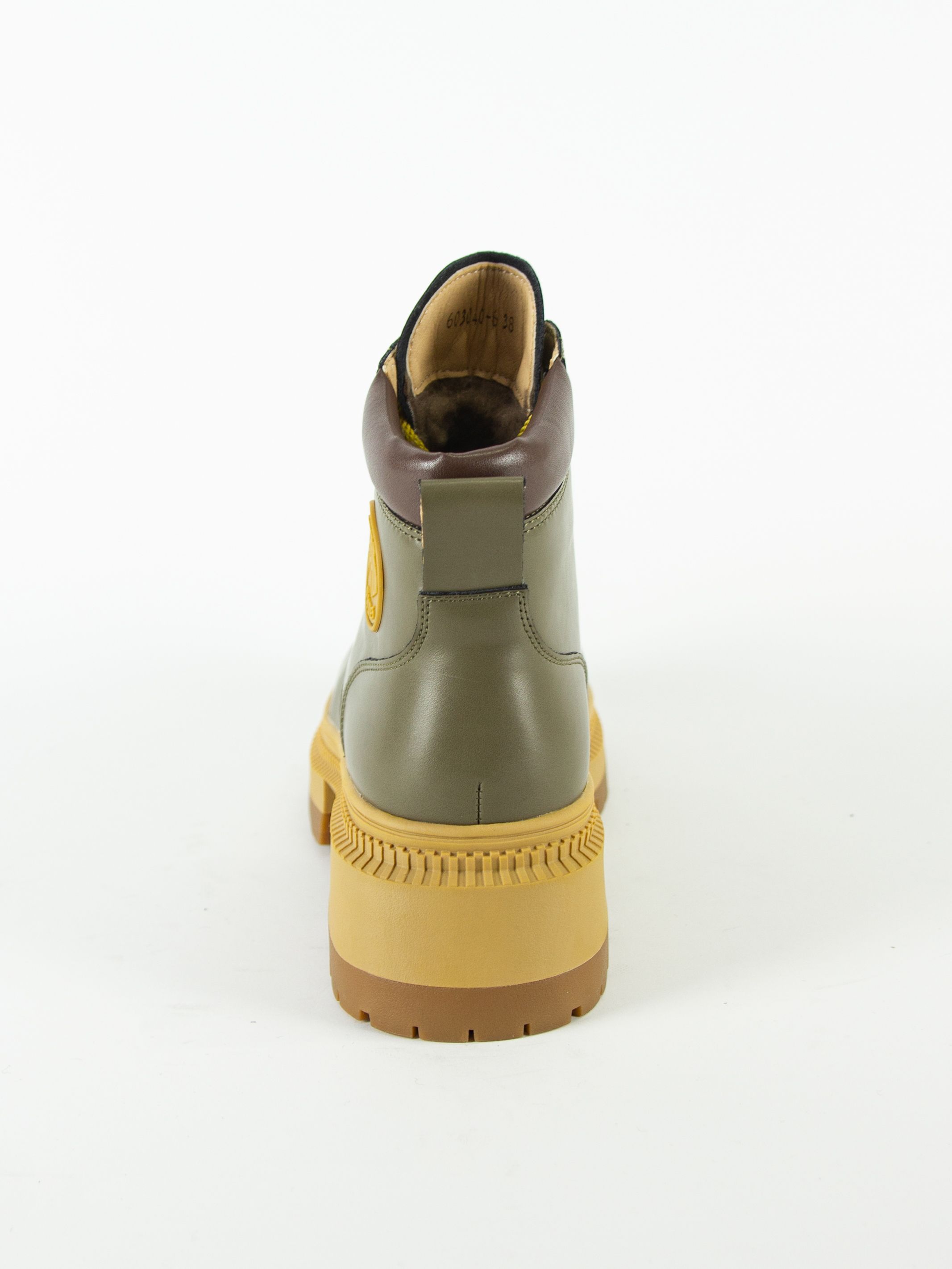 Женские ботинки от ТОФА сочетают в себе стиль, комфорт и качество. Верх ботинок выполнен из натуральной кожи, которая обеспечивает долговечность и прочность обуви. Подкладка из натуральной шерсти делает ботинки теплыми и удобными для ношения в холодное время года. Подошва сделана из термопластичной резины и обладает хорошей амортизацией, что делает ходьбу более комфортной. Классический дизайн ботинок подойдет к любому стилю одежды. Шнуровка позволяет регулировать посадку по ноге. Мягкий отворот на ботинках защищает лодыжки от холода. Зеленые ботинки станут идеальным выбором для осени и зимы.