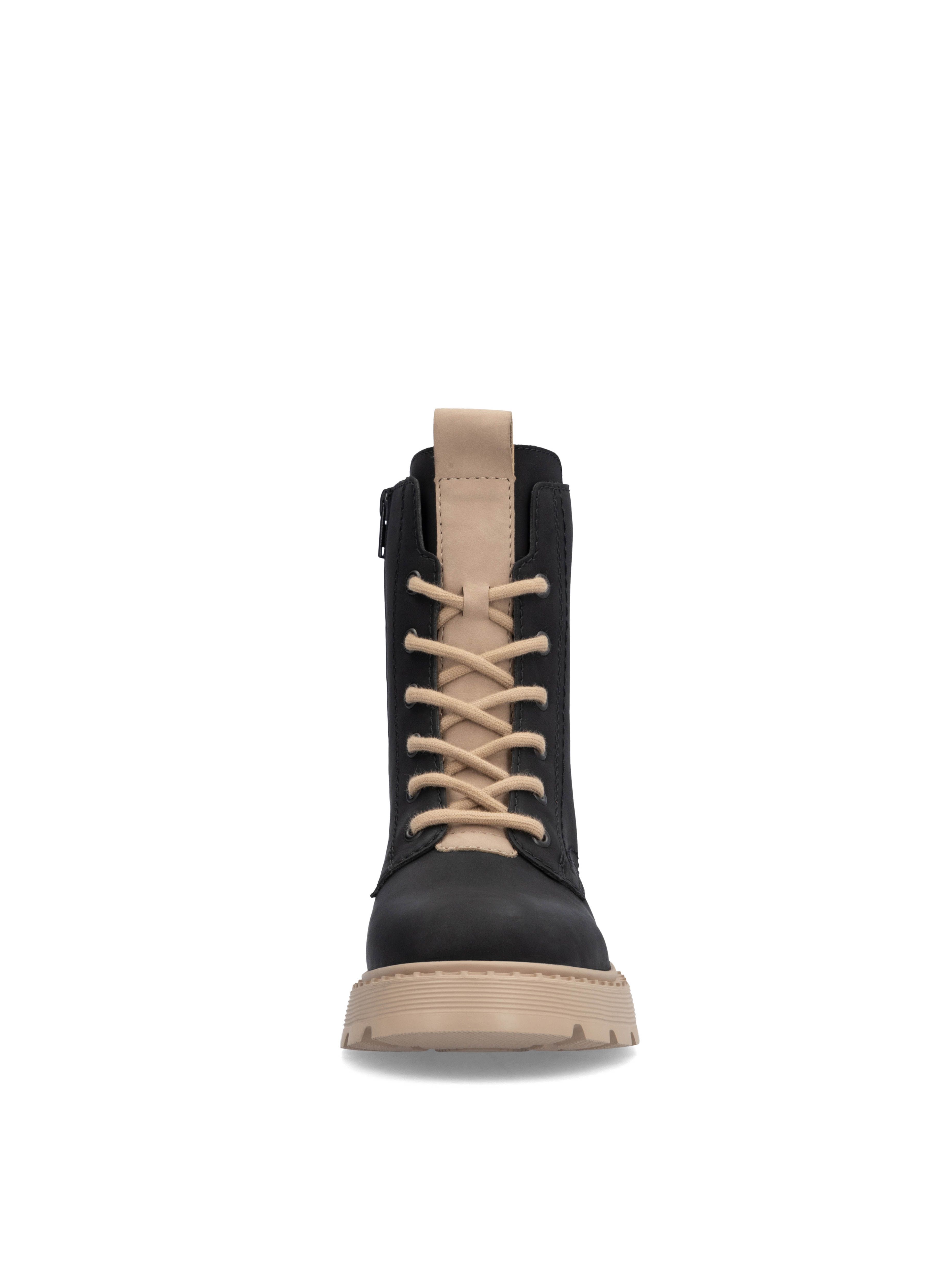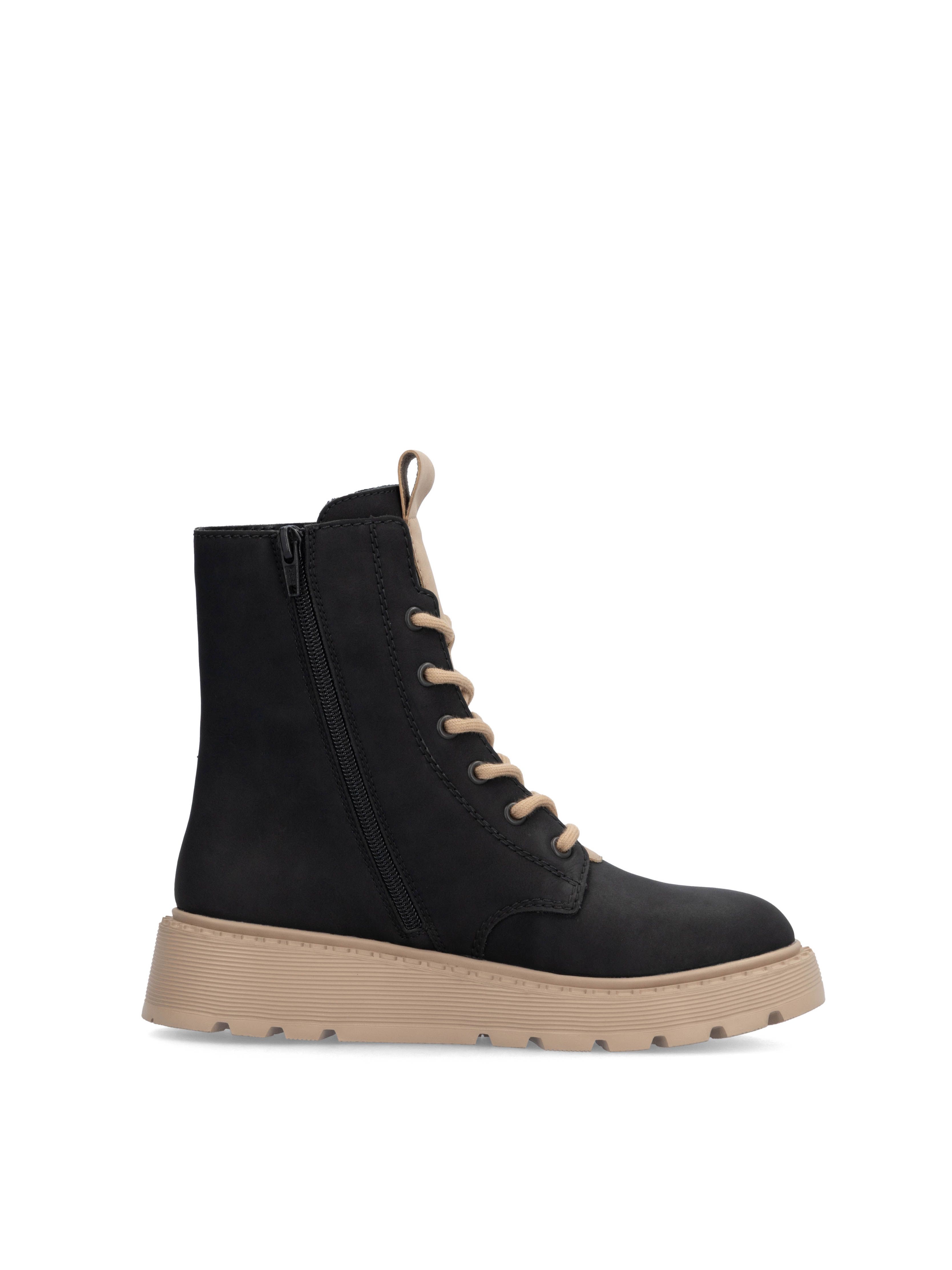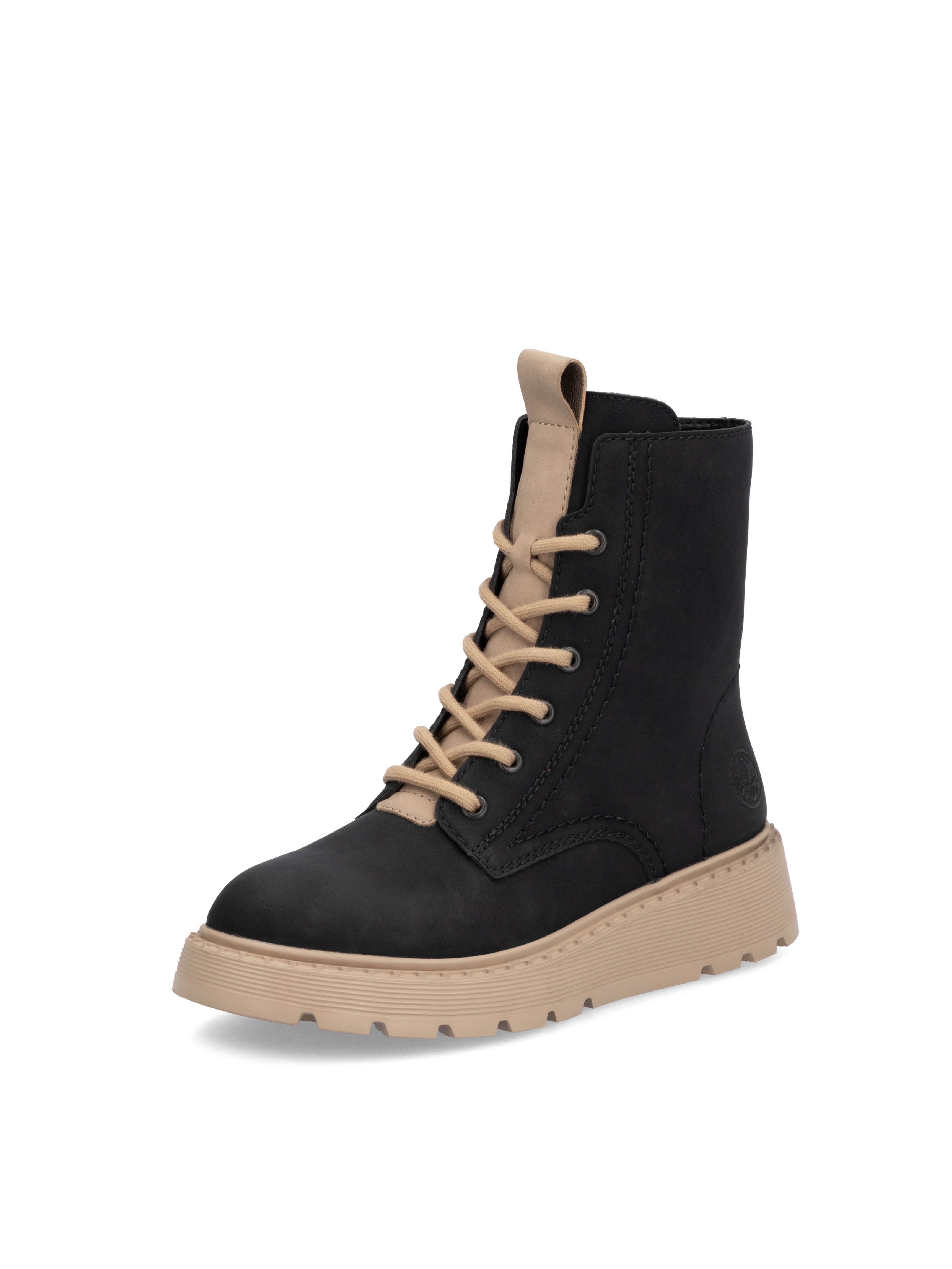 Рекомендуем рассмотреть черные женские ботинки на молнии и шнурках от бренда Rieker, сочетающие в себе качество, комфорт, простой и современный дизайн.