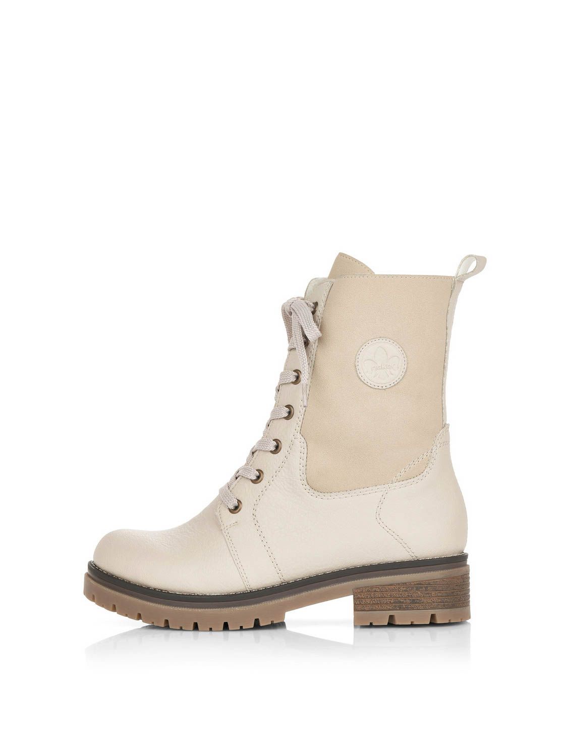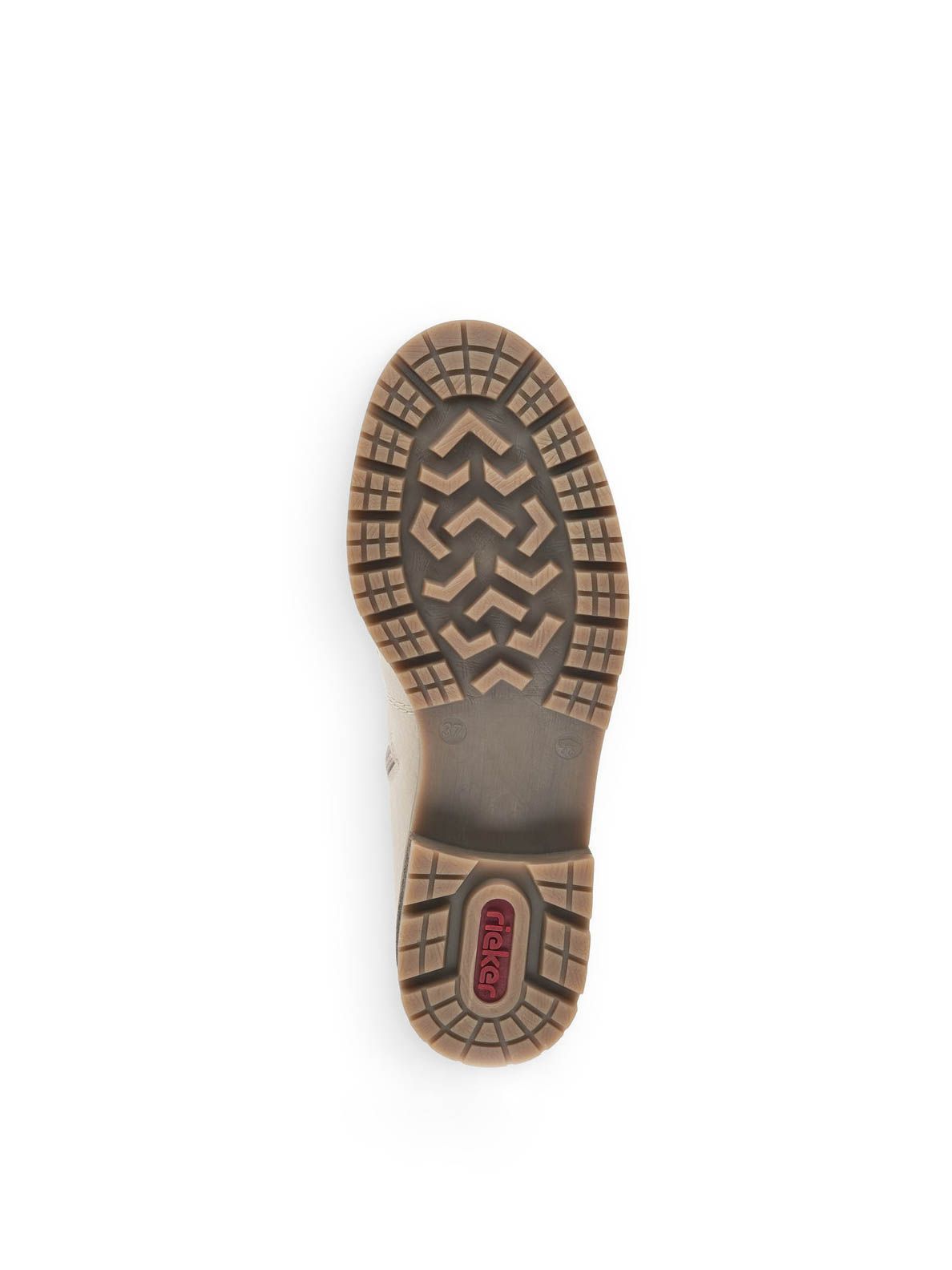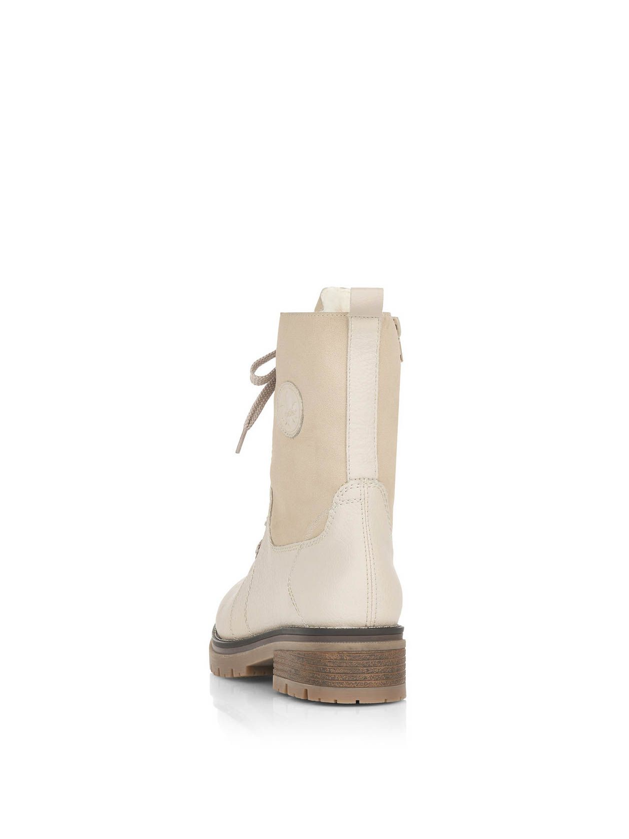 Ботинки женские немецкого бренда Rieker. Верх изготовлен из искусственной кожи и текстильного материала бежевого цвета. Материал подкладки искусственная шерсть. Идеально подойдут на зиму и станут отличным завершением к Вашему гардеробу.