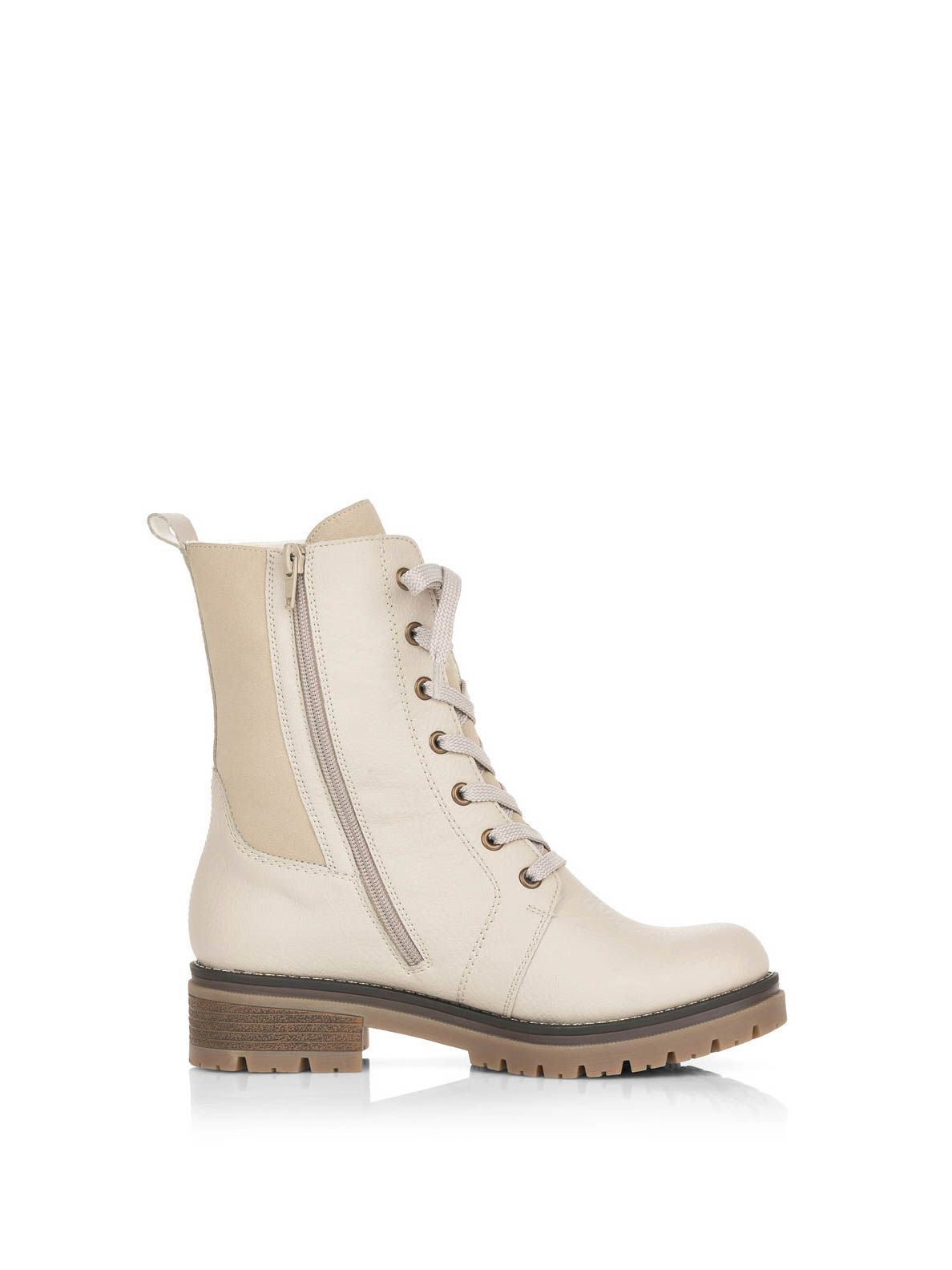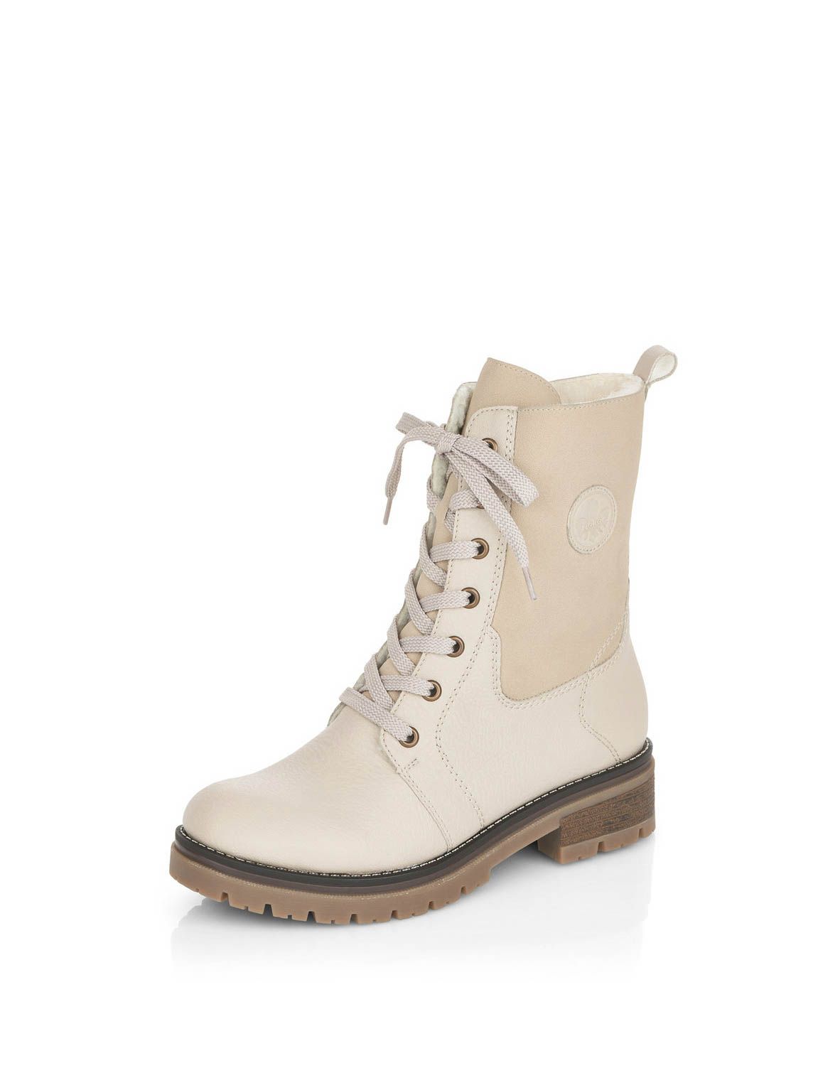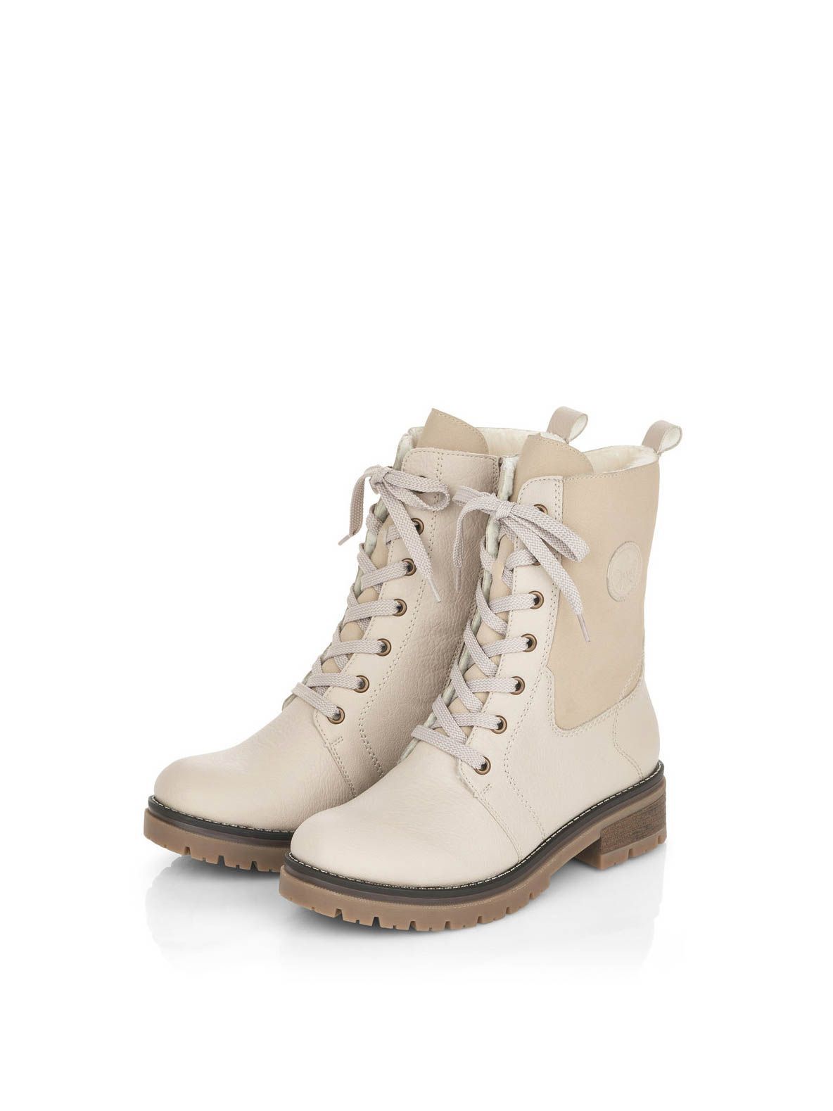 Ботинки женские немецкого бренда Rieker. Верх изготовлен из искусственной кожи и текстильного материала бежевого цвета. Материал подкладки искусственная шерсть. Идеально подойдут на зиму и станут отличным завершением к Вашему гардеробу.