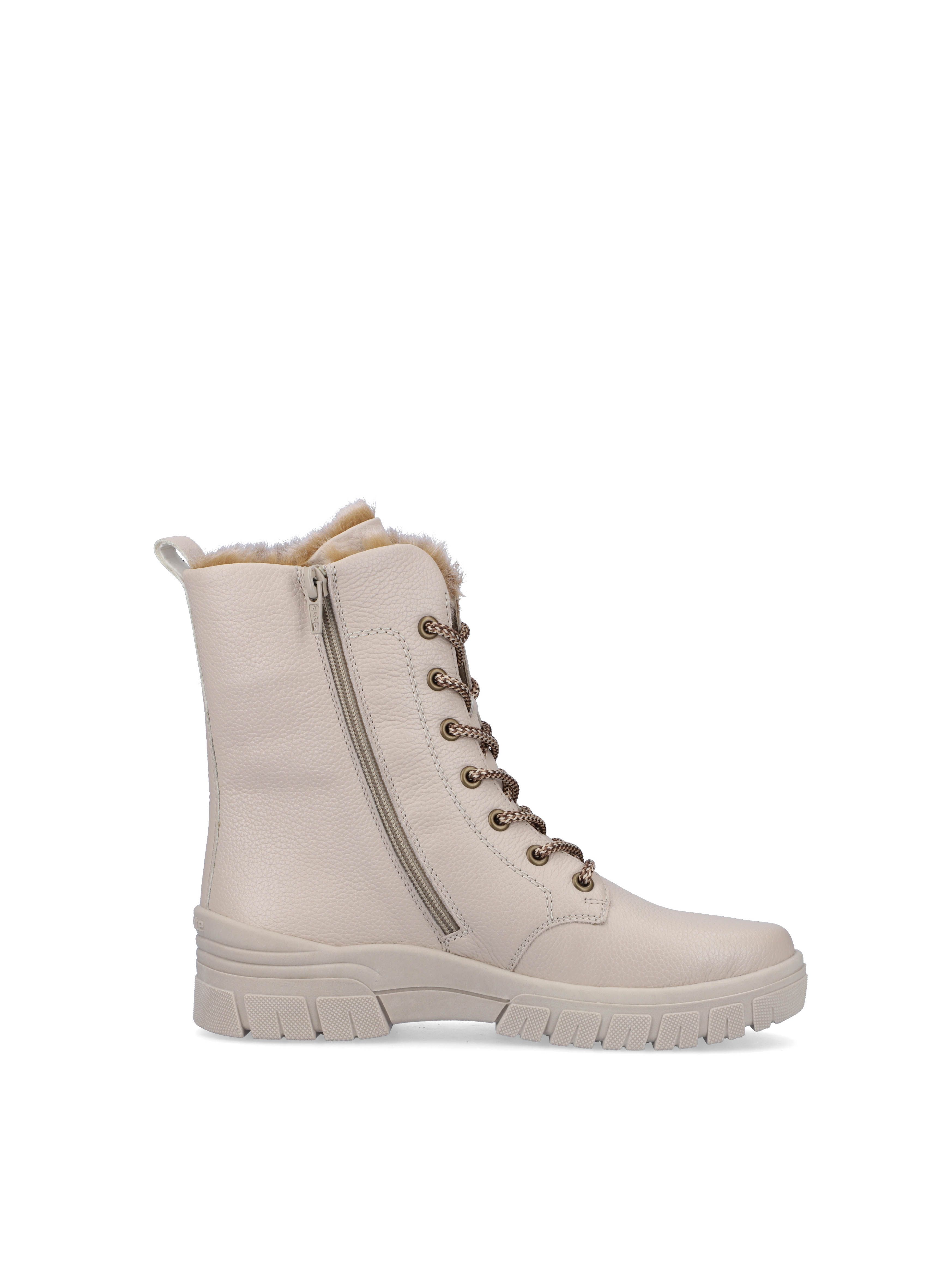 Рекомендуем рассмотреть бежевые женские ботинки на молнии и шнурках от немецкого бренда Remonte, сочетающие в себе качество, комфорт, простой и современный дизайн