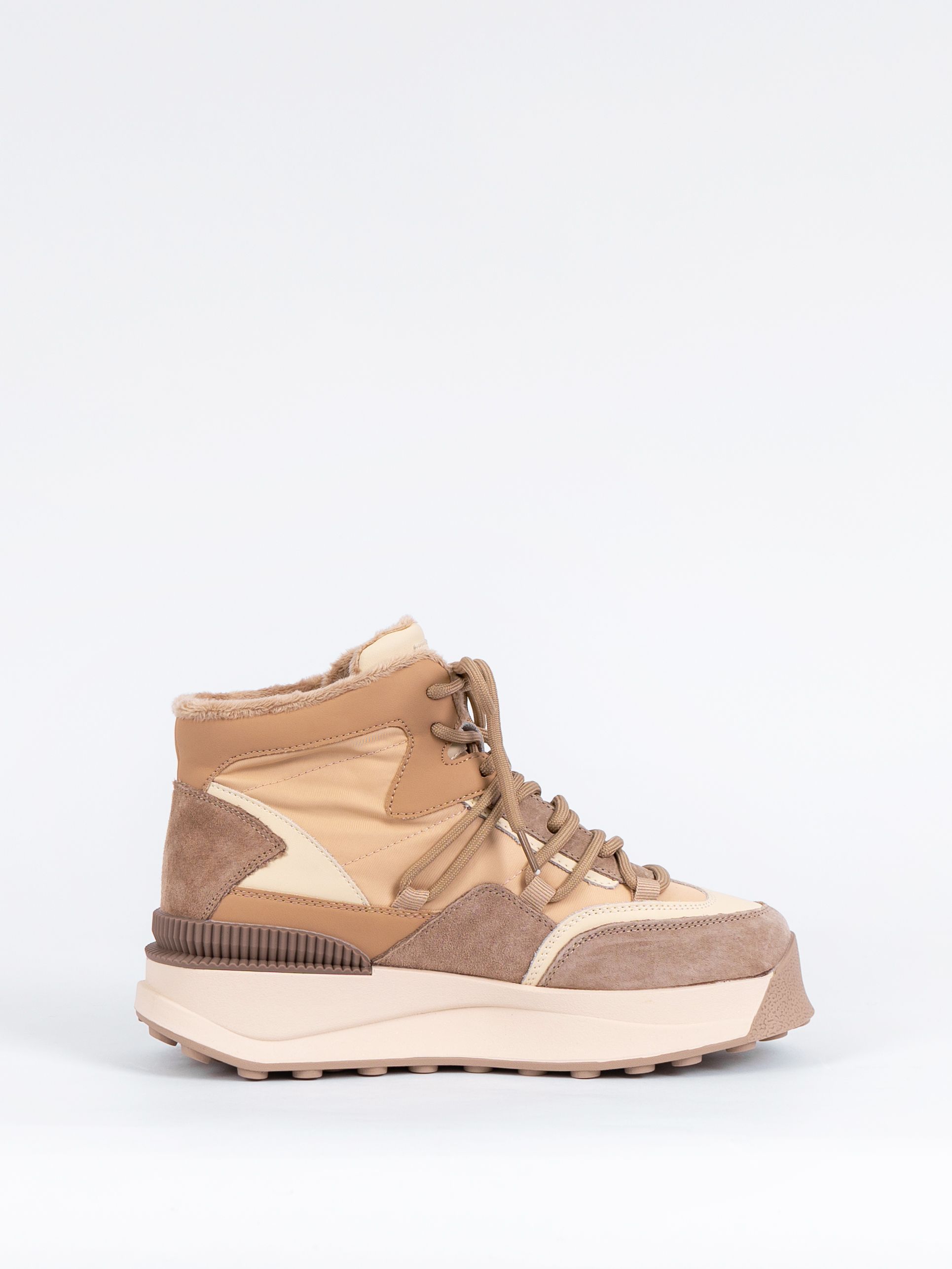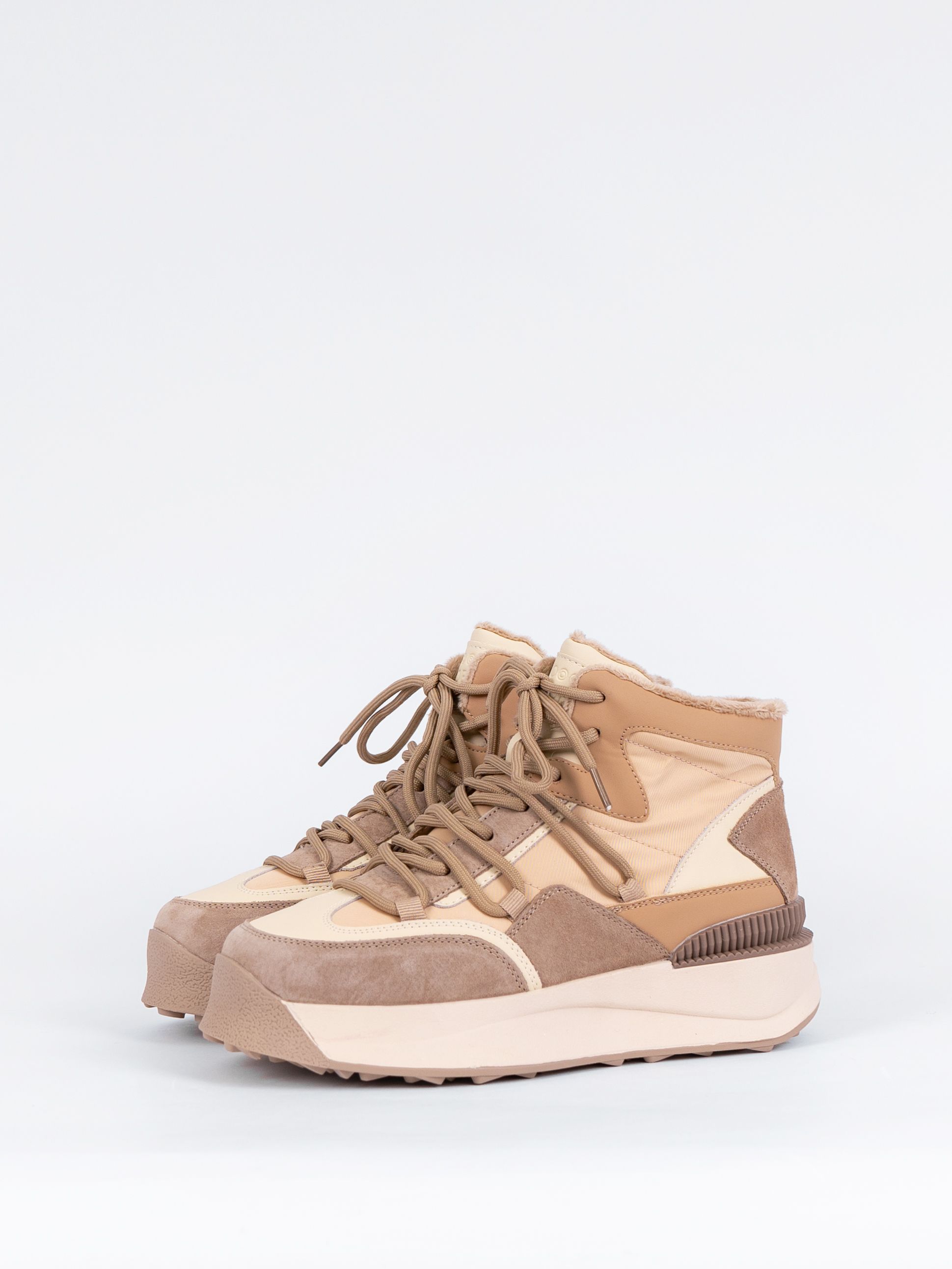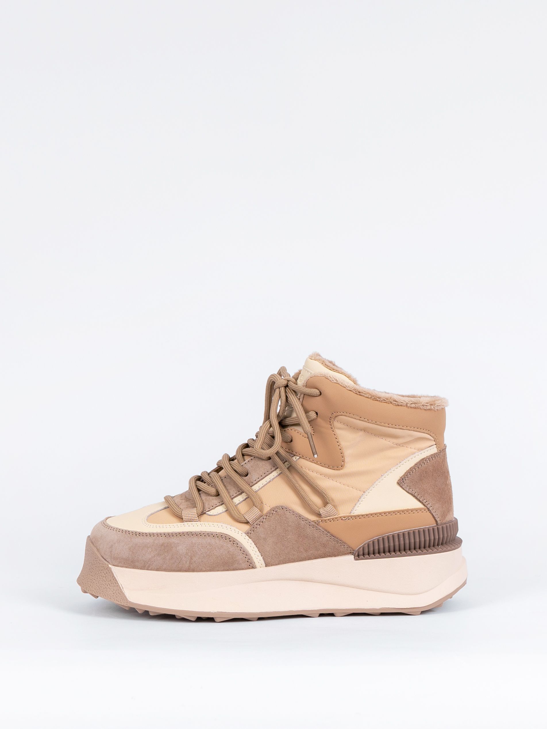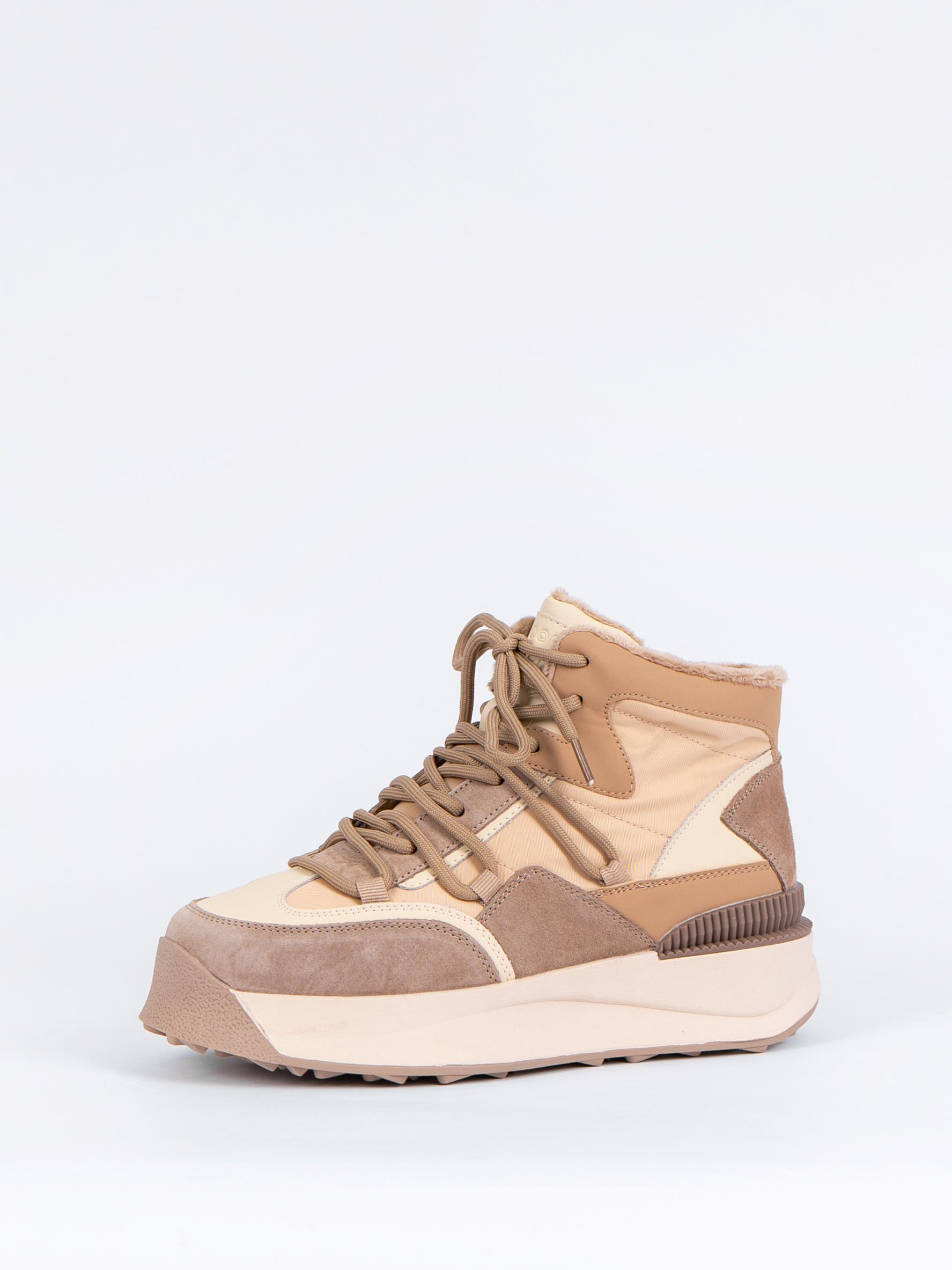 Базовый бежевый цвет ботинок с коричневыми вставками сочетаются с разной палитрой одежды и сделают Ваш образ более ярким и привлекательным.