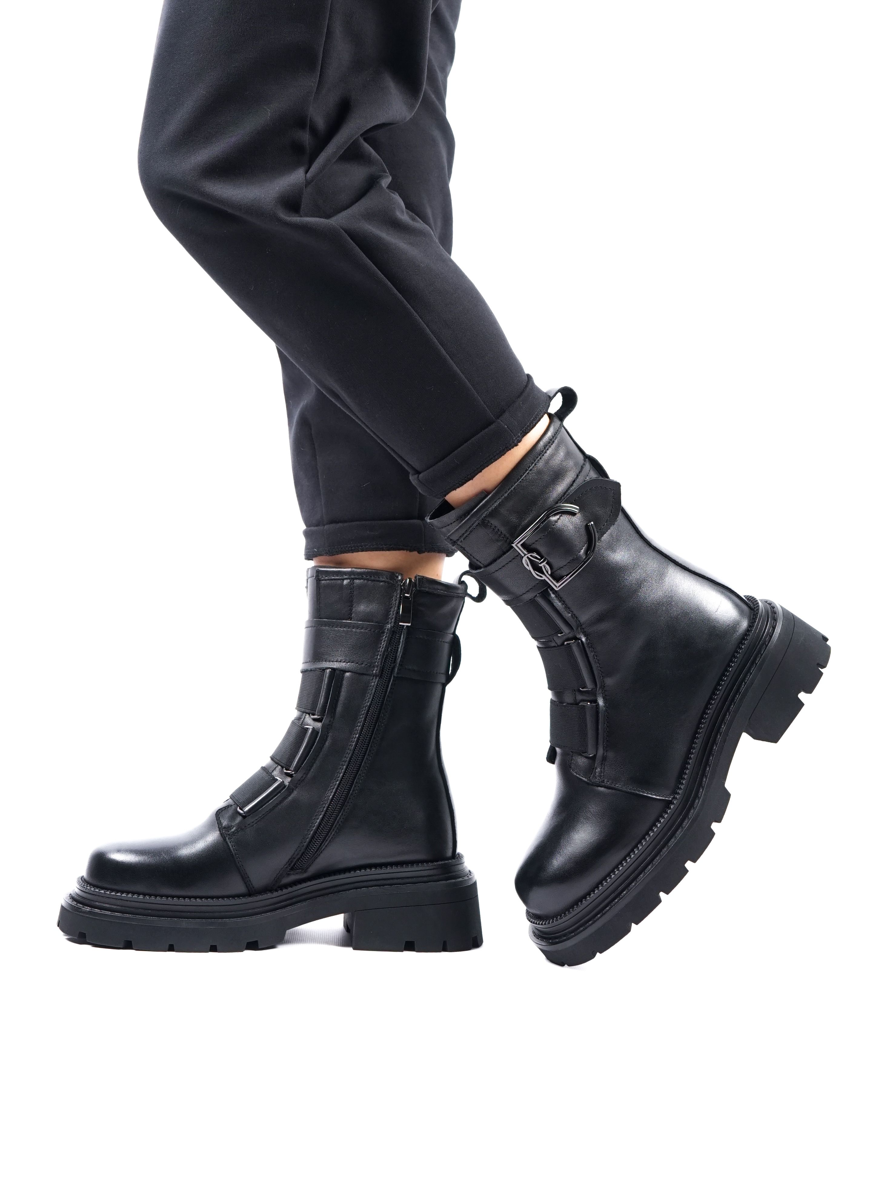 Женские ботинки из натуральной кожи, утепленные натуральным мехом, станут отличным выбором для холодной погоды. Модель имеет удобную колодку и широкий устойчивый каблук, которые обеспечивают комфорт и стабильность при ходьбе. Черные ботинки прекрасно сочетаются с любым нарядом и подходят для повседневной носки или для особых случаев.