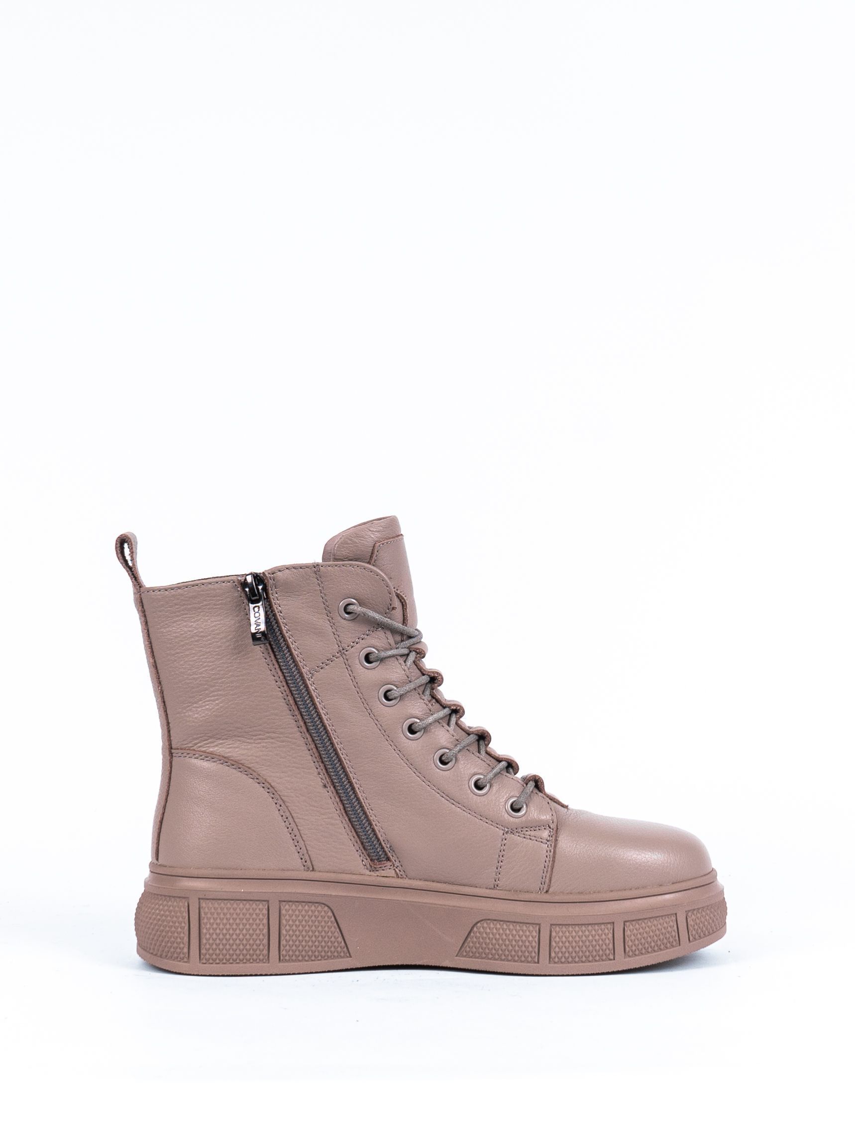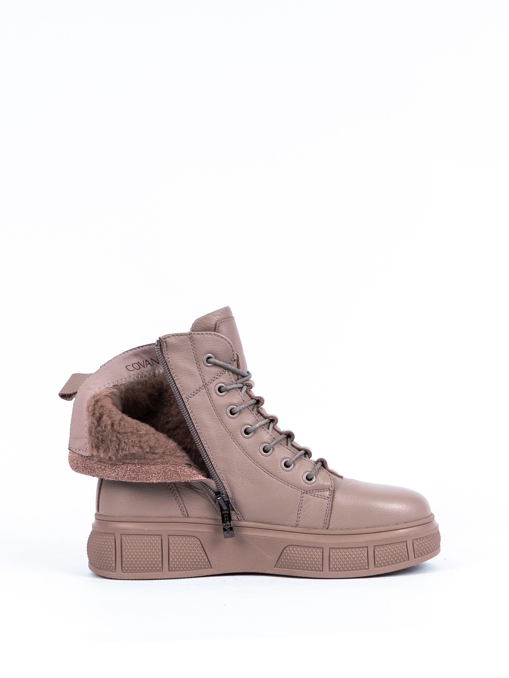 Рекомендуем рассмотреть бежевые женские ботинки на молнии и шнурках от российского бренда Covani, сочетающие в себе качество, комфорт, простой и современный дизайн.