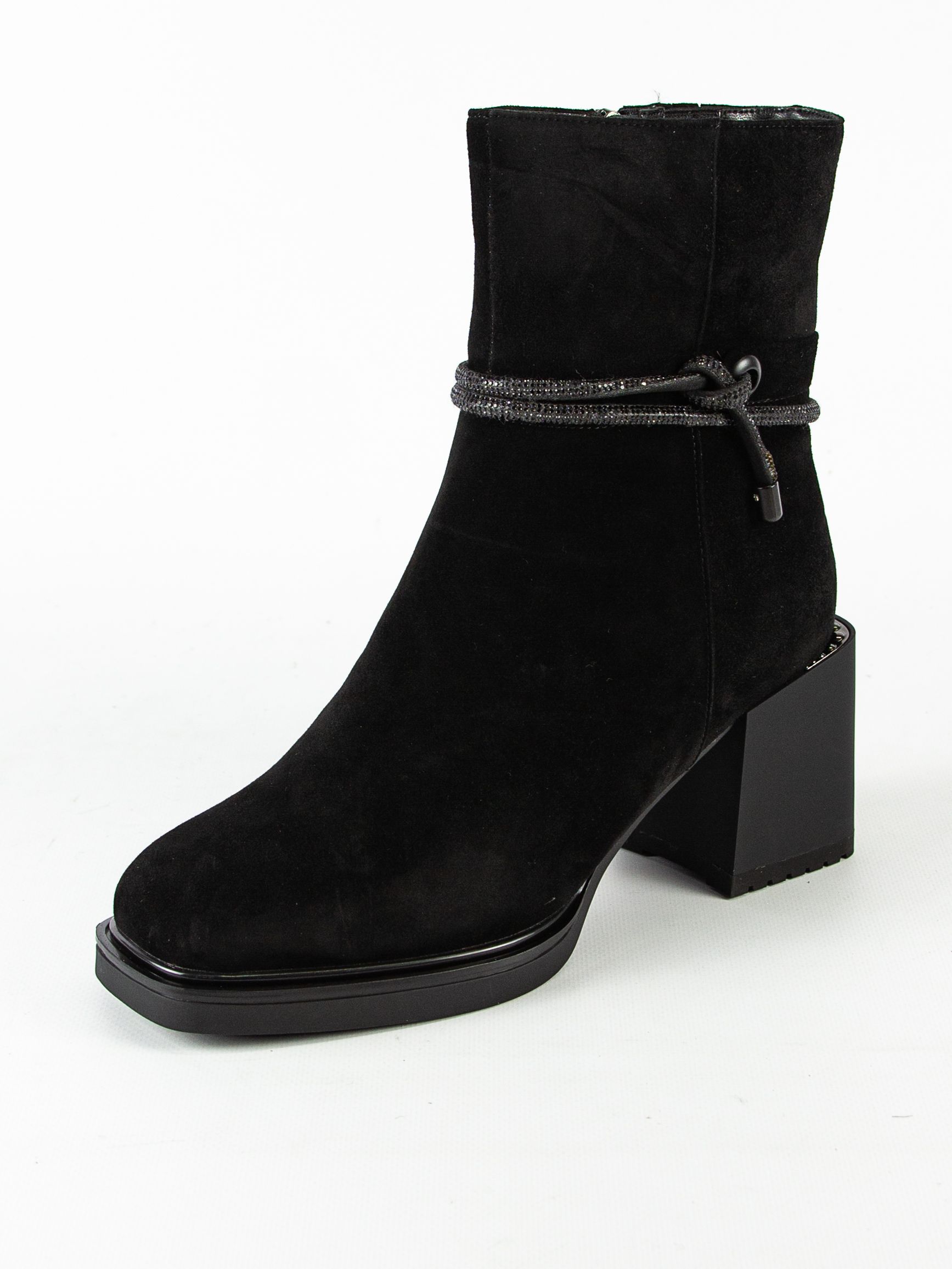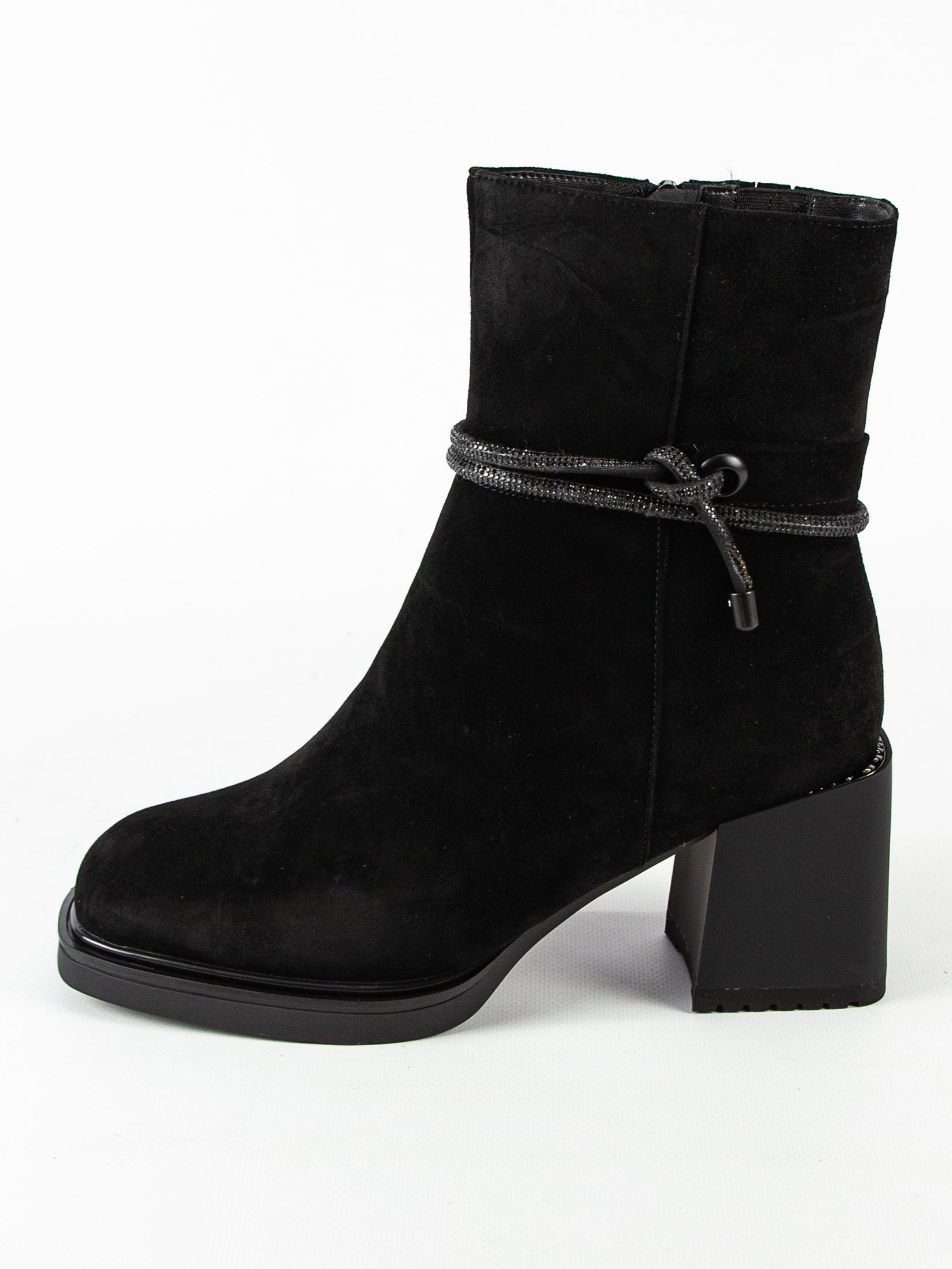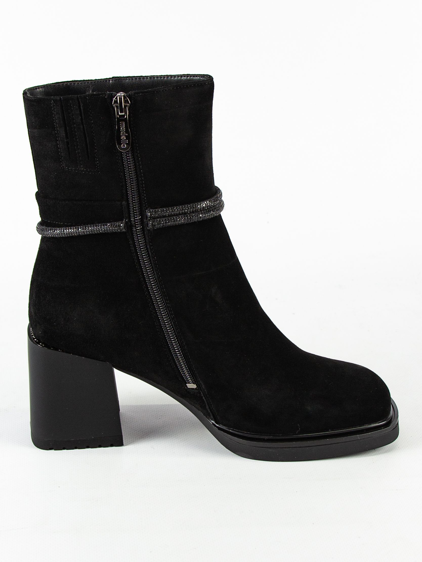 Ботильоны женские бренда MADELLA. Верх изготовлен из натурального велюра черного цвета. Материал подкладки натуральная шерсть. Идеально подойдут на зиму и станут отличным завершением к Вашему гардеробу.