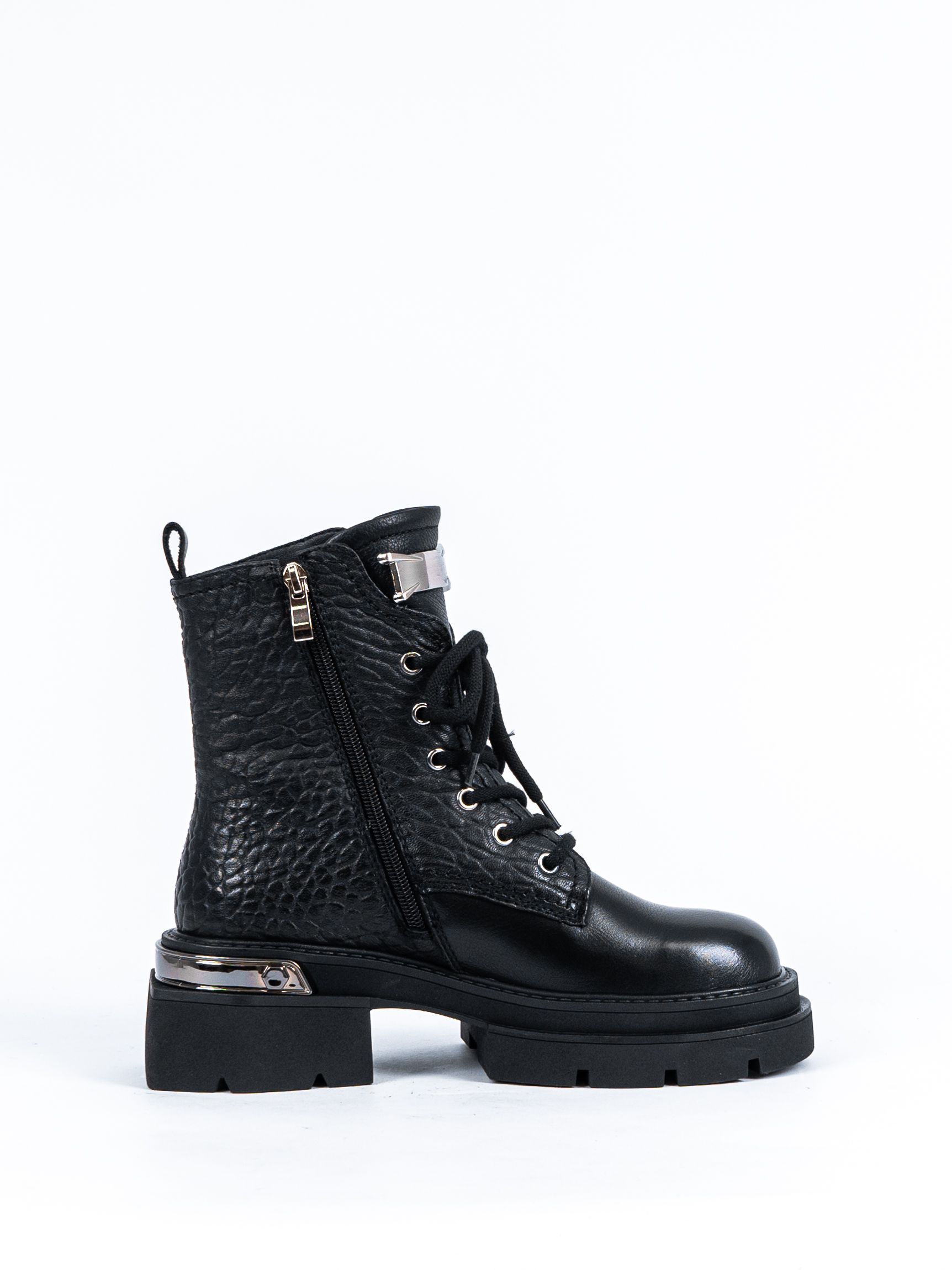Рекомендуем рассмотреть черные женские зимние ботинки на молнии и шнурках от бренда 365, сочетающие в себе качество, комфорт, простой и современный дизайн.