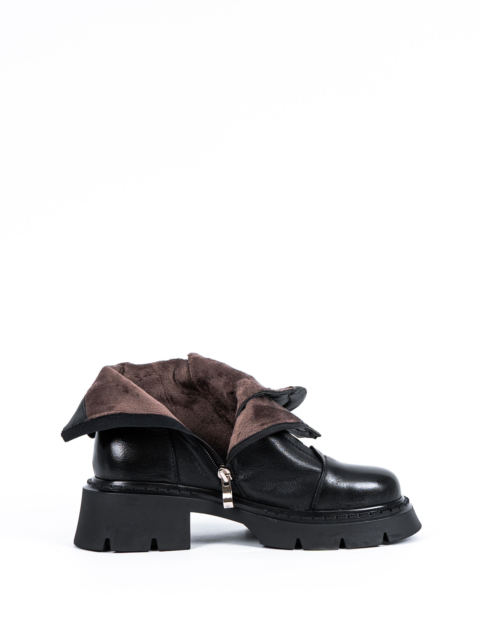 Подошва выполнена из технологичных полимерных материалов, что позволяет хорошо амортизировать удары при ходьбе и сохранять тепло. Ботинки на каблуке высотой 5 см не позволят стопе уставать в течении всего дня.