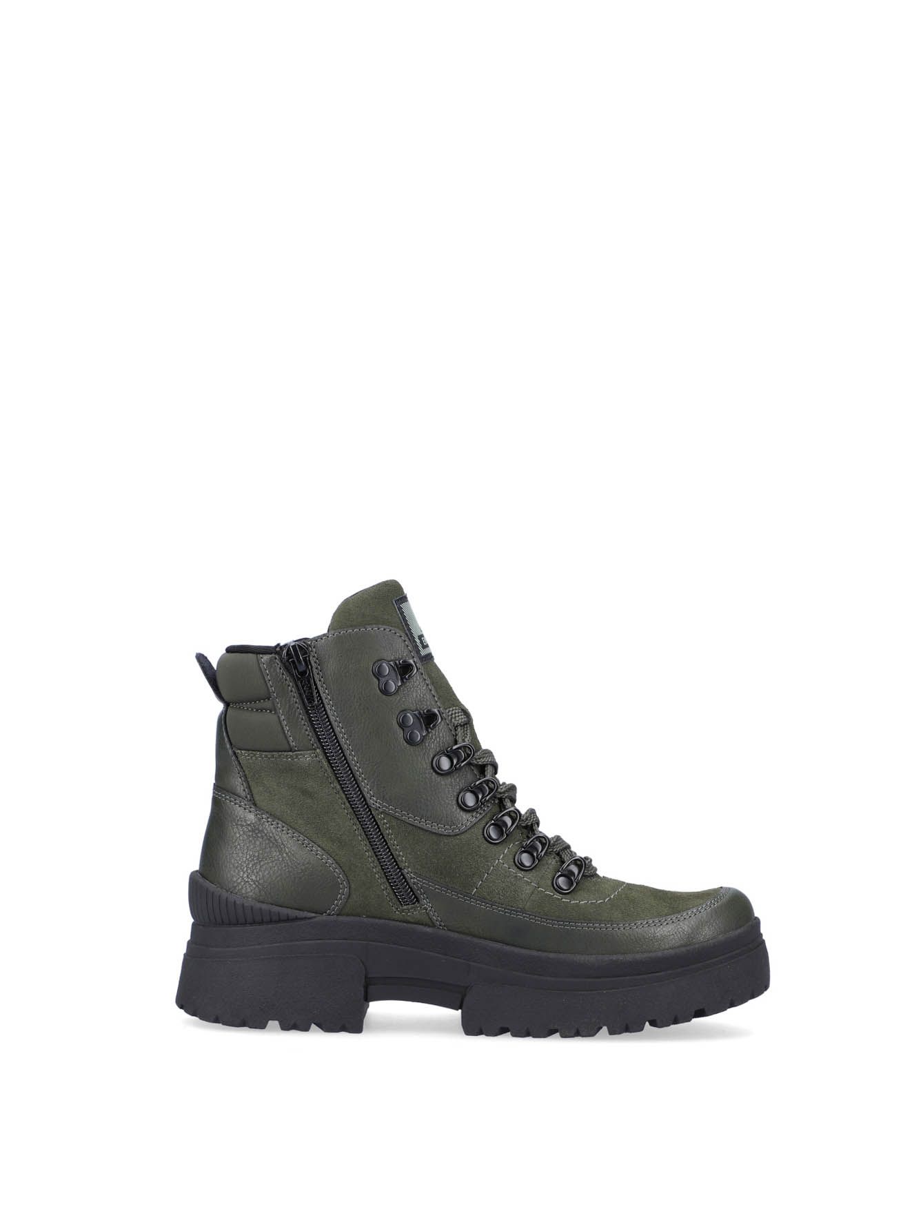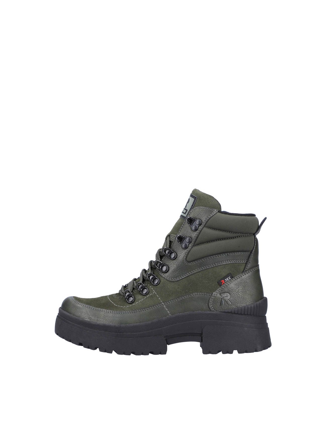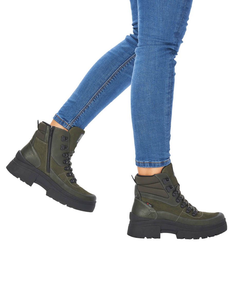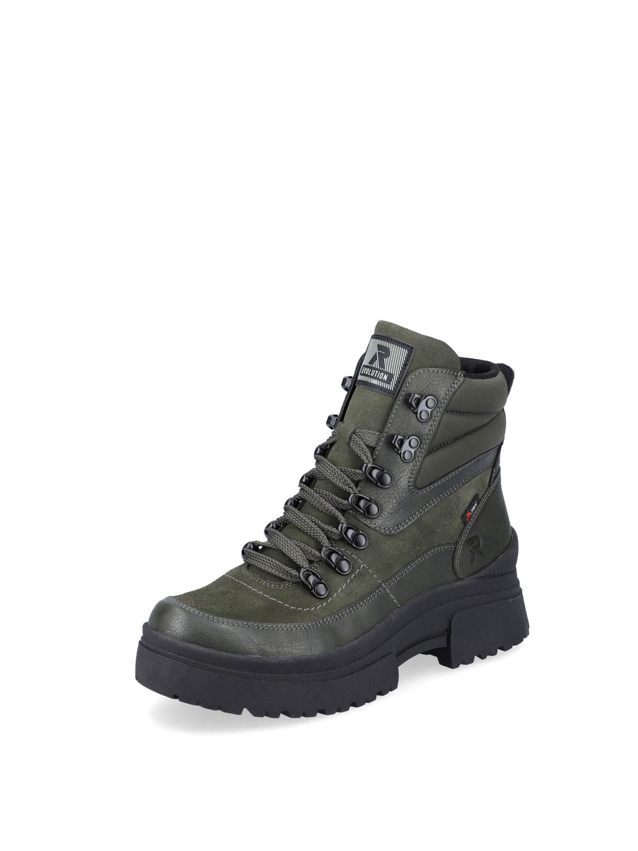 Ботинки женские немецкого бренда Rieker R-Evolution. Верх изготовлен из искусственной и натуральной кожи зеленого цвета. Материал подкладки натуральная шерсть с мембраной TEX. Идеально подойдут на зиму и станут отличным завершением к Вашему гардеробу.
