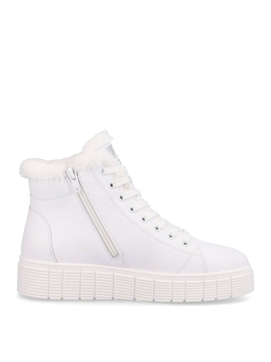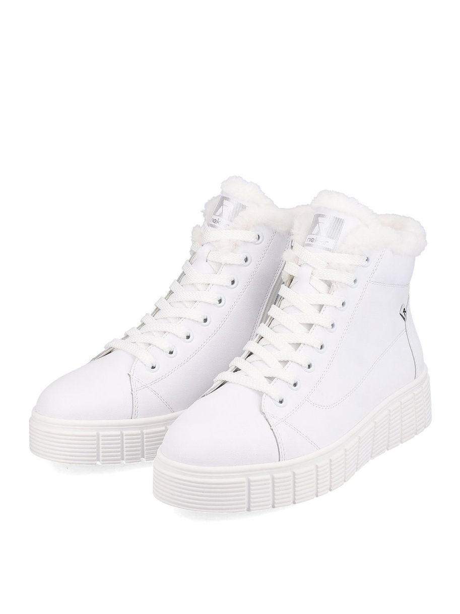 Ботинки женские немецкого бренда Rieker R-Evolution. Верх изготовлен из натуральной и искусственной кожи белого цвета. Материал подкладки натуральная шерсть. Идеально подойдут на зиму и станут отличным завершением к Вашему гардеробу.