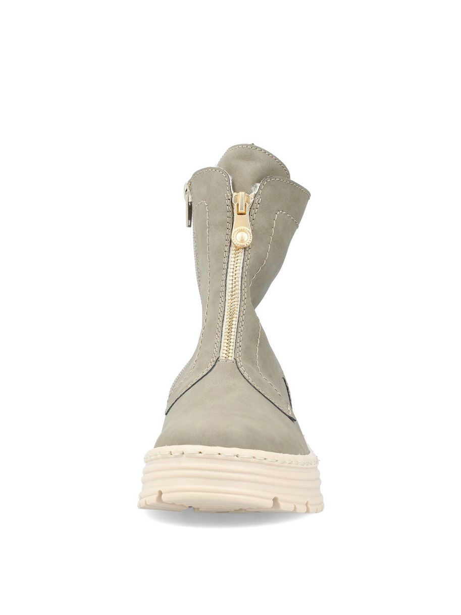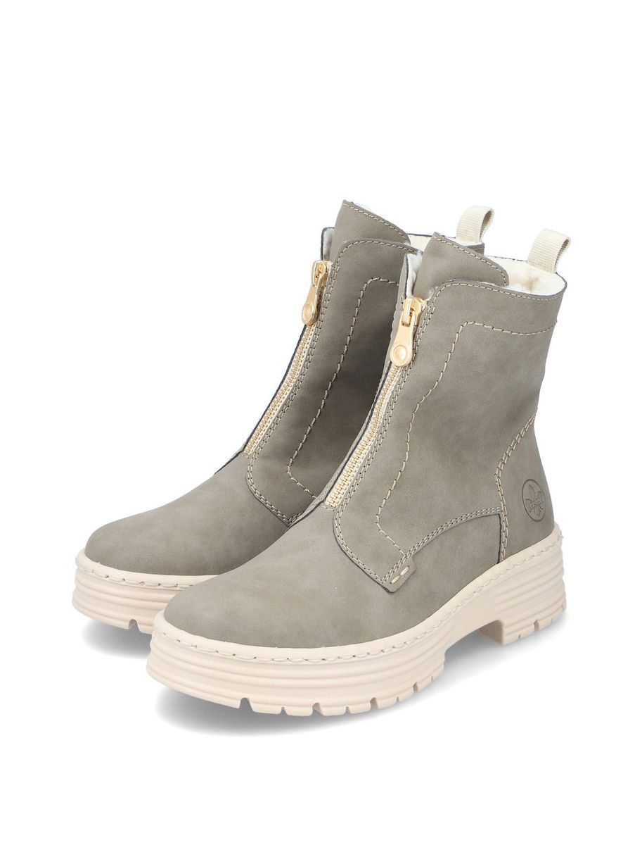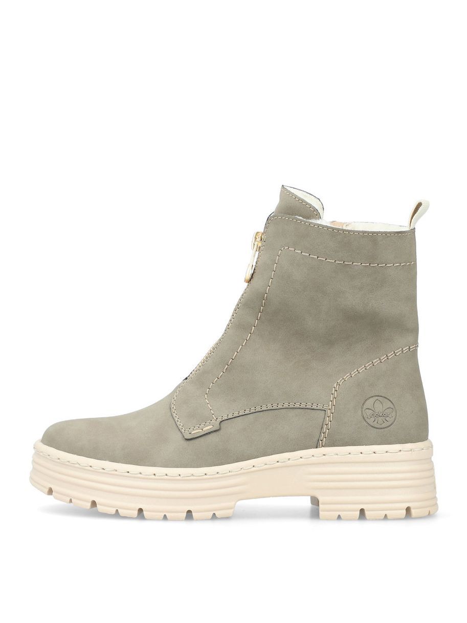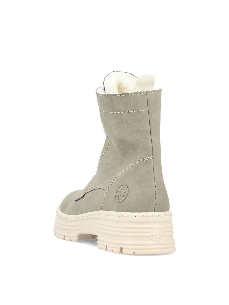 Ботинки женские немецкого бренда Rieker. Верх изготовлен из искусственной кожи цвета хаки. Материал подкладки искусственная шерсть. Идеально подойдут на зиму и станут отличным завершением к Вашему гардеробу.