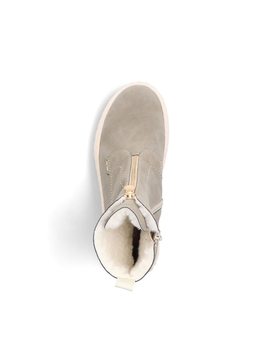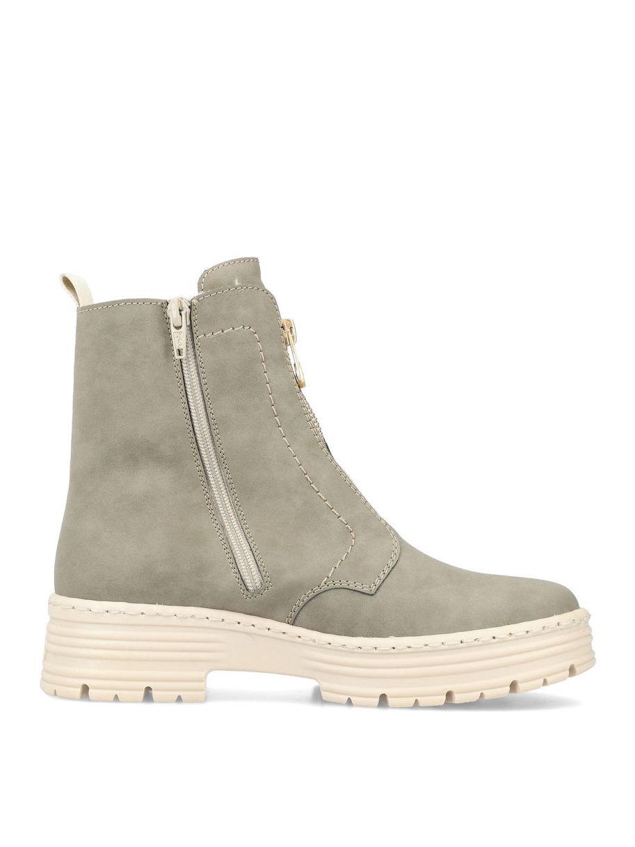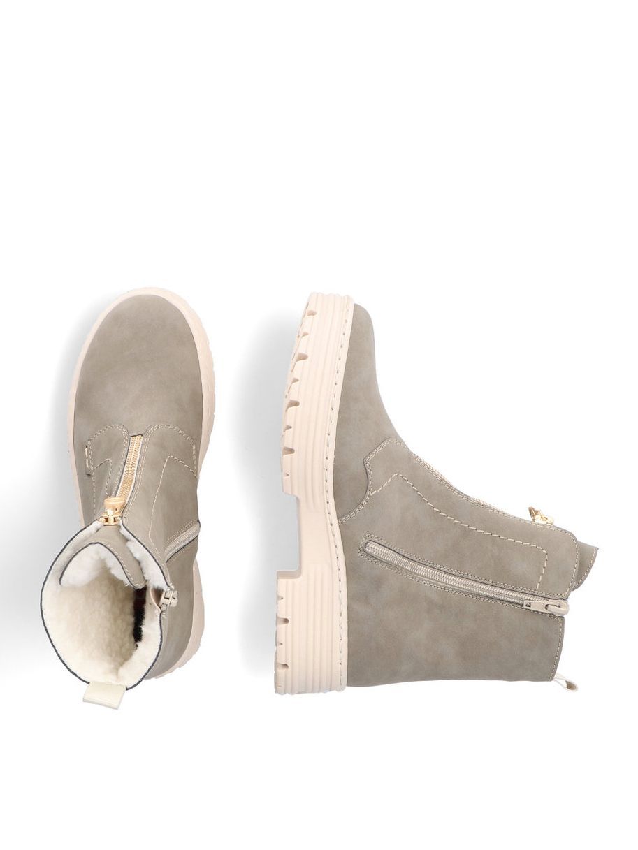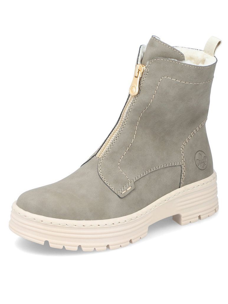 Ботинки женские немецкого бренда Rieker. Верх изготовлен из искусственной кожи цвета хаки. Материал подкладки искусственная шерсть. Идеально подойдут на зиму и станут отличным завершением к Вашему гардеробу.