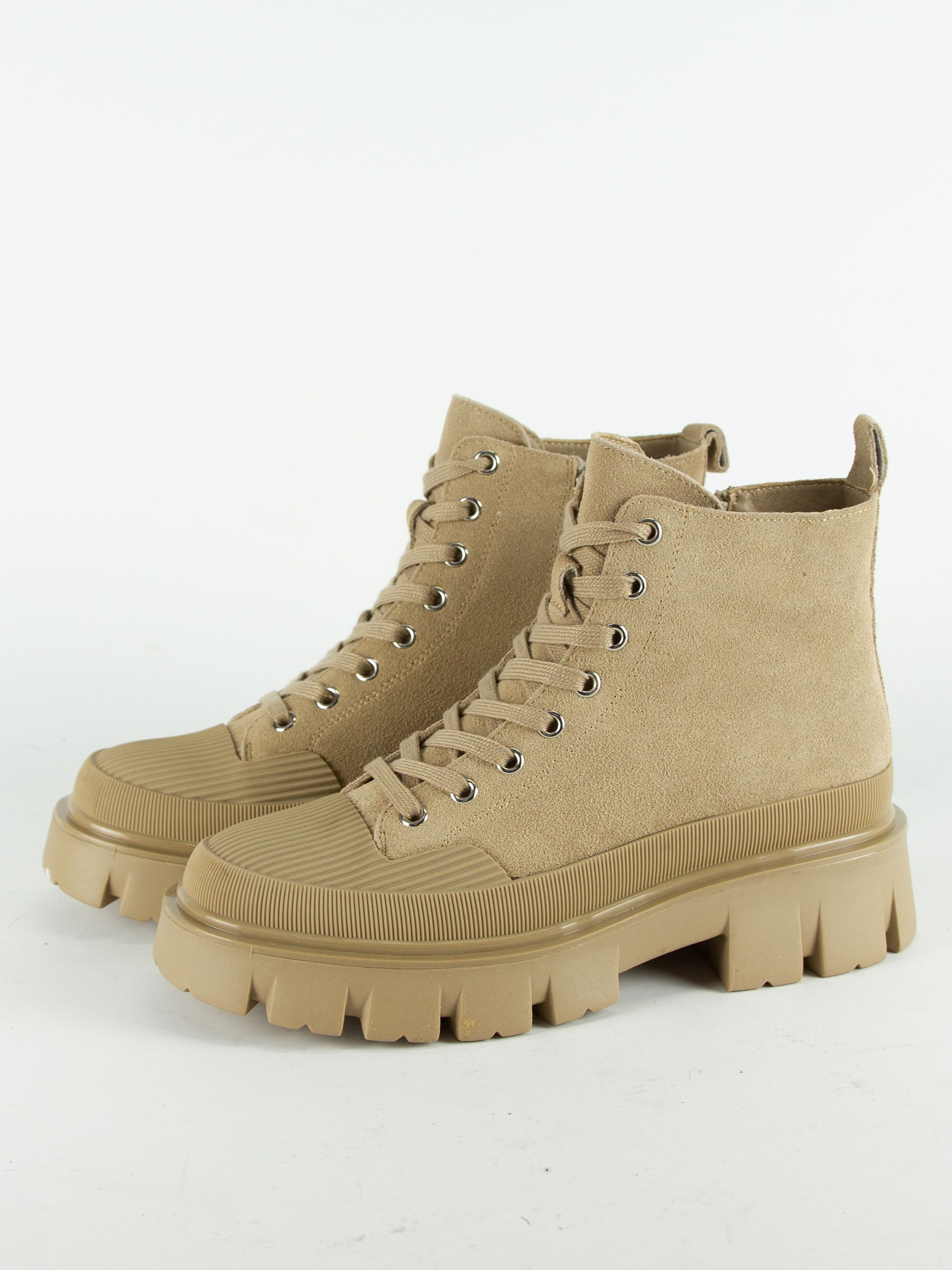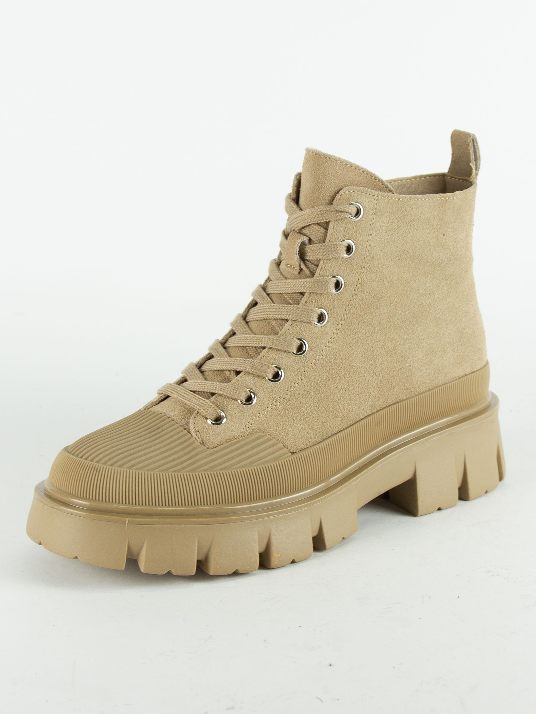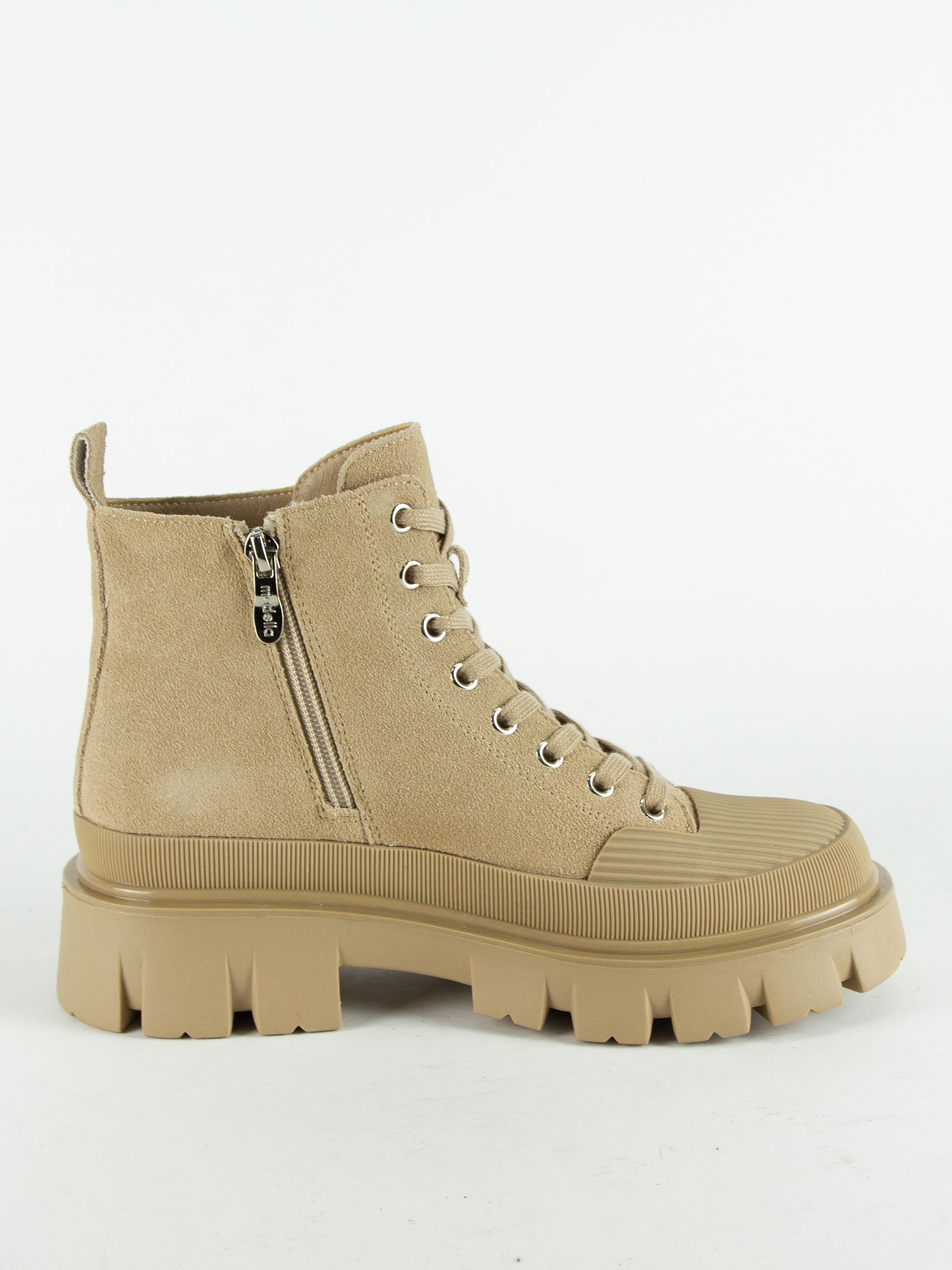 Ботинки женские бренда MADELLA. Верх изготовлен из натуральной замши темно-бежевого цвета. Материал подкладки натуральная шерсть. Идеально подойдут на зиму и станут отличным завершением к Вашему гардеробу.