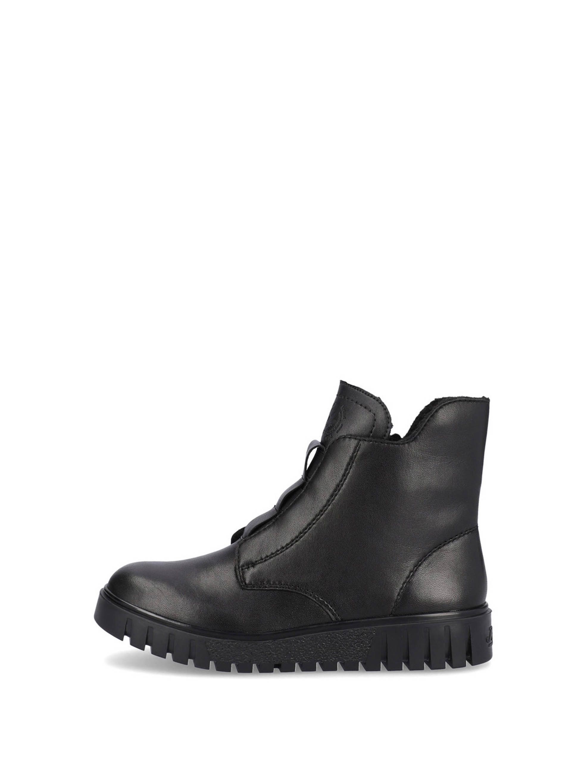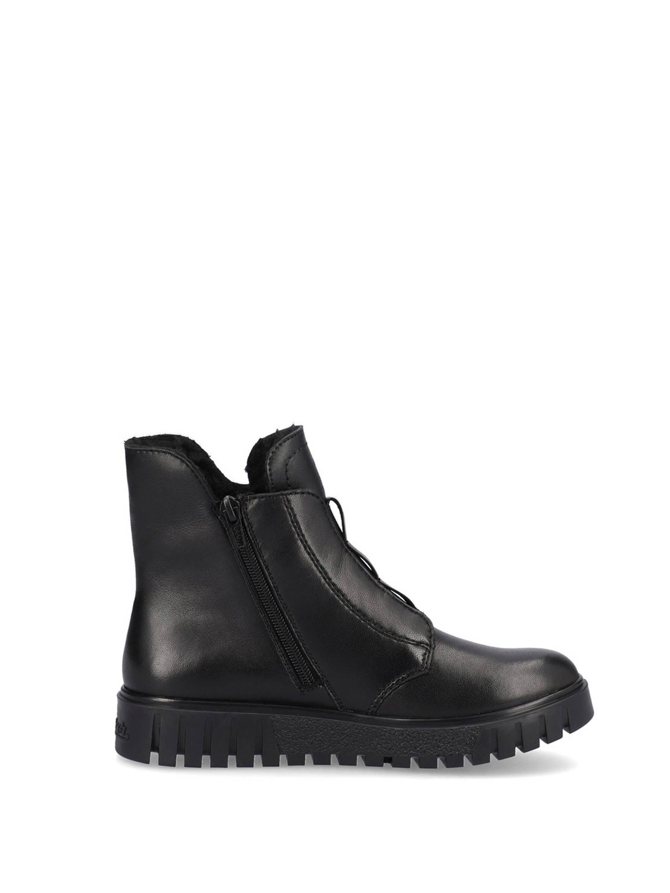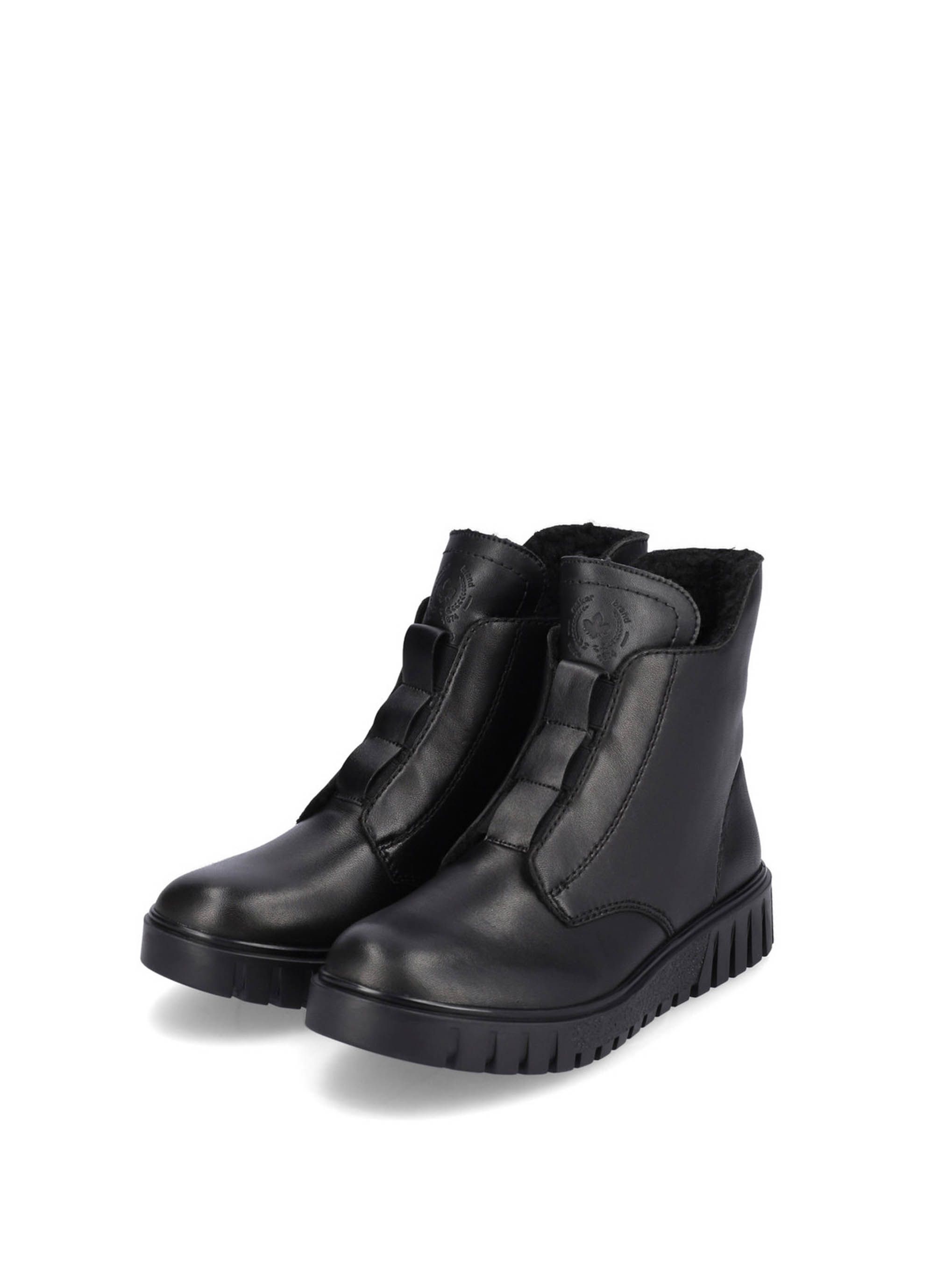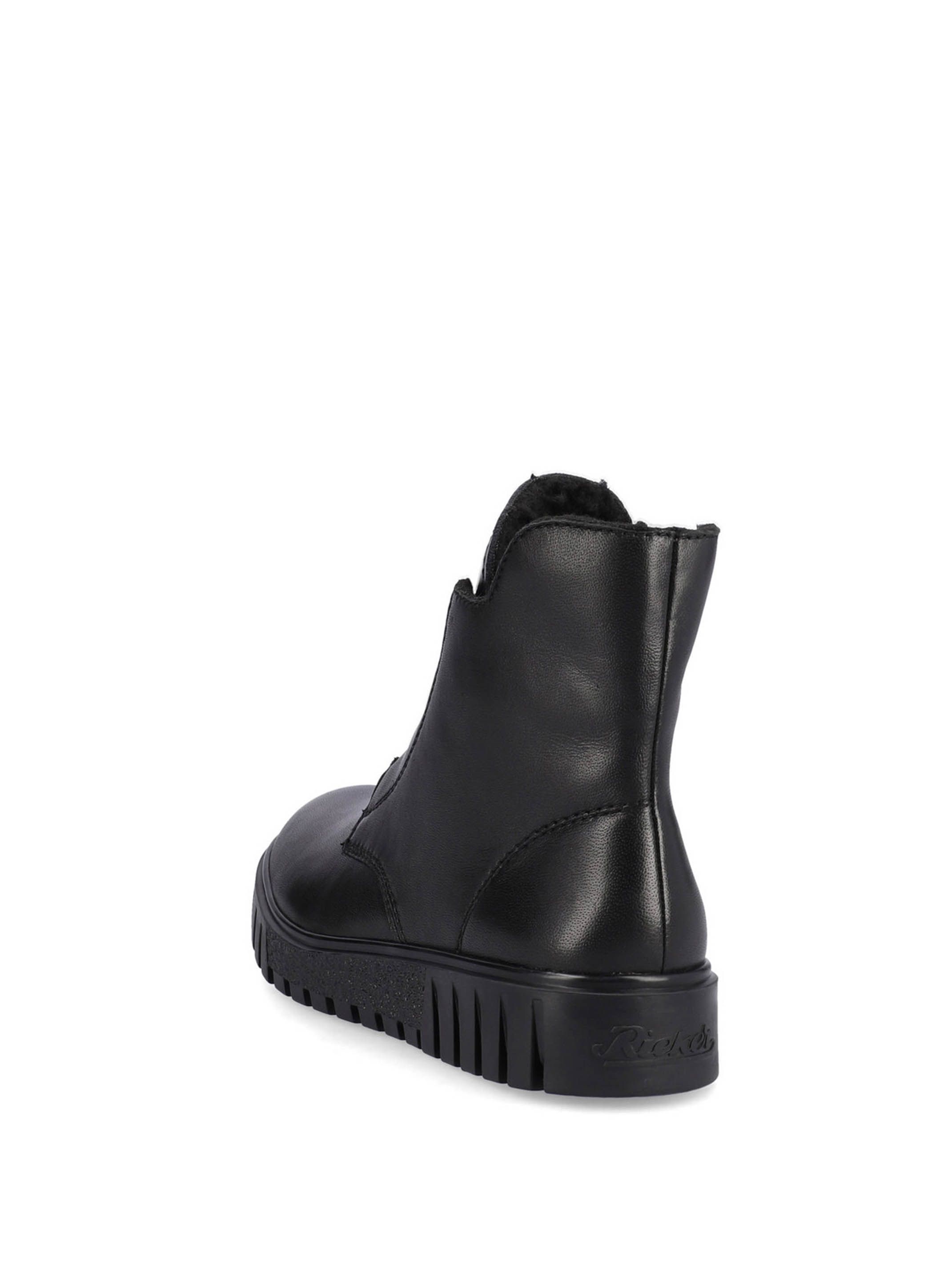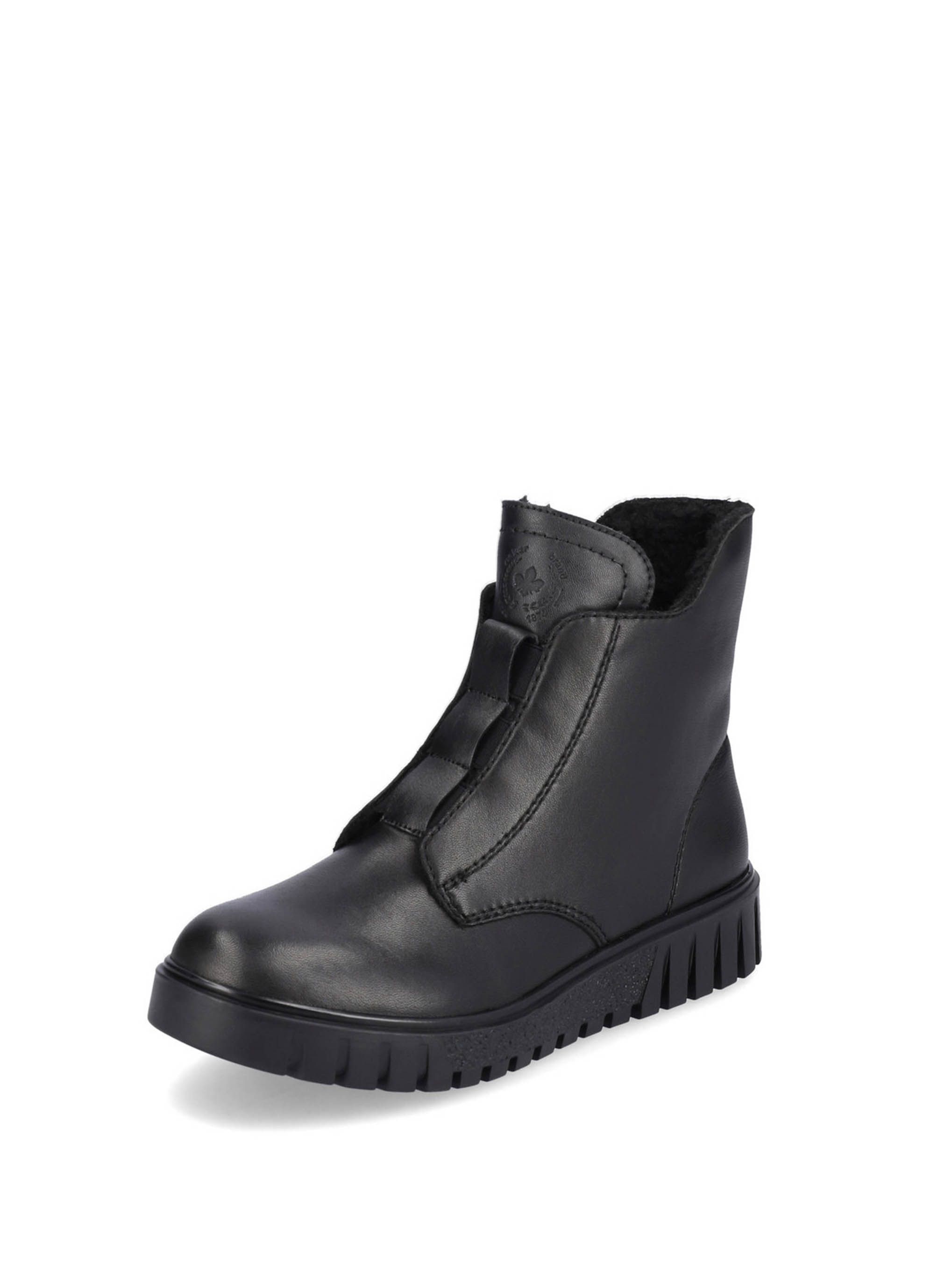 Ботинки женские немецкого бренда Rieker. Верх изготовлен из натуральной и искусственной кожи черного цвета. Материал подкладки искусственная шерсть. Идеально подойдут на зиму и станут отличным завершением к Вашему гардеробу.