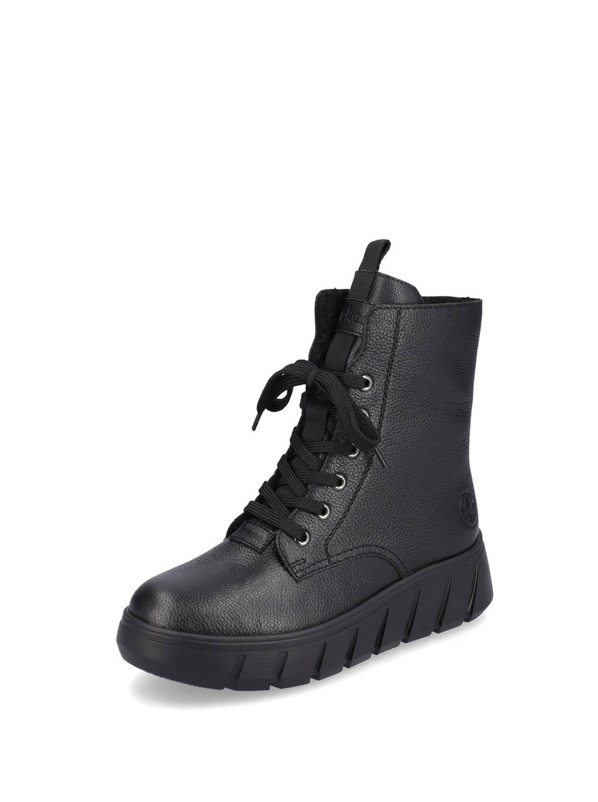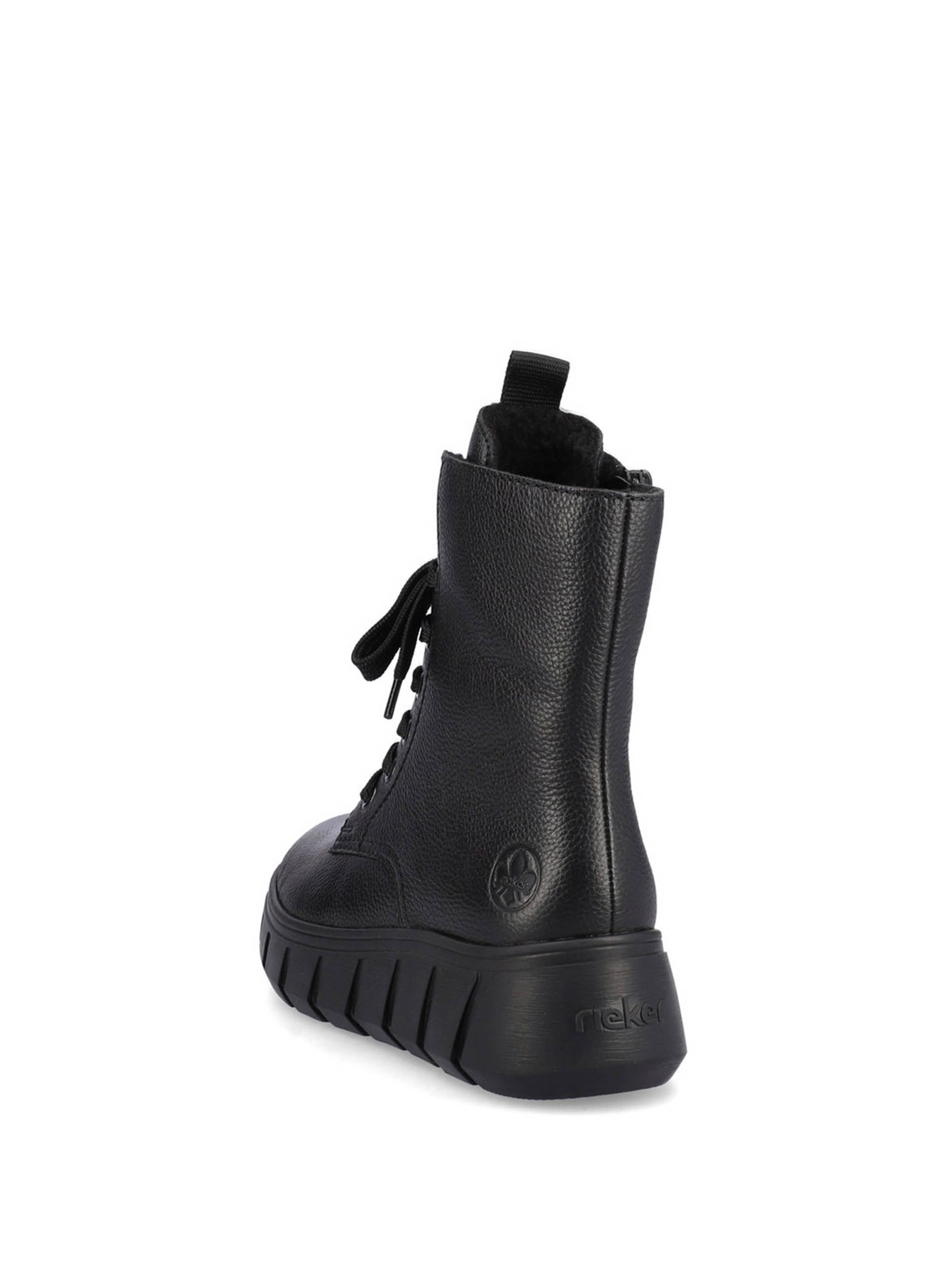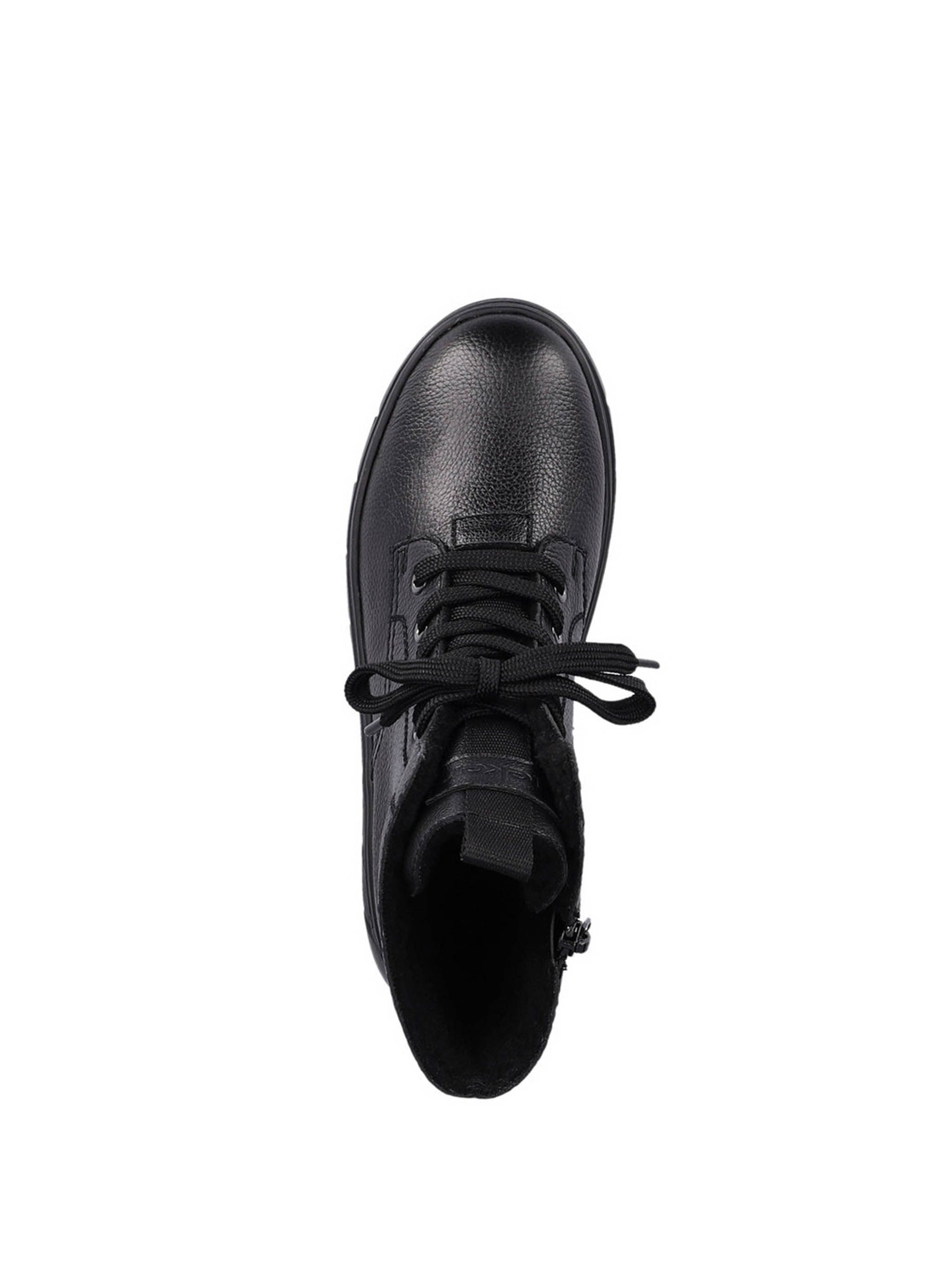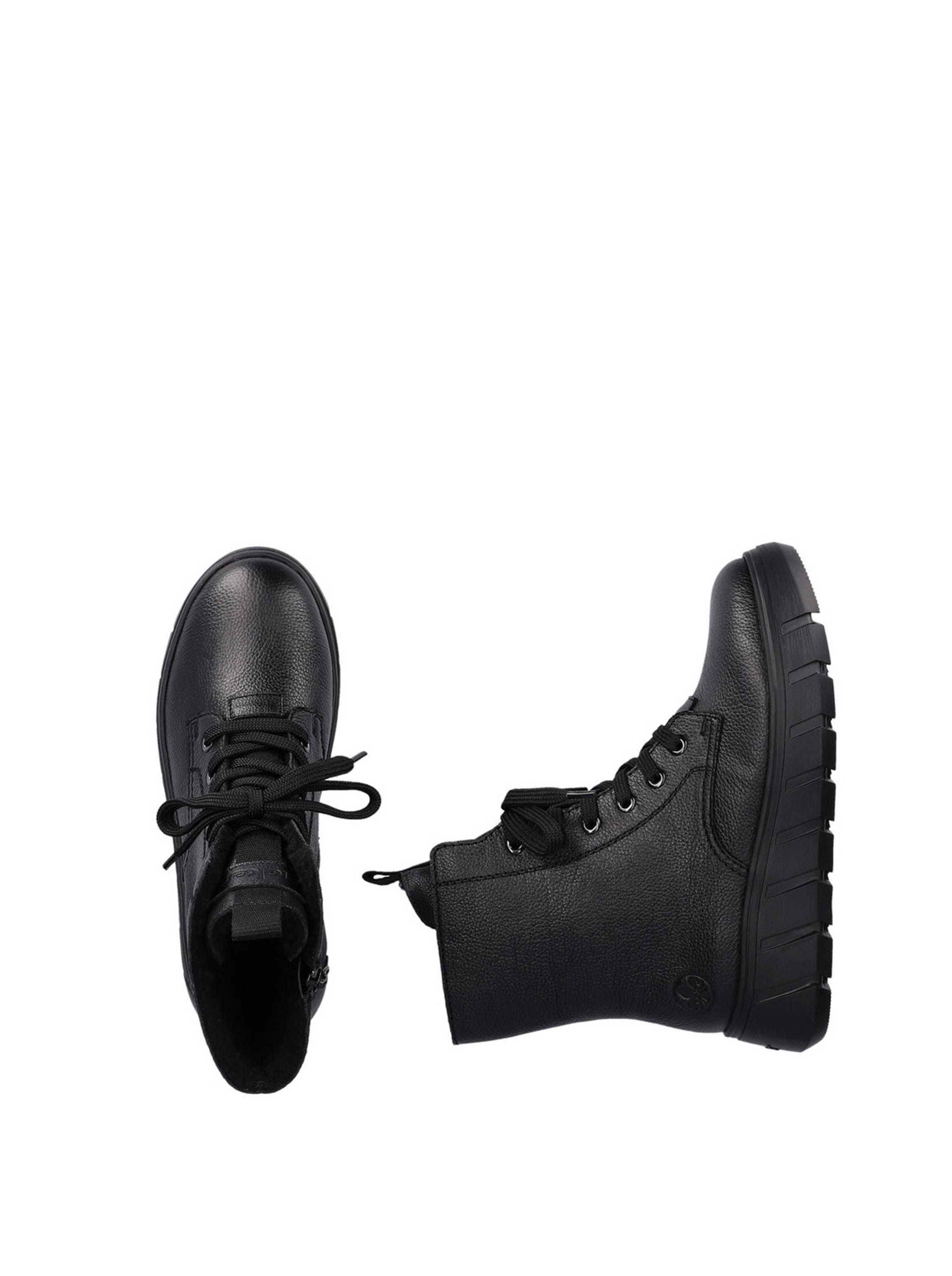 Ботинки женские немецкого бренда Rieker. Верх изготовлен из натуральной и искусственной кожи черного цвета. Материал подкладки искусственная шерсть. Идеально подойдут на зиму и станут отличным завершением к Вашему гардеробу.