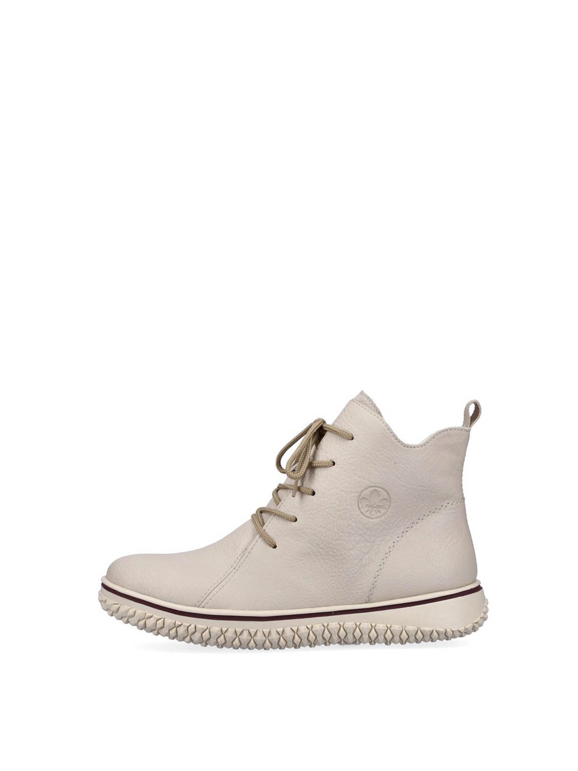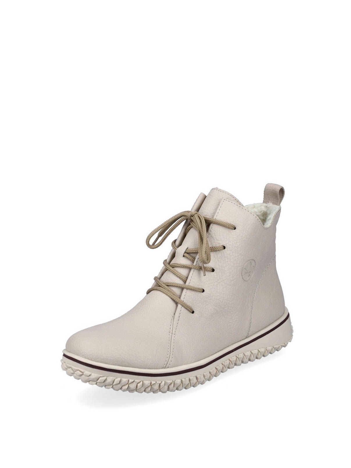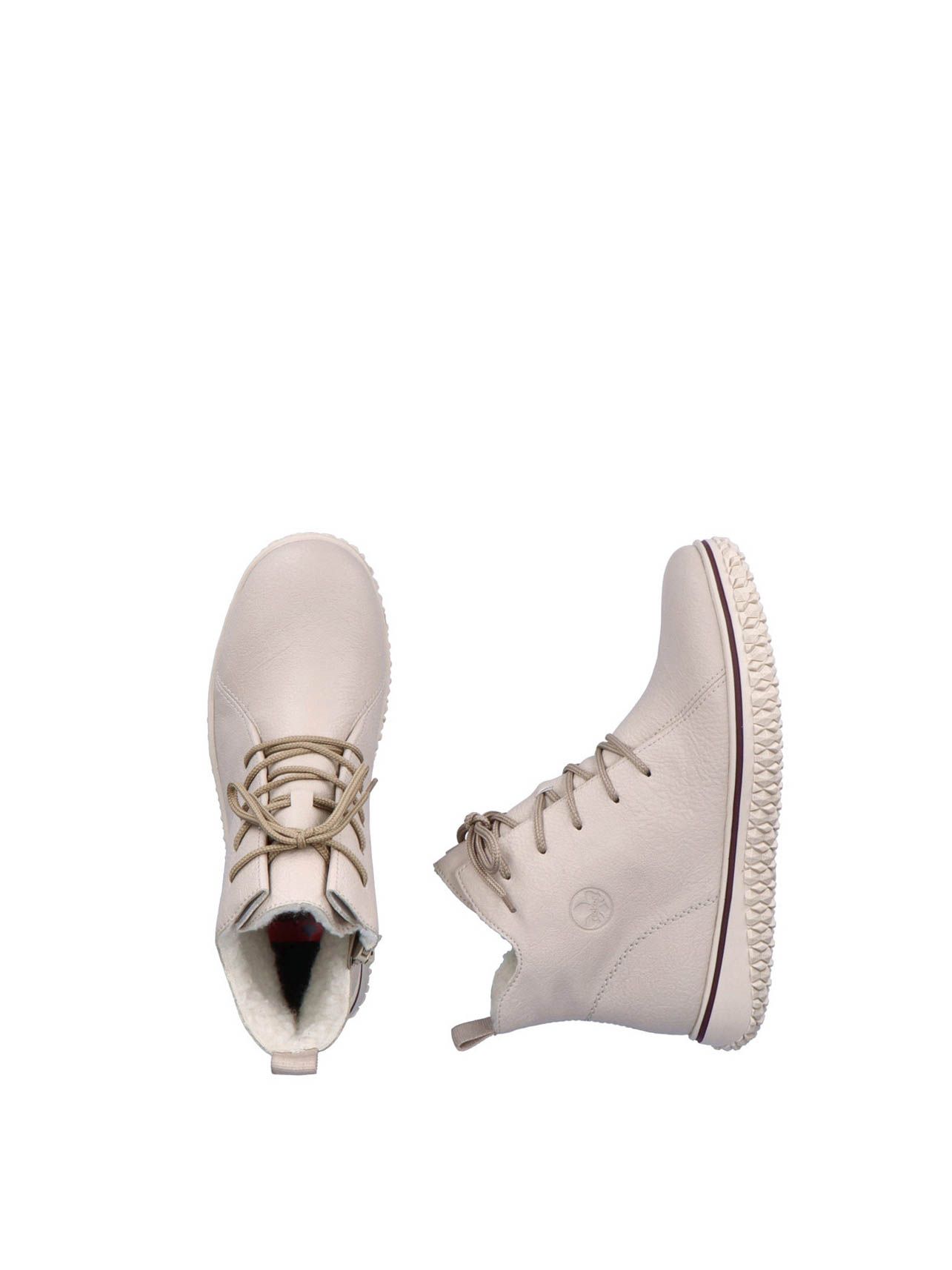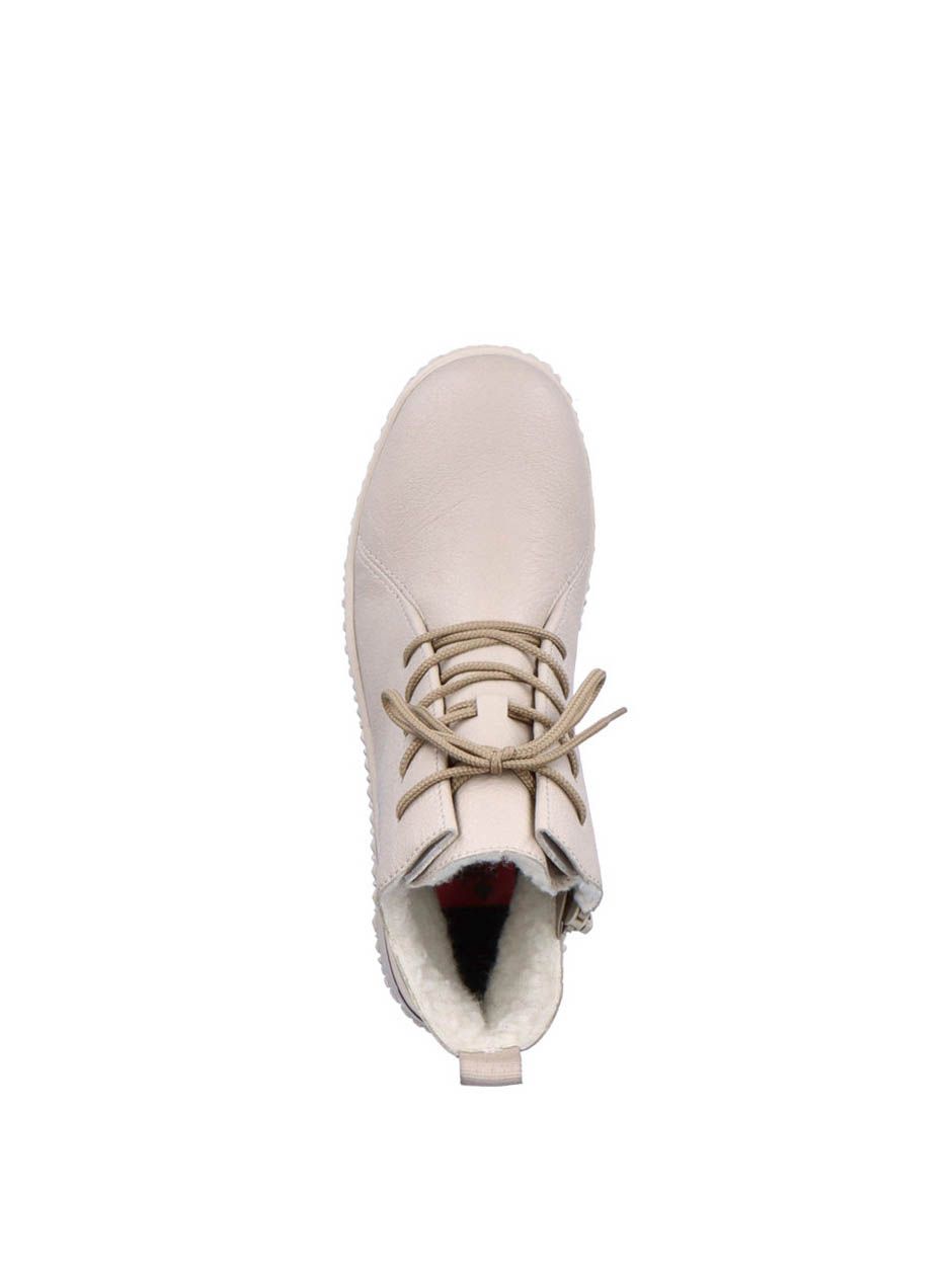Ботинки женские немецкого бренда Rieker. Верх изготовлен из искусственной кожи бежевого цвета. Материал подкладки искусственная шерсть. Идеально подойдут на зиму и станут отличным завершением к Вашему гардеробу.