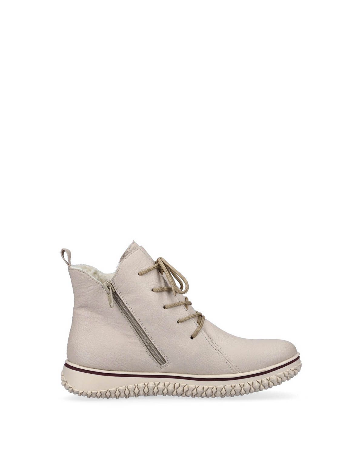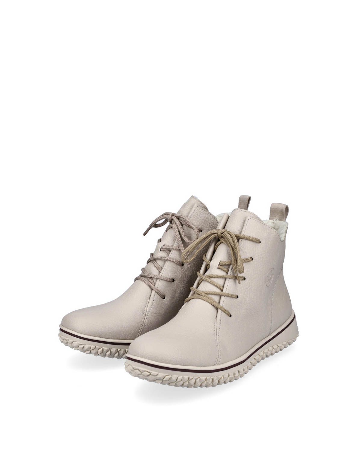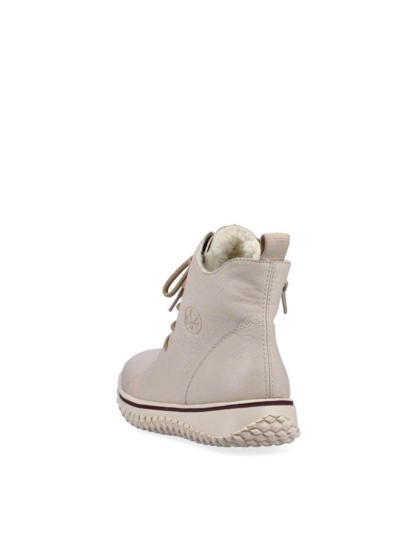Ботинки женские немецкого бренда Rieker. Верх изготовлен из искусственной кожи бежевого цвета. Материал подкладки искусственная шерсть. Идеально подойдут на зиму и станут отличным завершением к Вашему гардеробу.