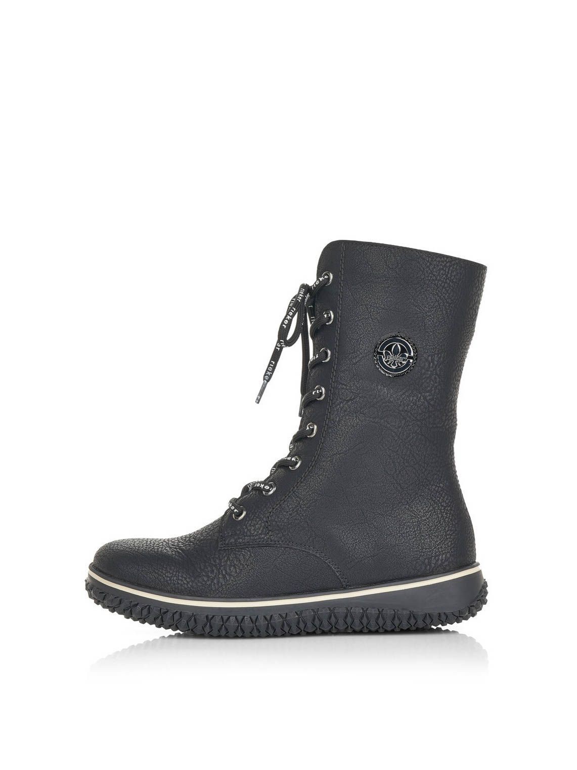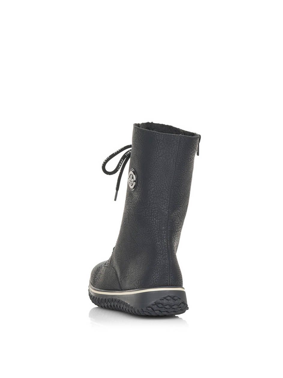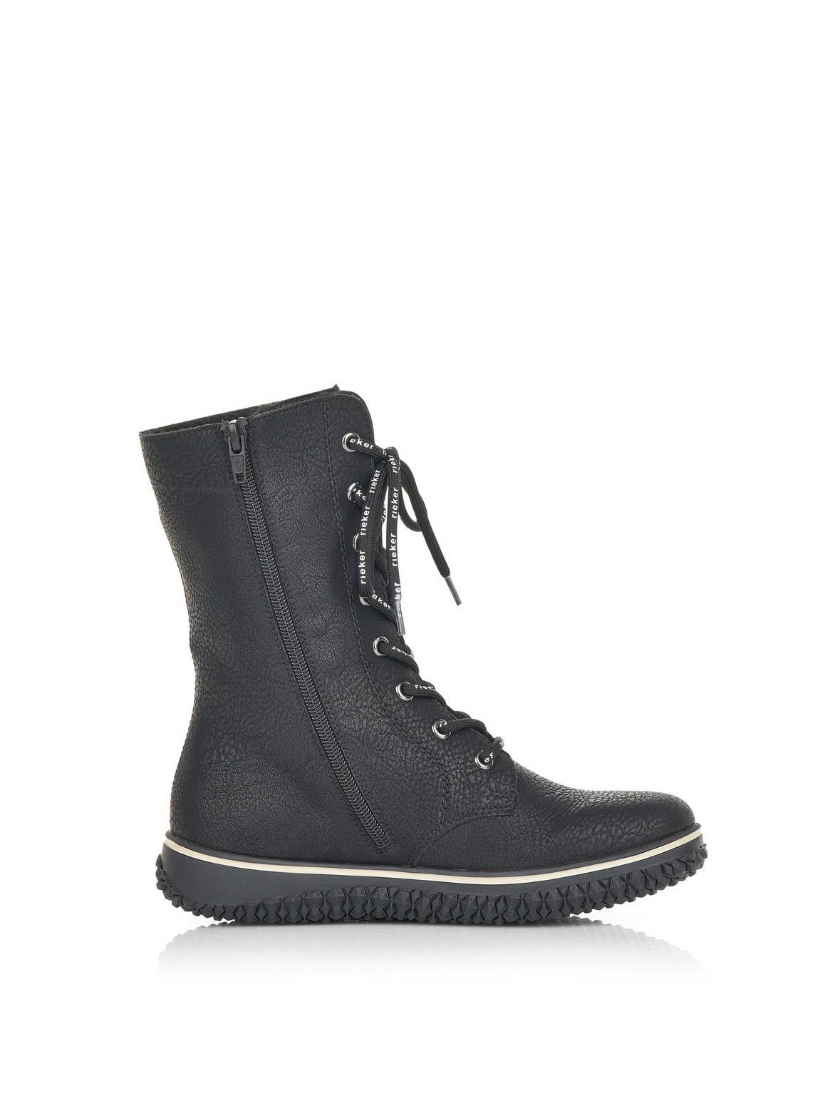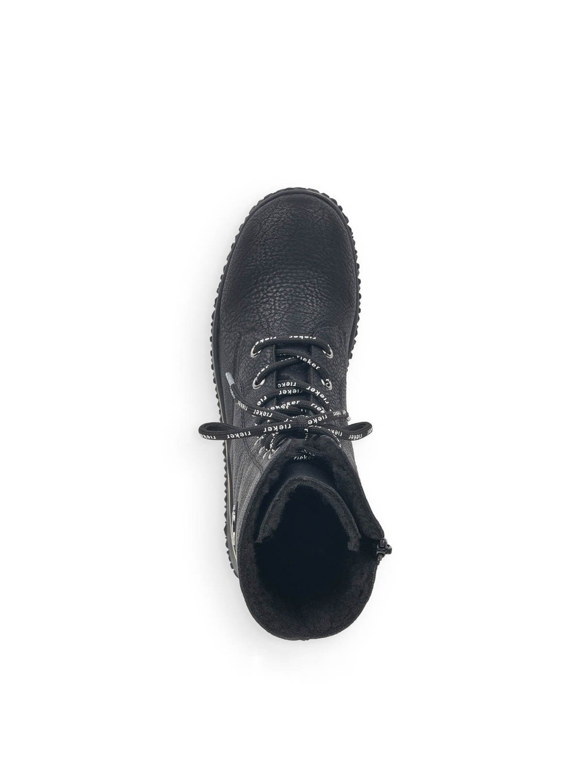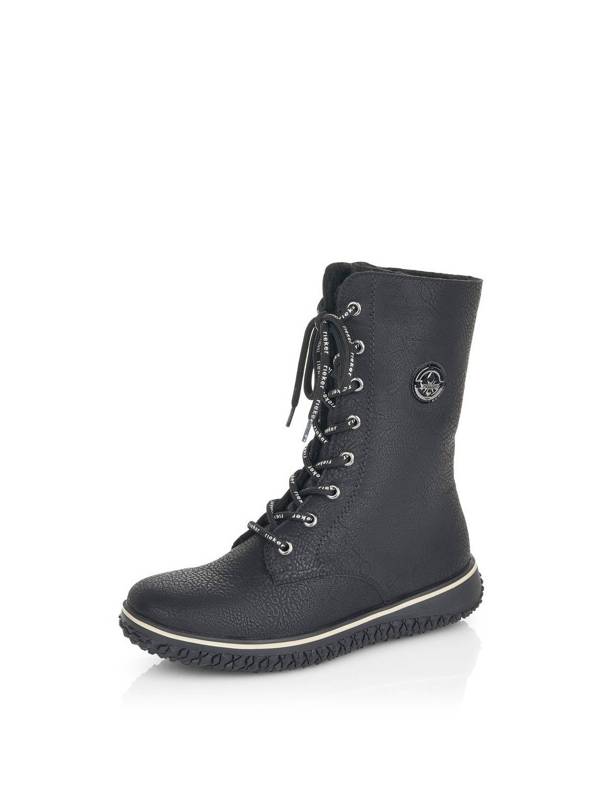 Ботинки женские немецкого бренда Rieker. Верх изготовлен из искусственной кожи черного цвета. Материал подкладки искусственная шерсть. Идеально подойдут на зиму и станут отличным завершением к Вашему гардеробу.