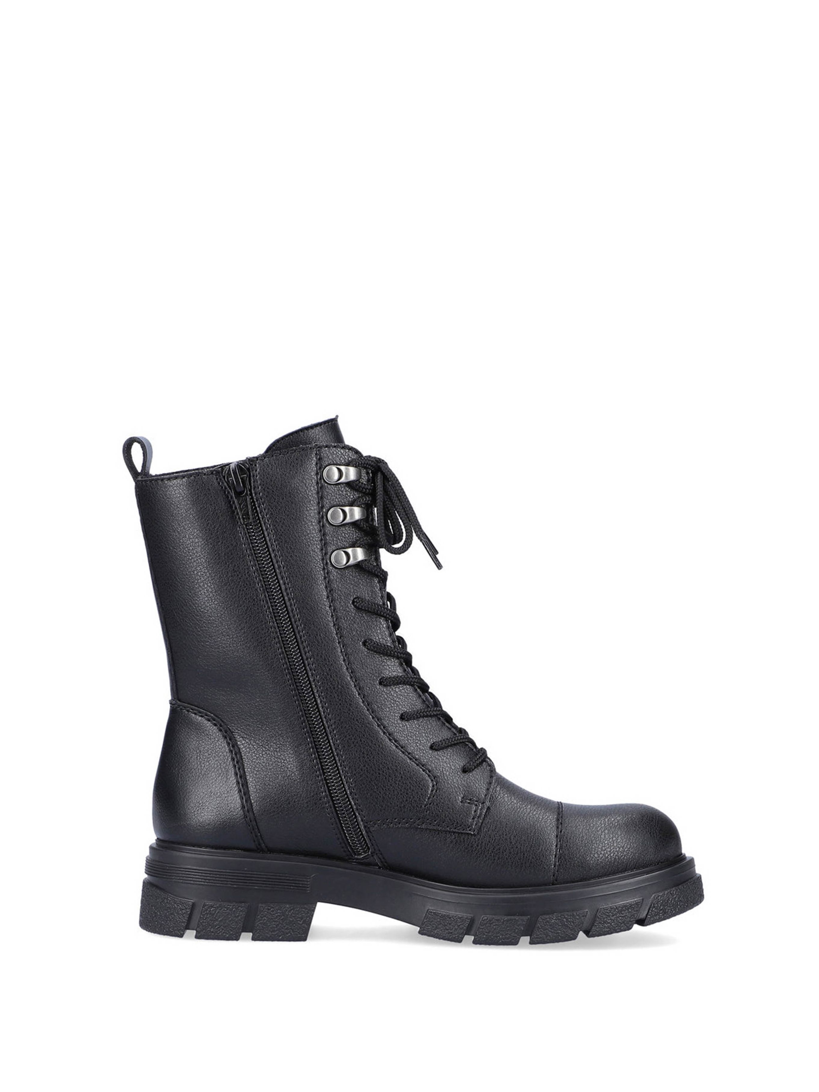 Ботинки женские немецкого бренда Rieker. Верх изготовлен из натуральной и искусственной кожи черного цвета. Материал подкладки натуральная шерсть. Идеально подойдут на зиму и станут отличным завершением к Вашему гардеробу.