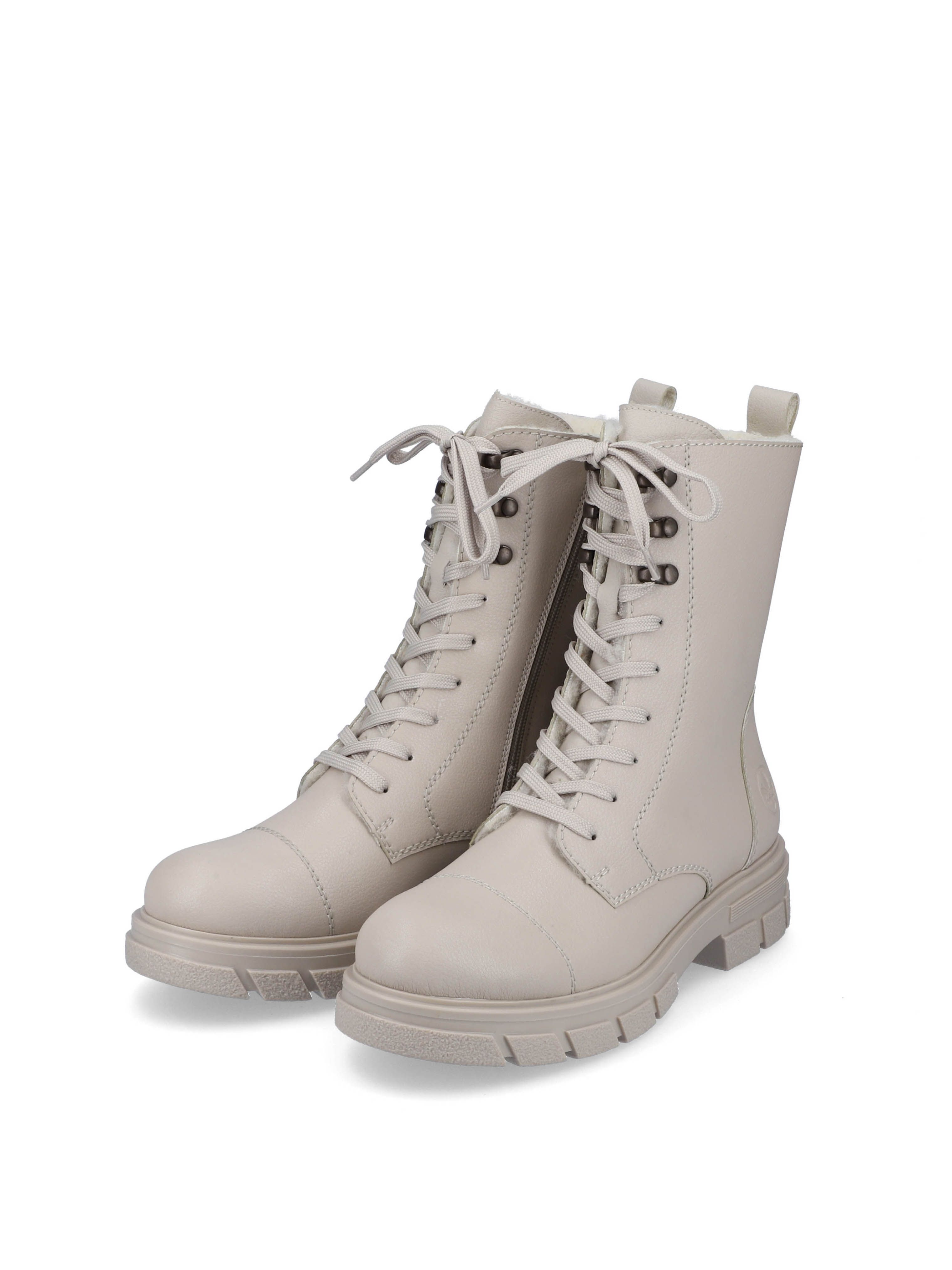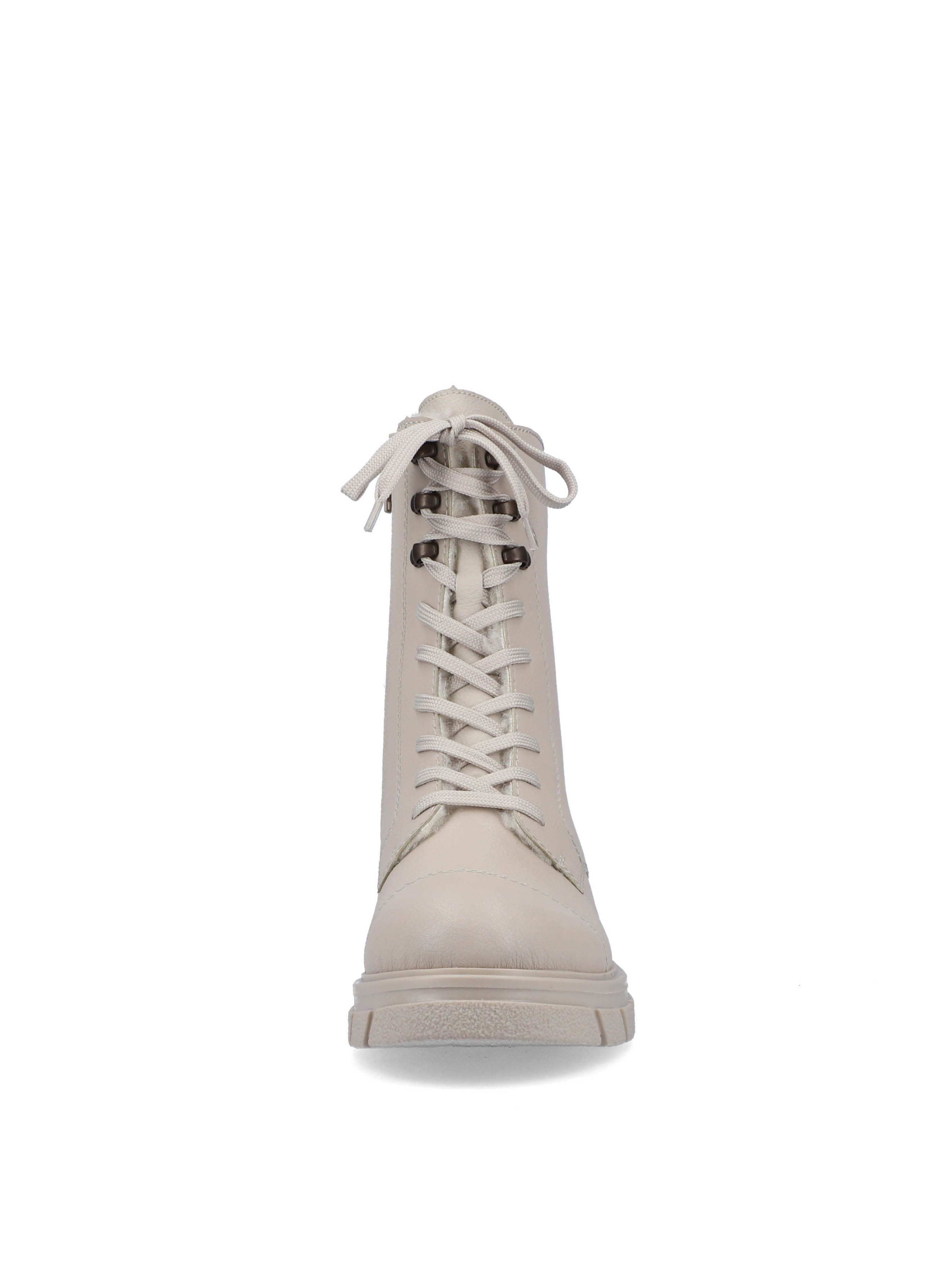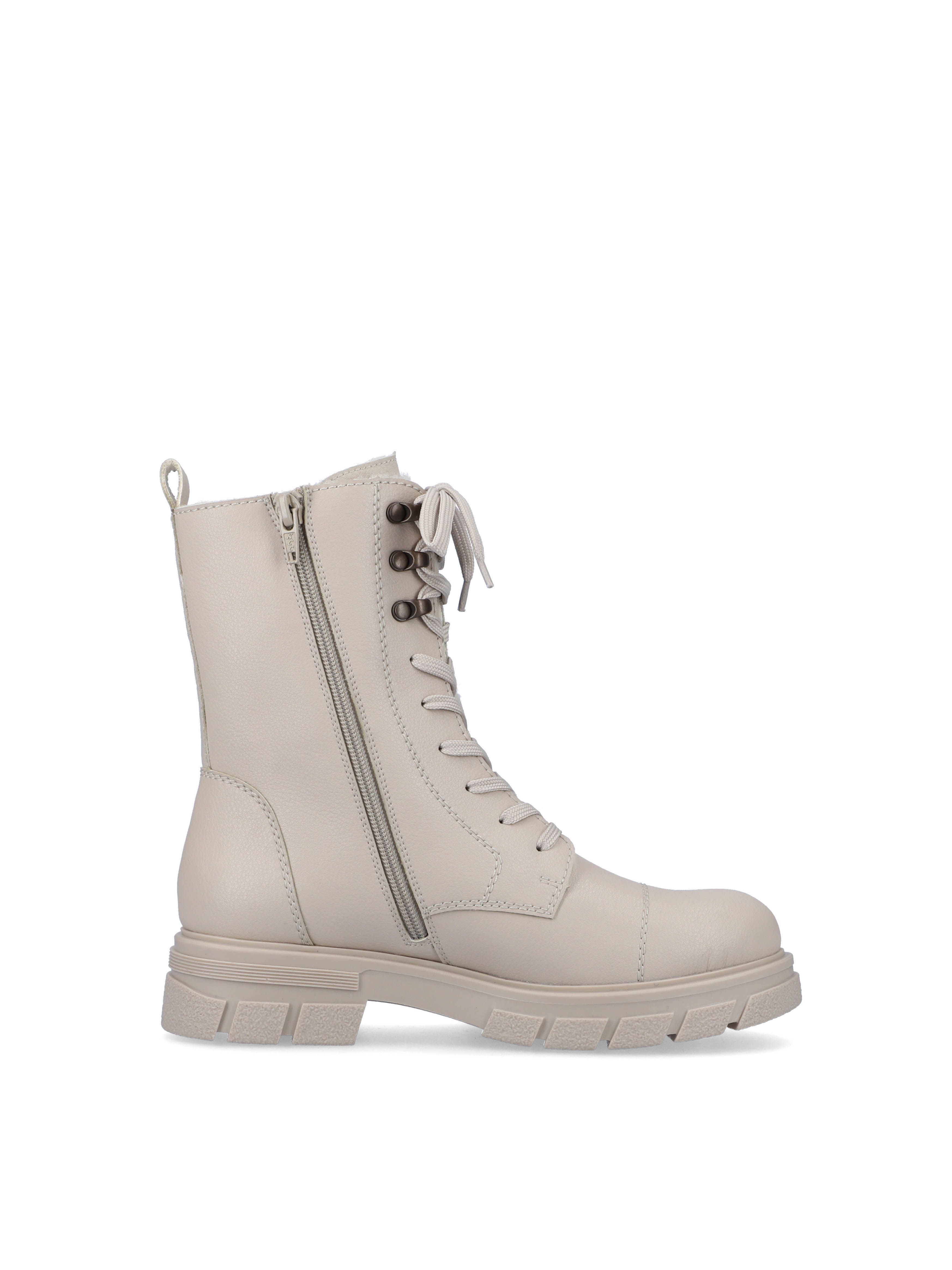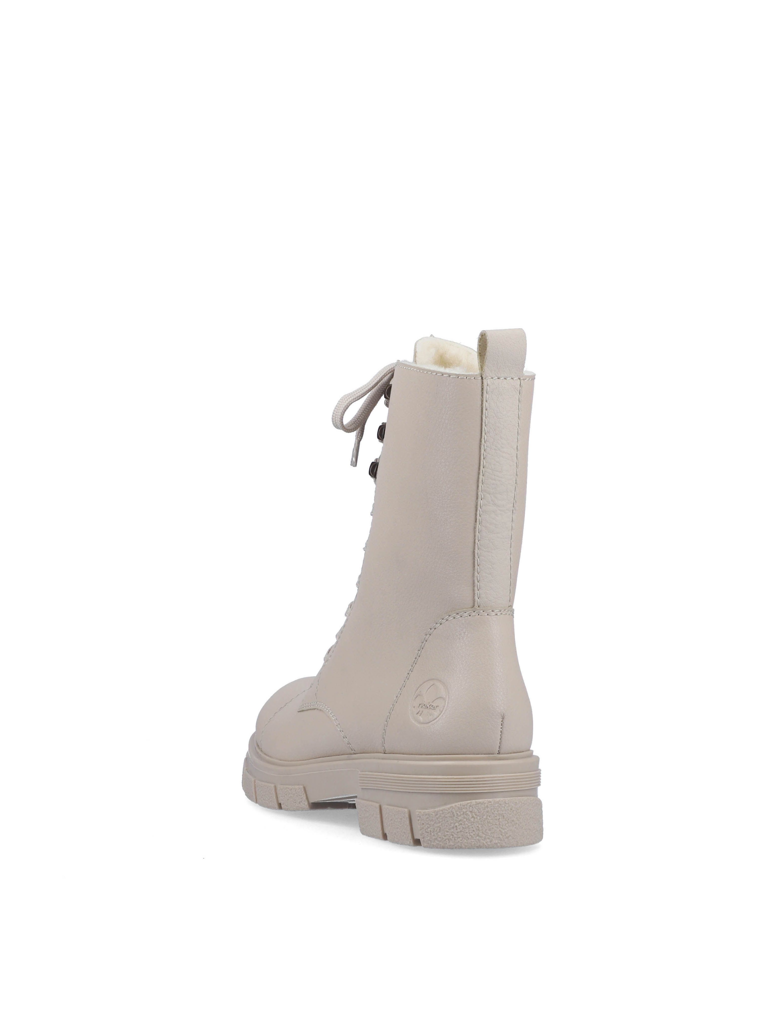 Рекомендуем рассмотреть бежевые женские ботинки на молнии и шнурках от немецкого бренда Rieker, сочетающие в себе качество, комфорт, простой и современный дизайн.