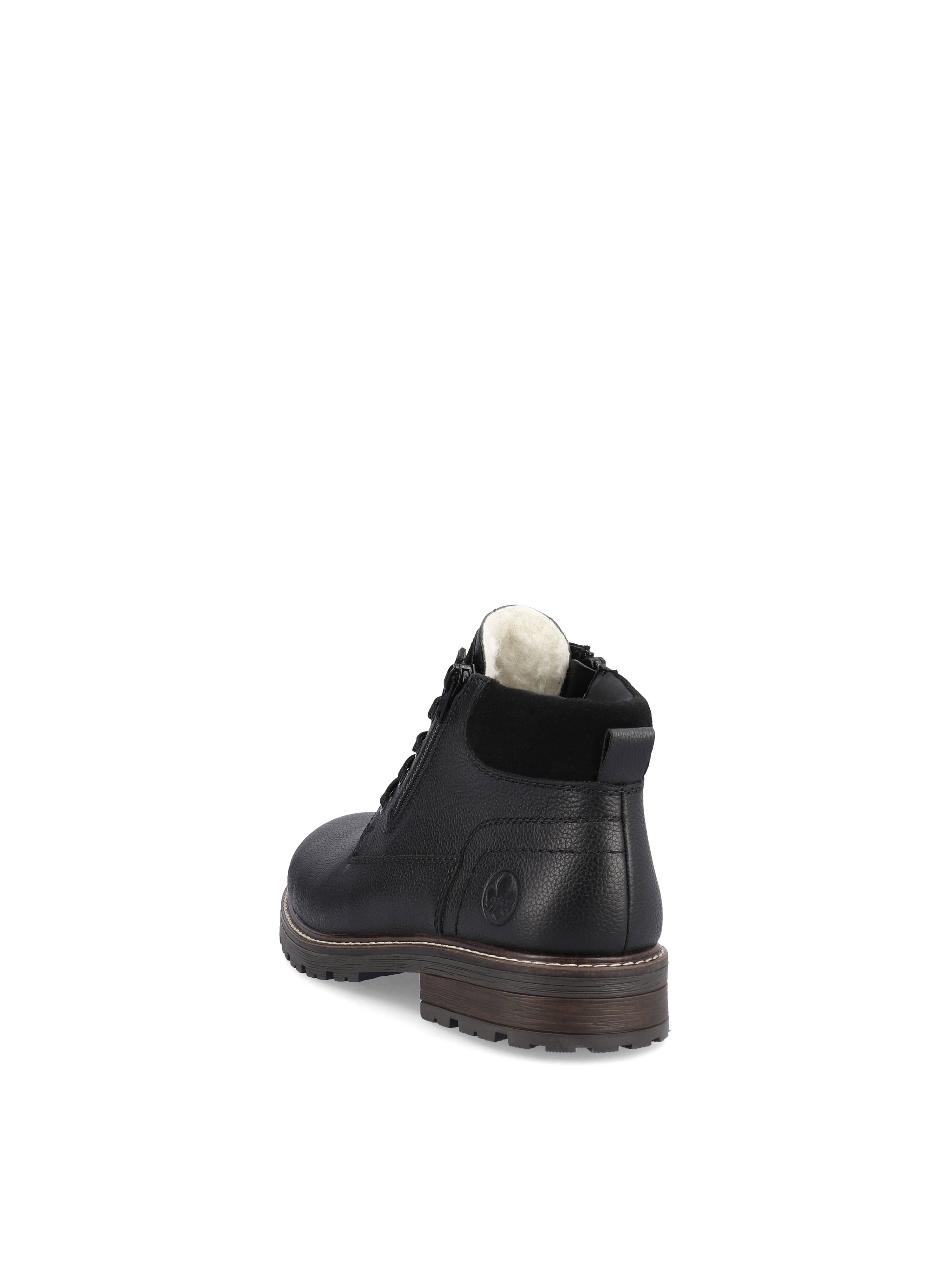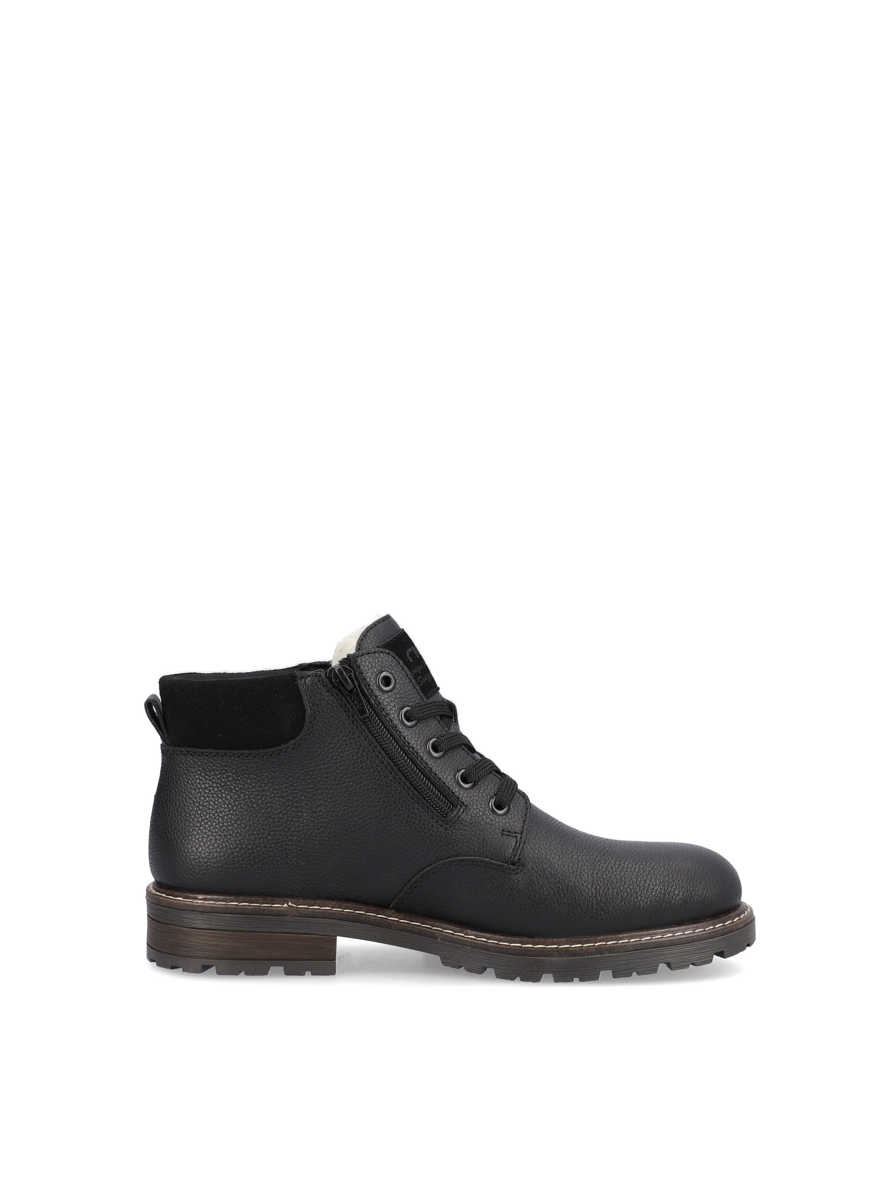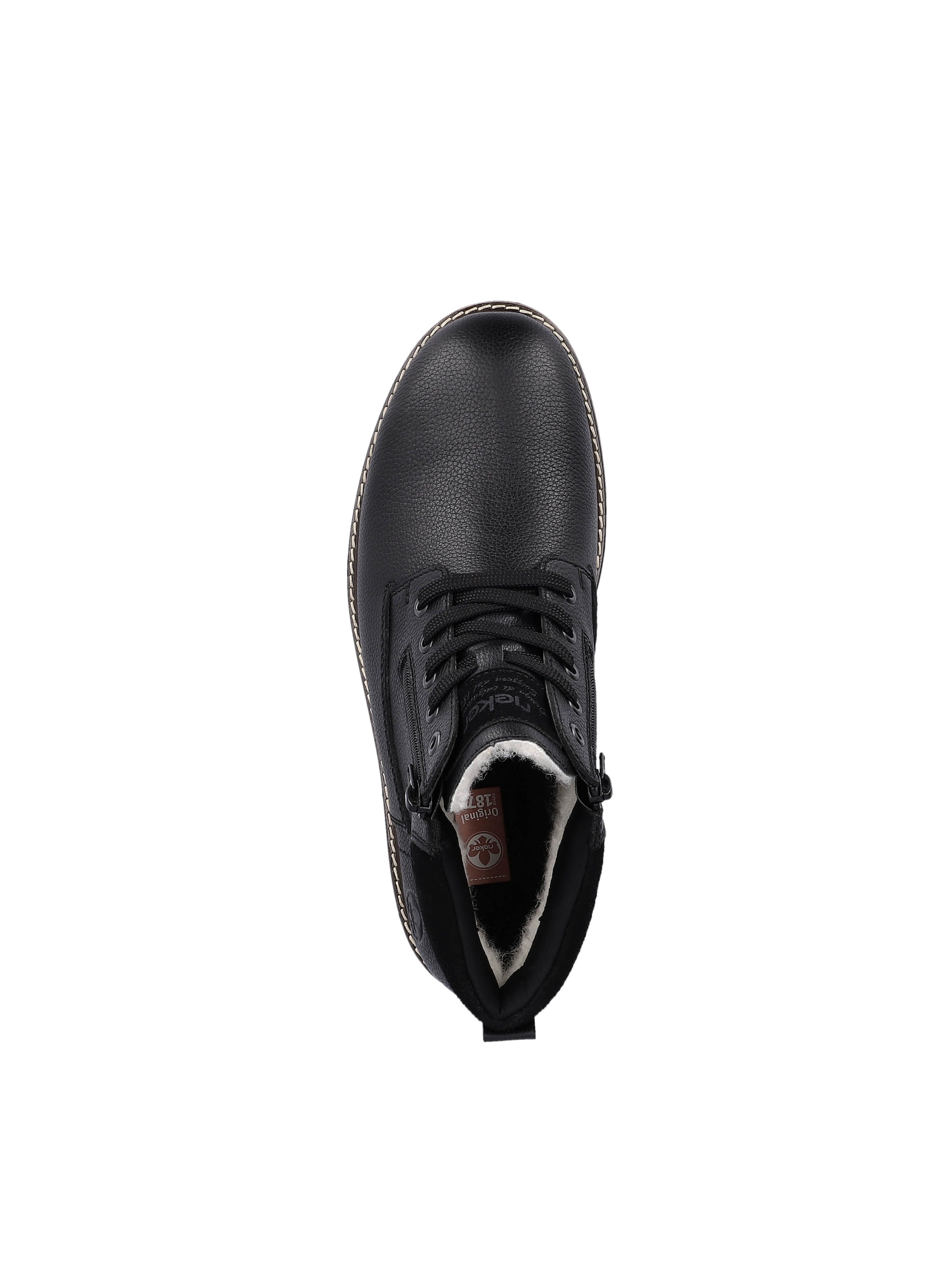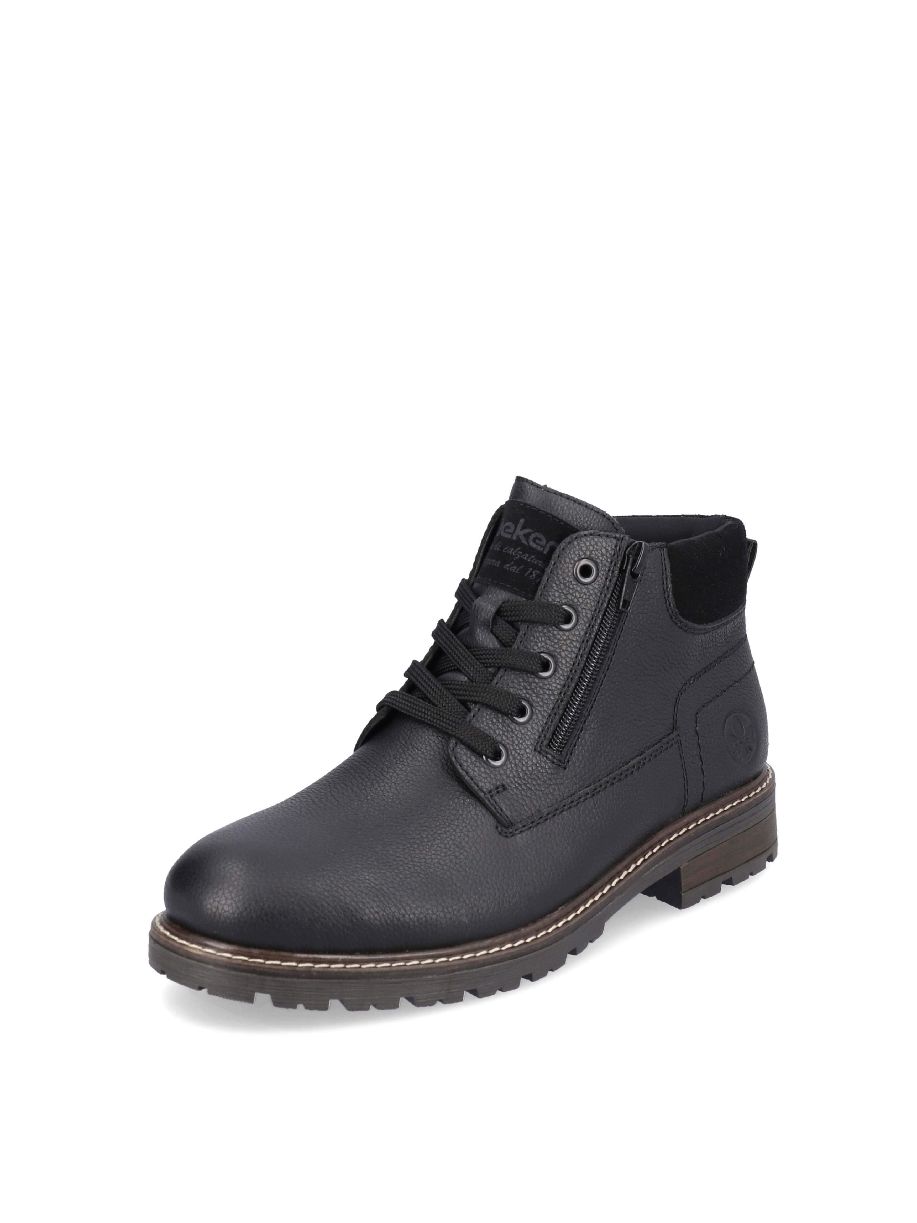 Рекомендуем рассмотреть черные мужские ботинки на молнии и шнурках от немецкого бренда Rieker, сочетающие в себе качество, комфорт, простой и современный дизайн.