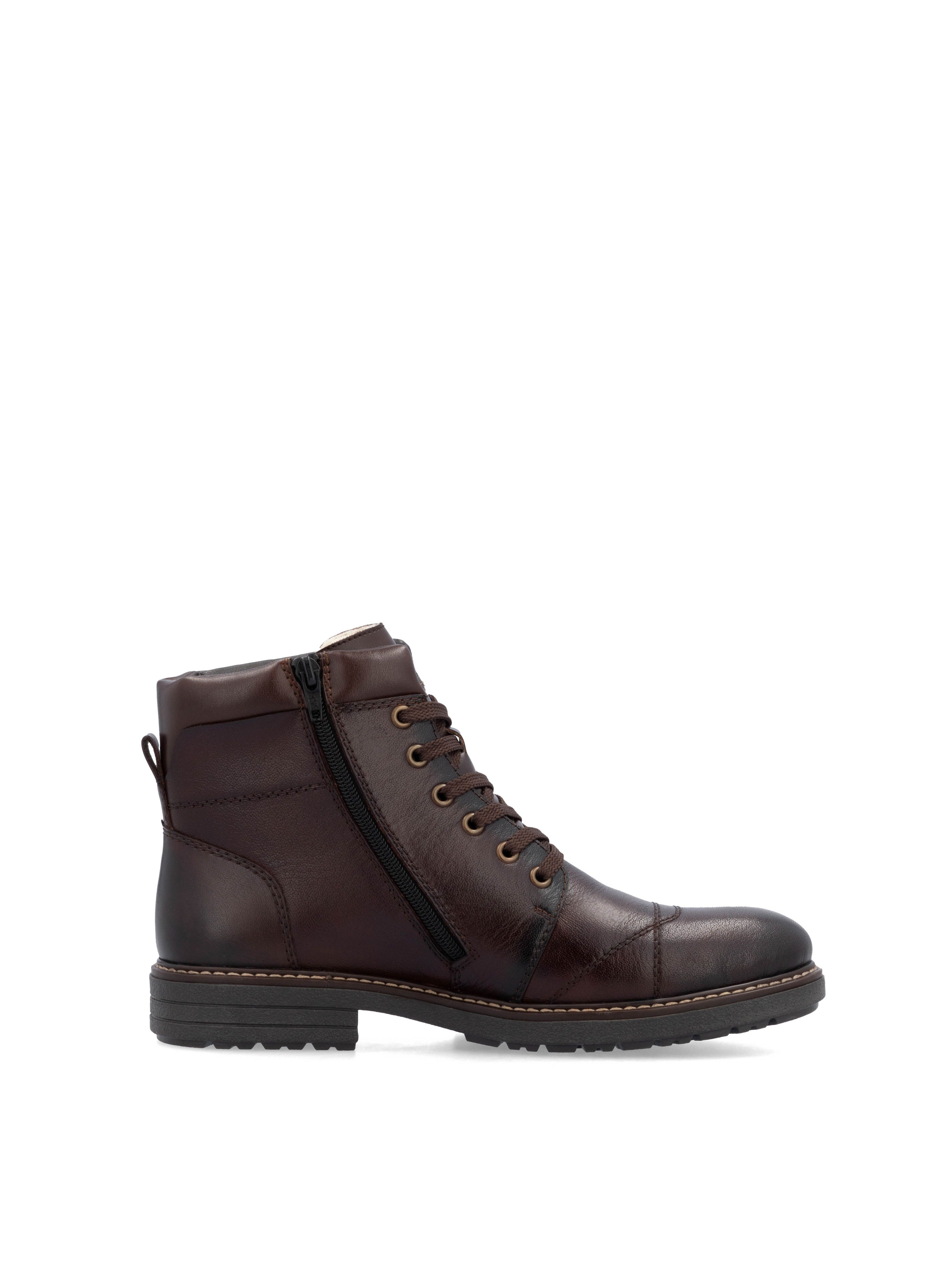 Рекомендуем рассмотреть коричневые мужские ботинки на молнии и шнурках от немецкого бренда Rieker, сочетающие в себе качество, комфорт, простой и современный дизайн.