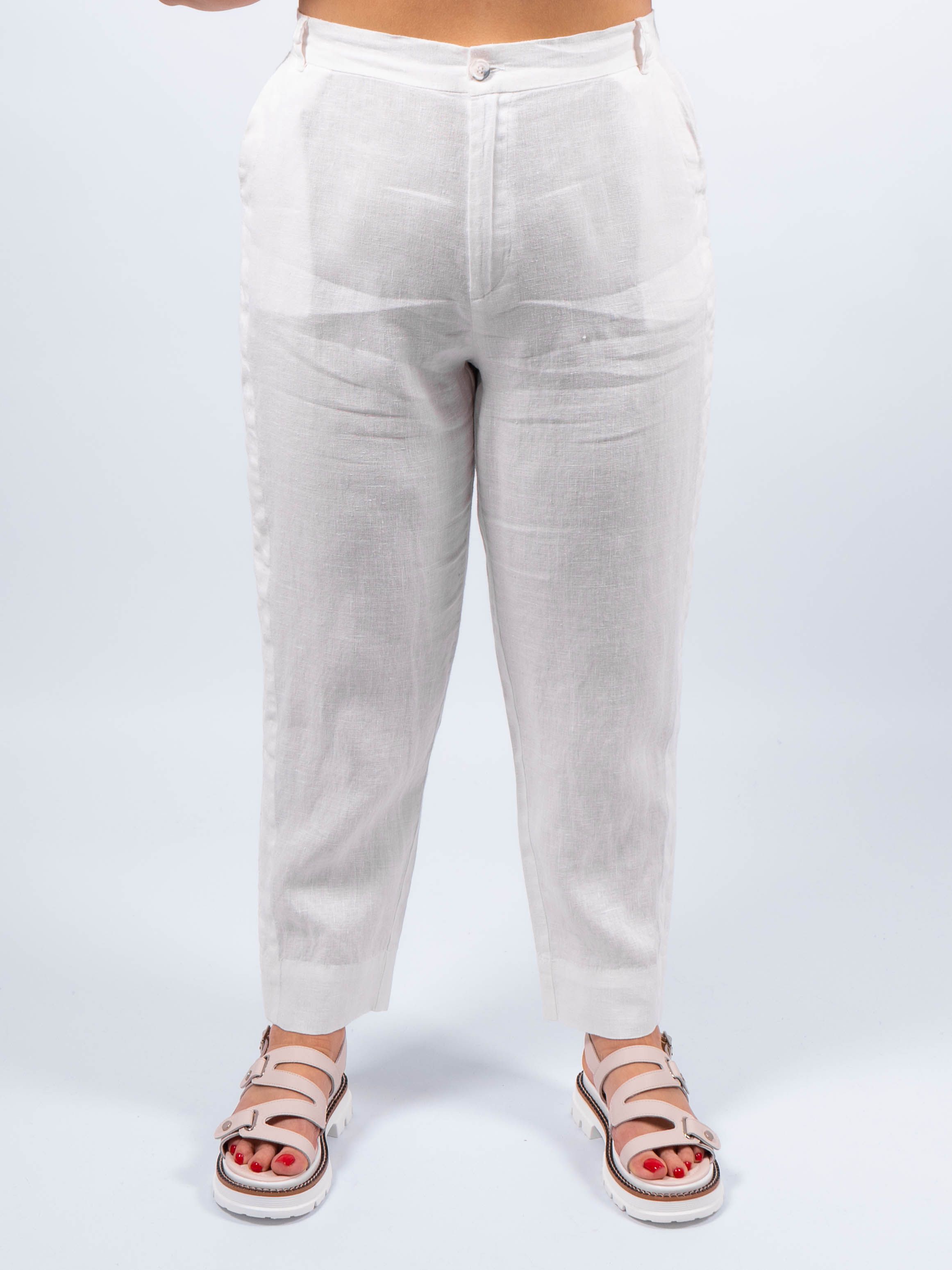 Льняные брюки-чинос ЛИГИ Универсальная модель соединяет в себе черты спортивности и комфорта casual! Свободный крой и зауженный силуэт позволяют подчеркнуть округлость бедер и продемонстрировать тонкие щиколотки. Брюки-чинос удобны и свободно сидят на фигуре. Непринужденность этого фасона лучше всего смотрится в сочетании с объемными льняными блузами, топами и простыми футболками. Модельные особенности: Посадка на талии Притачной пояс со шлевками частично поставлен на резинку Брюки застегиваются на молнию Силуэт брючин сужается книзу Боковые карманы с отстрочкой Задние карманы обработаны в рамку и застегиваются на пуговицу Широкая подгибка низа дает возможность подворачивать брюки, регулируя их длину Боковой шов оформлен имитацией лампаса Рекомендации: Неформальный и свободный силуэт хорошо подходит для активного отдыха и повседневной жизни! Обувь подбирайте в соответствии общему стилю комплекта. Например кеды, лоферы, эспадрильи. Рекомендуется ручная стирка при температуре не более +30.