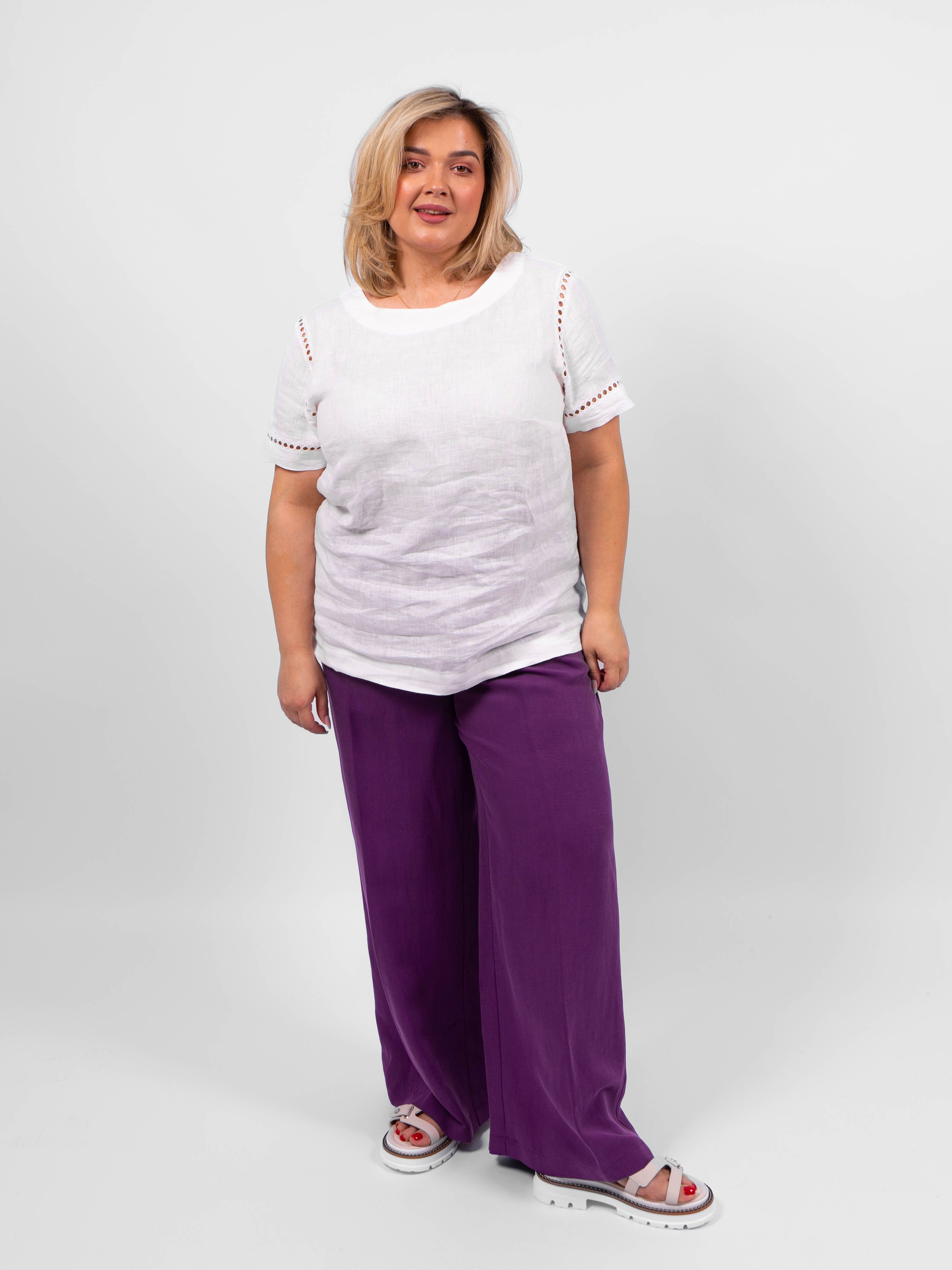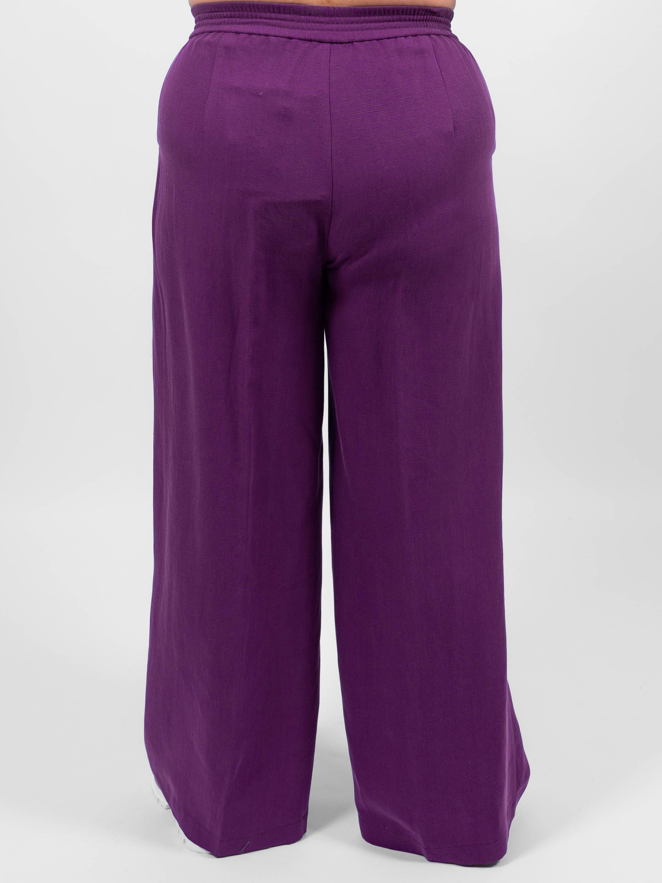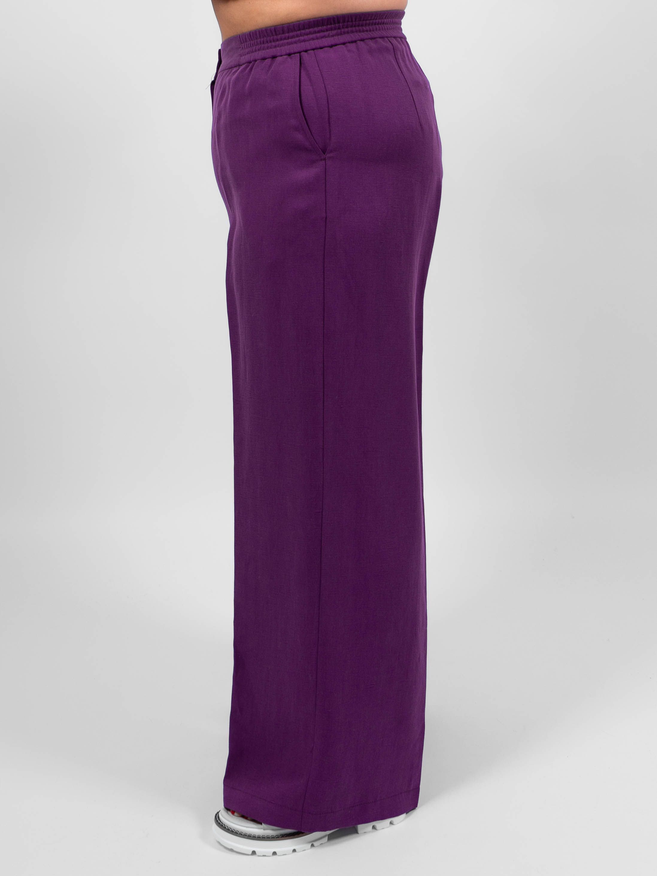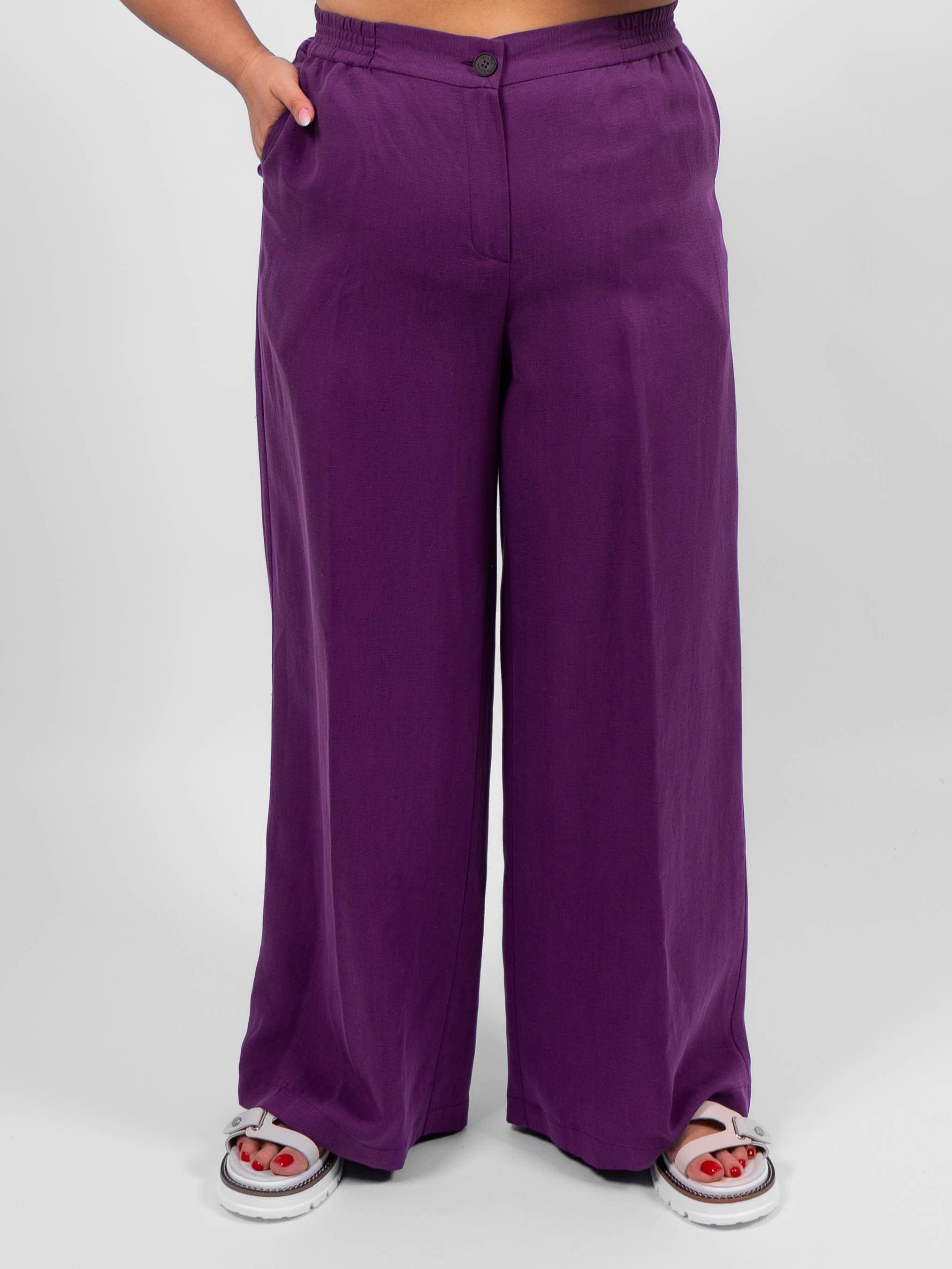 Брюки классические элегантного и стильного образа от obuv365. Брюки легкие и практически невесомые, идеально вписываются в летний образ женщин любого возраста. Брюки фиолетовые палаццо больших размеров женские имеют прямой крой и свободную посадку, обеспечивая свободу движений.