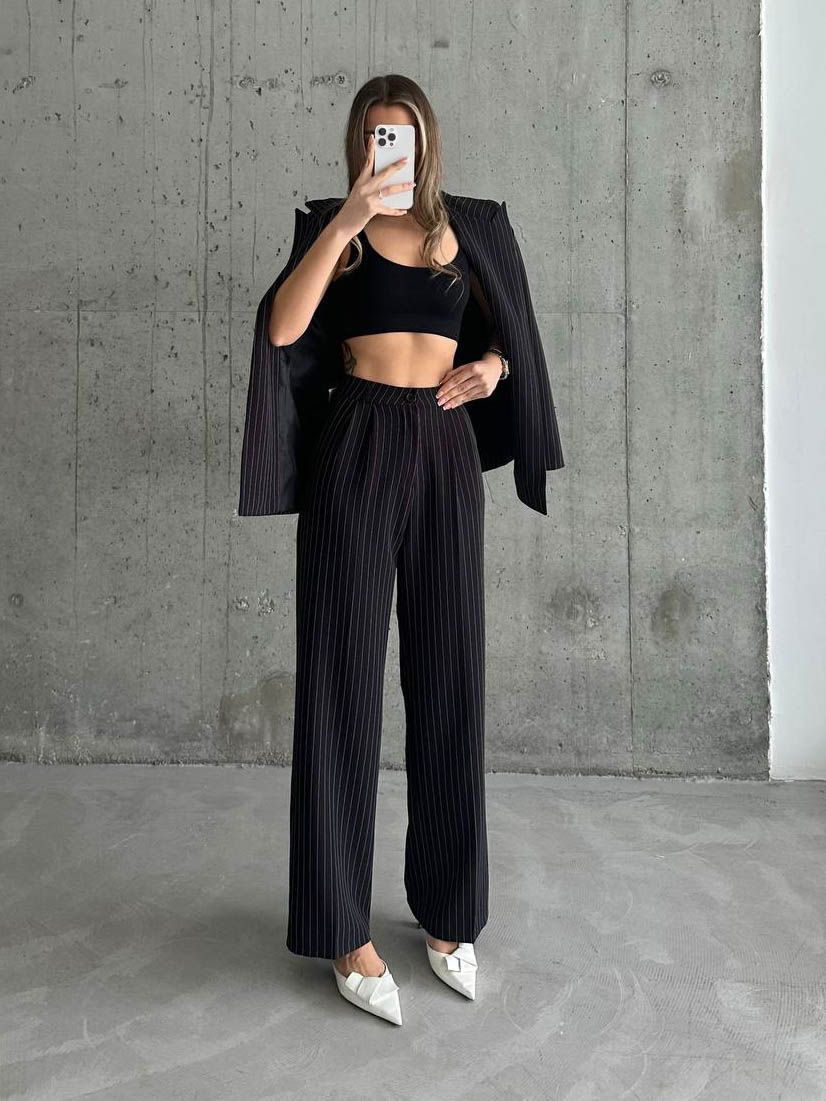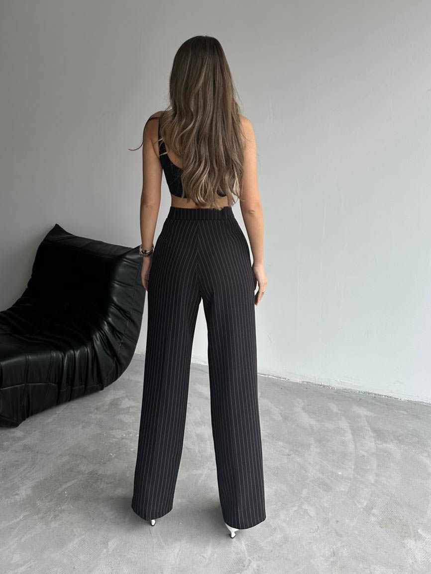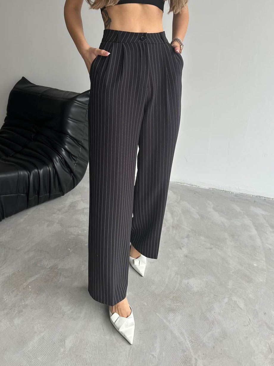 Стильные женские классические брюки в полоску прямые не зауженная модель прекрасная основа для любого гардероба. Можно носить как повседневный базовый офисный вариант, на работу, на учебу, деловую встречу. Прямой крой делает образ более подтянутым и стройным. Комфортная длина не стесняет движения и подходит для любого роста и фигуры. Штаны для женщин с высокой талией, красиво подчеркивают силуэт, прекрасно сочетаются с туфлями на каблуке или плоской подошве, кроссовками, ботинками на шнуровке, сапогами.