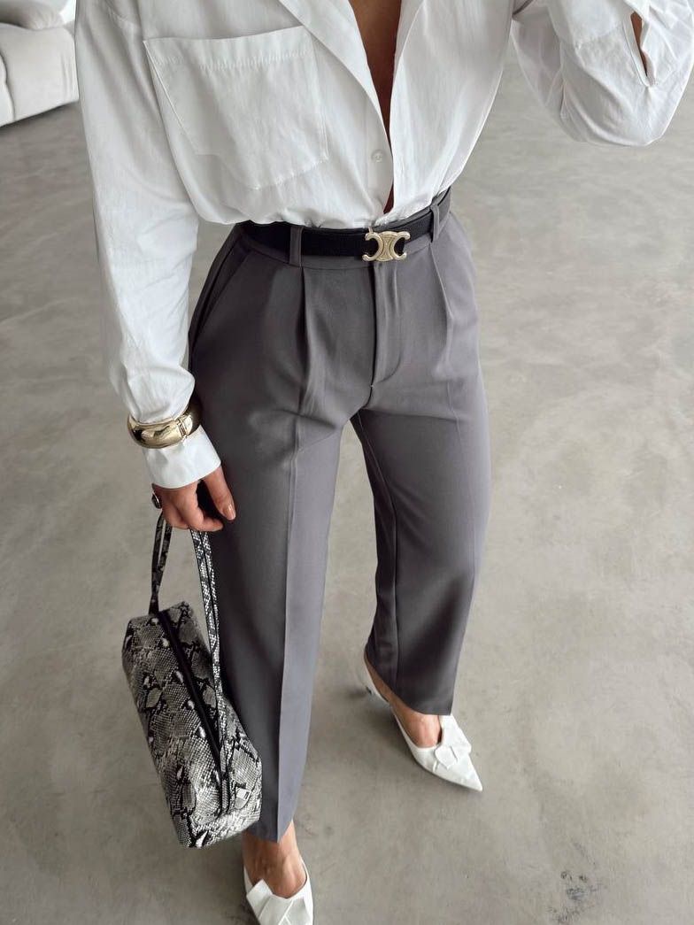 Стильные женские брюки прямые не зауженная модель прекрасная основа для любого гардероба. Можно носить как повседневный базовый офисный вариант, на работу, на учебу, деловую встречу. Прямой крой делает образ более подтянутым и стройным. Комфортная длина не стесняет движения и подходит для любого роста и фигуры. Штаны для женщин с высокой талией, красиво подчеркивают силуэт, прекрасно сочетаются с туфлями на каблуке или плоской подошве, кроссовками, ботинками на шнуровке, сапогами.