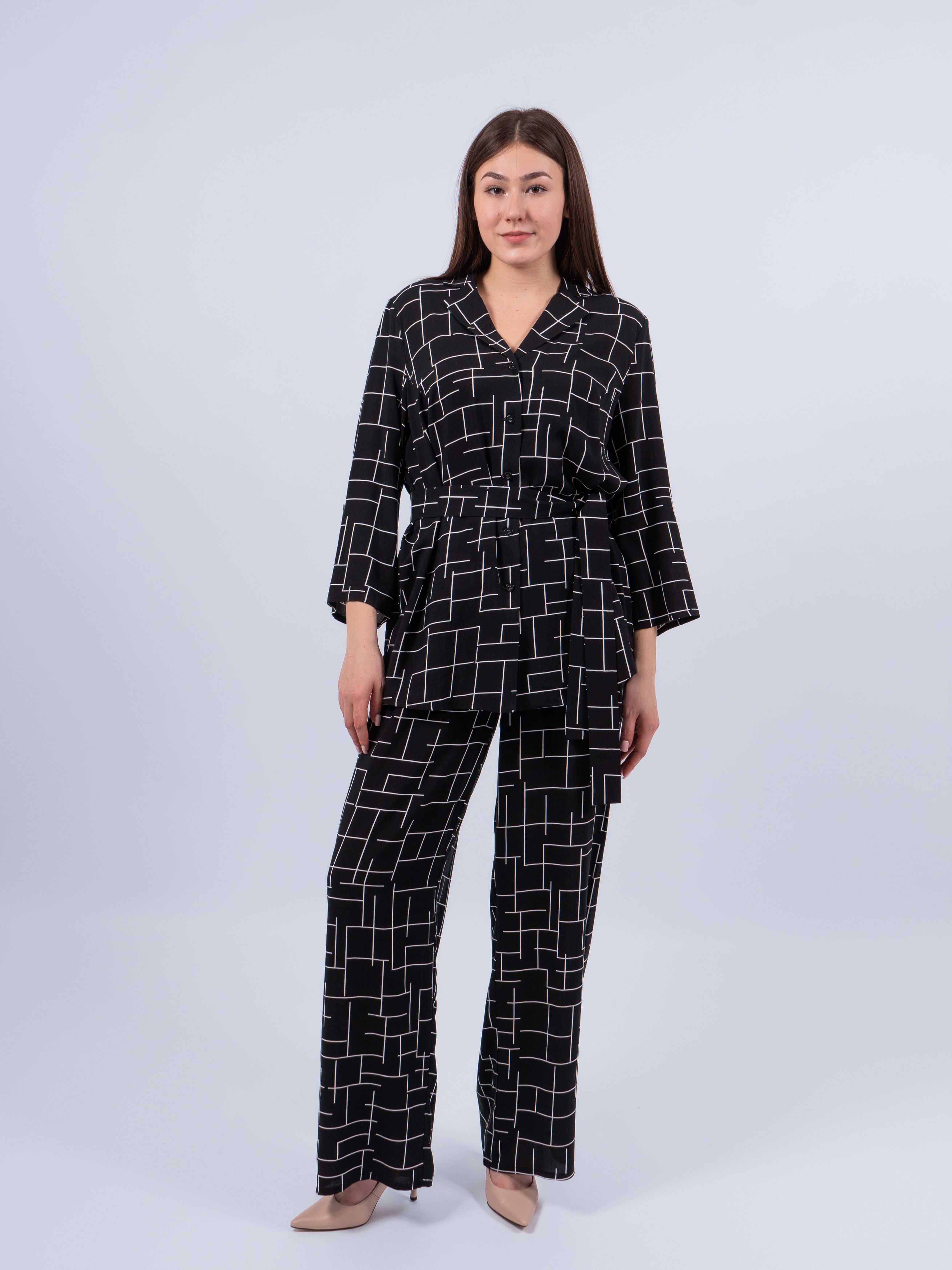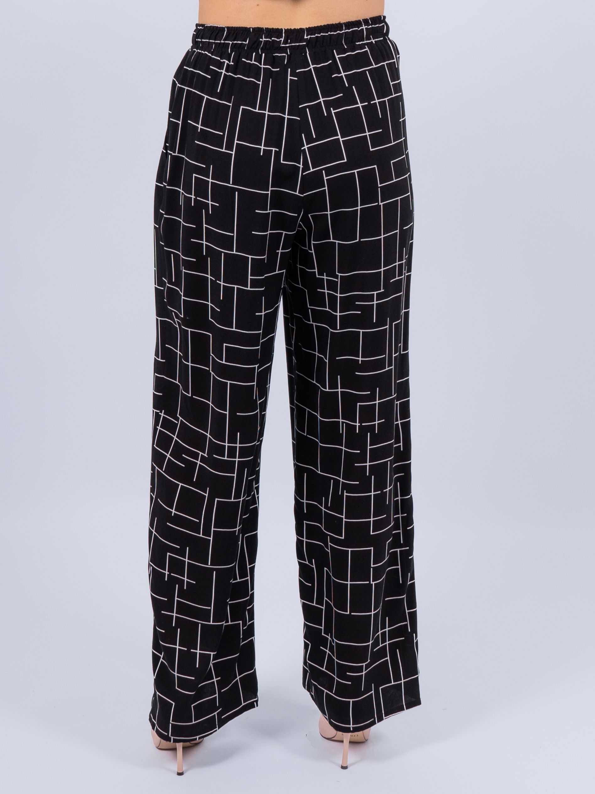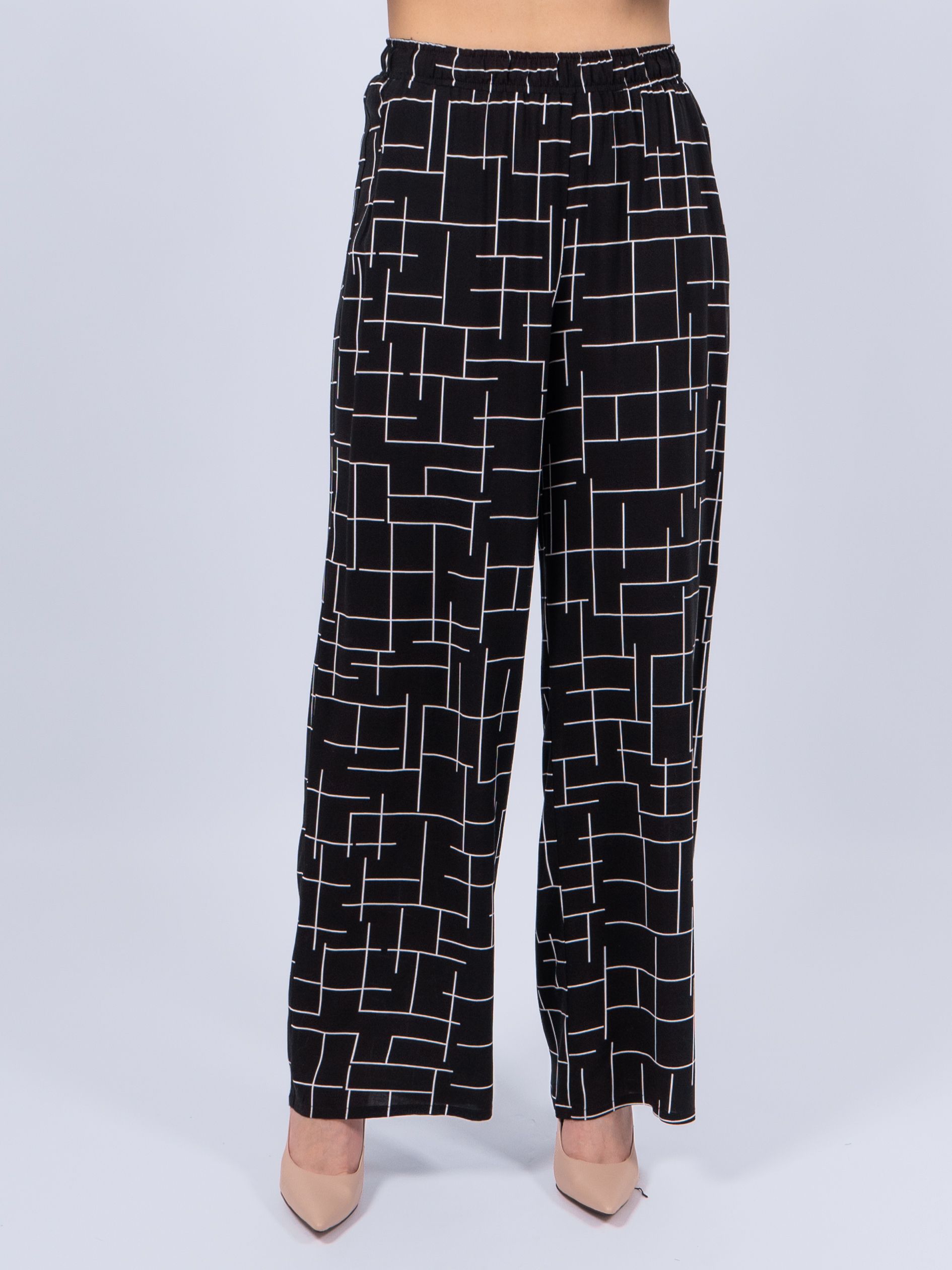 Покупая эти черные брюки с геометрическим рисунком, вы получаете стильный и функциональный элемент гардероба, который с легкостью впишется в любой образ и подчеркнет вашу неповторимость.