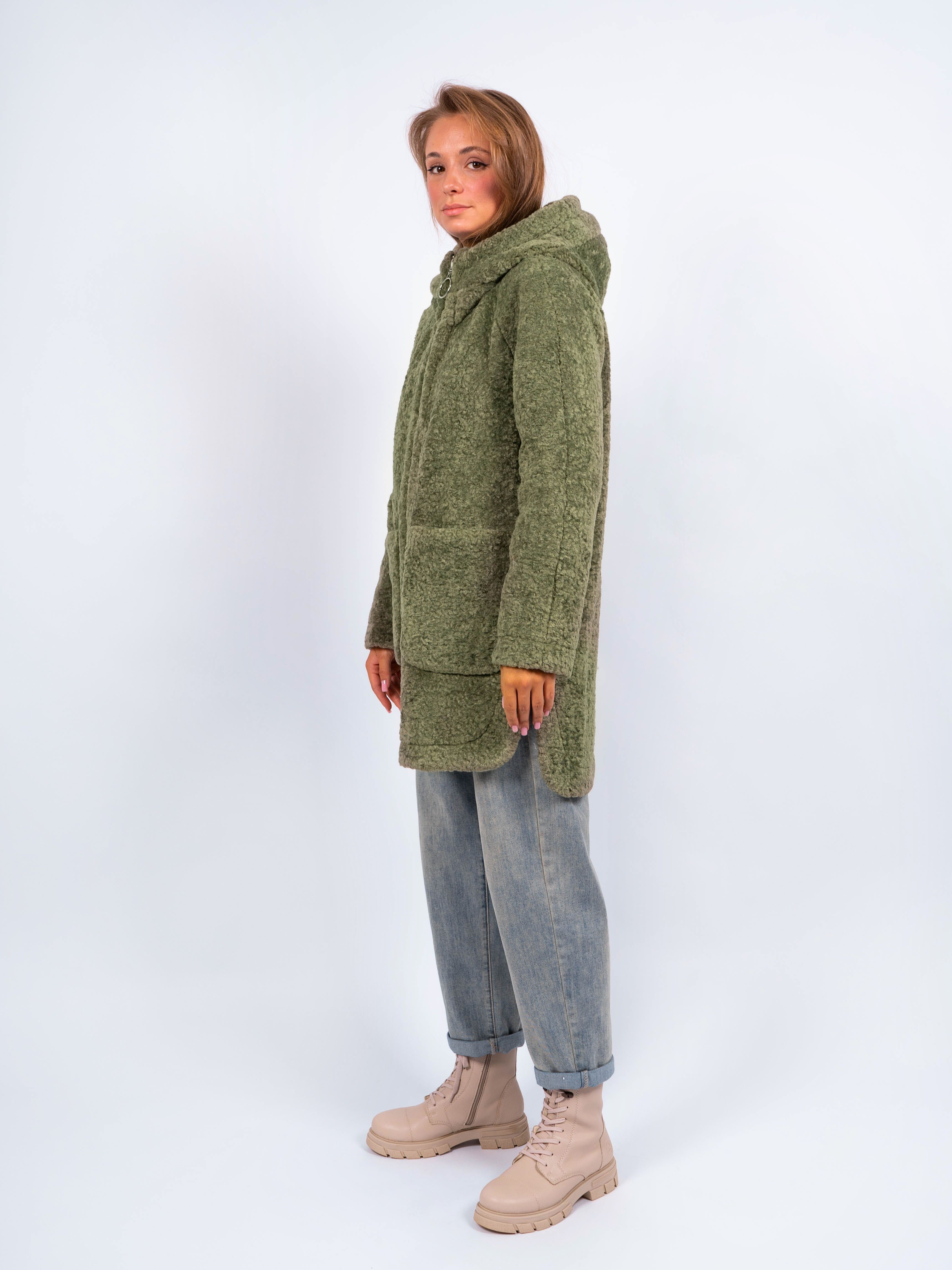 Полушубок прямого кроя идеален для женщин, высокого и невысокого роста. Шубка выполнена из высококачественной шерсти (65%), что обеспечивает комфорт и тепло в холодное время года.