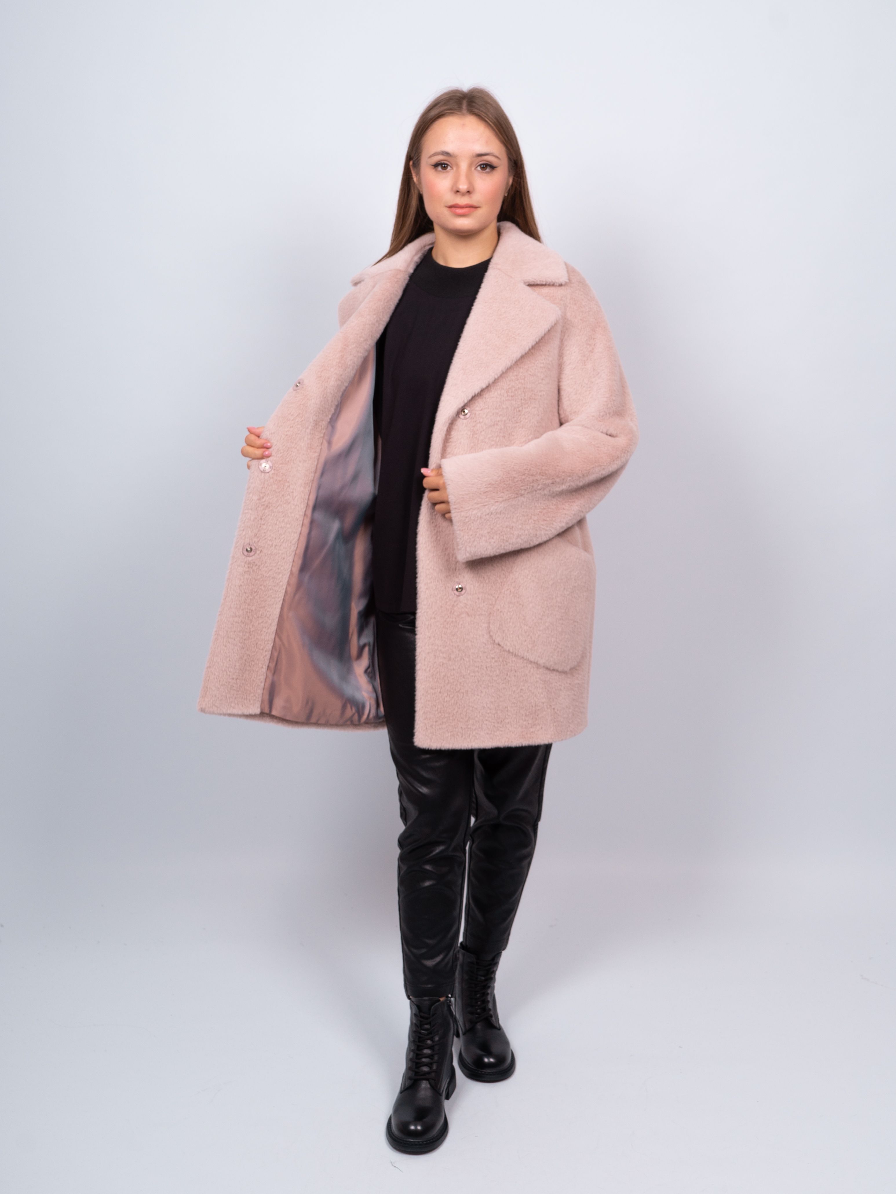 Пальто женское демисезонное из эко-меха премиум качества - отличный выбор для современной женщины. Уютная и теплая женская шуба выполнена из качественного и мягкого искусственного меха. Благодаря 70% шерсти 20% вискозы и 10% акрила ткань не деформируется, легко очищается от загрязнений, не скатывается и почти не мнется. Комфортный режим носки до -5 градусов. Шубка женская из эко меха прямого силуэта с поясом для девушек и женщин, предпочитающих комфорт в одежде. Элегантный стиль не стесняет движения и подходит для любого роста и фигуры. Модель одинаково хорошо сочетается с классической обувью, высокими сапогами, ботинками на шнуровке. Удобно носить с теплой кофтой, водолазкой с высоким горлом, свитером, брюками, платьем или юбкой различной длины и фасона. Пальто весна - осень женское шерстяное идеально подходит для переменчивого времени года. В нем уютно и тепло. Однотонный верх модного оттенка поднимет настроение и акцентирует внимание. Внутри на подкладке, спущенная линия плеча, длинныйширокий рукав, классический отложной воротник можно развернуть и закрыть шею. Застежка на кнопки спрятана и в застегнутом виде не видна. Удобные накладные карманы, широкий пояс подчёркивает талию, небольшой разрез сзади прекрасно дополняет образ. Красиво выглядит как с поясом, так и без него. Актуальная модель пальто на каждый день, производство Россия, высокое качество, аккуратные швы. Материал верха мягкий, уютный, не линяет, устойчив к истиранию, отлично держит форму, практичен и прост в уходе. Легкий оверсайз позволяет создавать различные образы в многослойном современном, спортивном или классическом стиле. Пальто женское укороченное прослужит вам ни один год при бережном уходе за вещью! Женская шуба oversize весенняя - осенняя имеет свободный прямой крой, хорошо смотрится на полных, на беременных, на худых. Отлично подойдет для фотосессий на улице, путешествий и прогулок с детьми. Благодаря широкому размерному ряду каждая девушка подберет шубку для себя. Короткая модель прекрасно подходит для высоких и невысоких. Имеются большие размеры на фигуру plus size. Современная модель пальто чебурашка станет подарком жене, подруге, дочке, подруге, как сюрприз на Новый год рождественский, на Пасху, на 8 марта, день рождения, 14 февраля. В такой шубке Вы будете великолепны и не останетесь незамеченной!