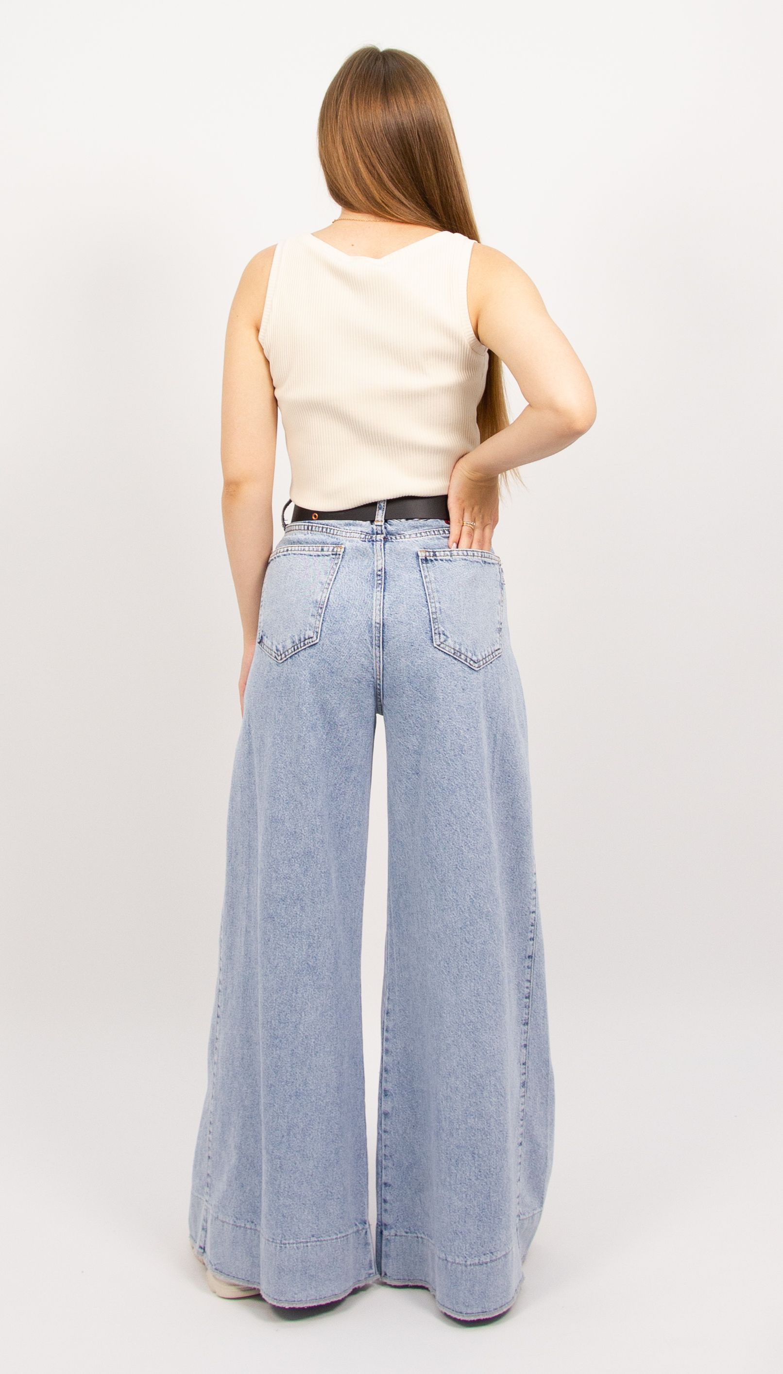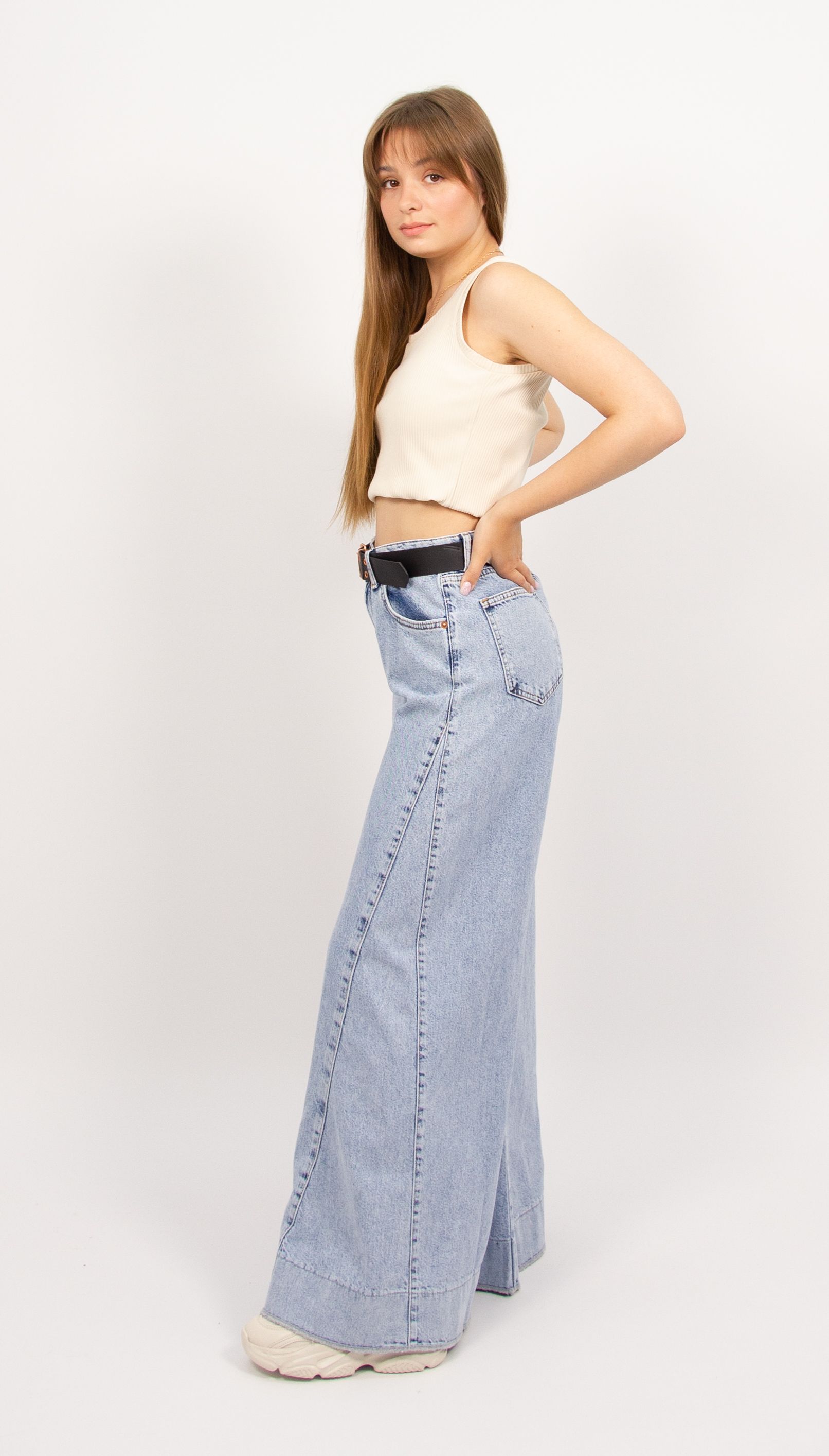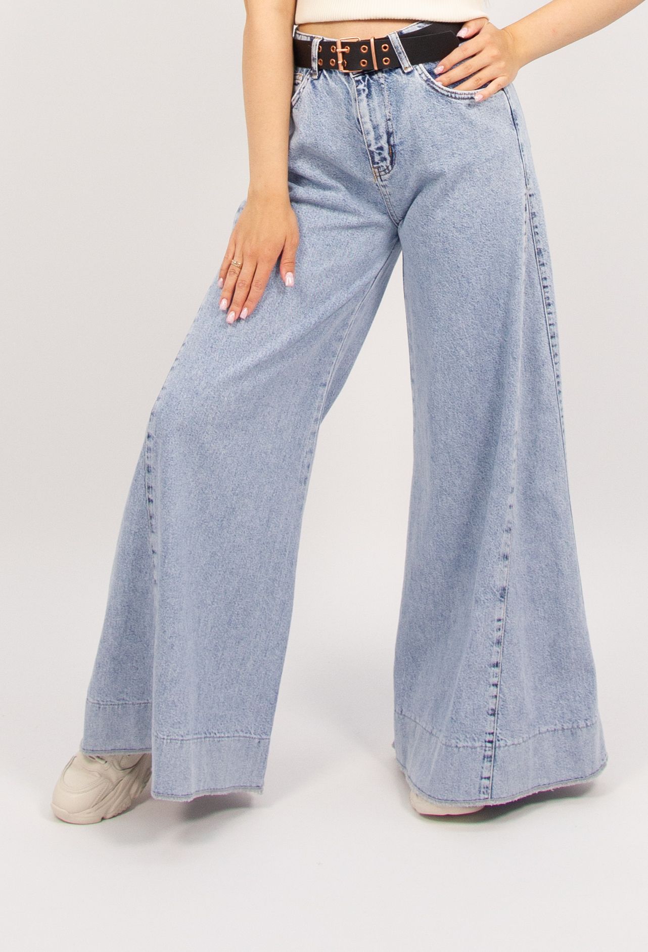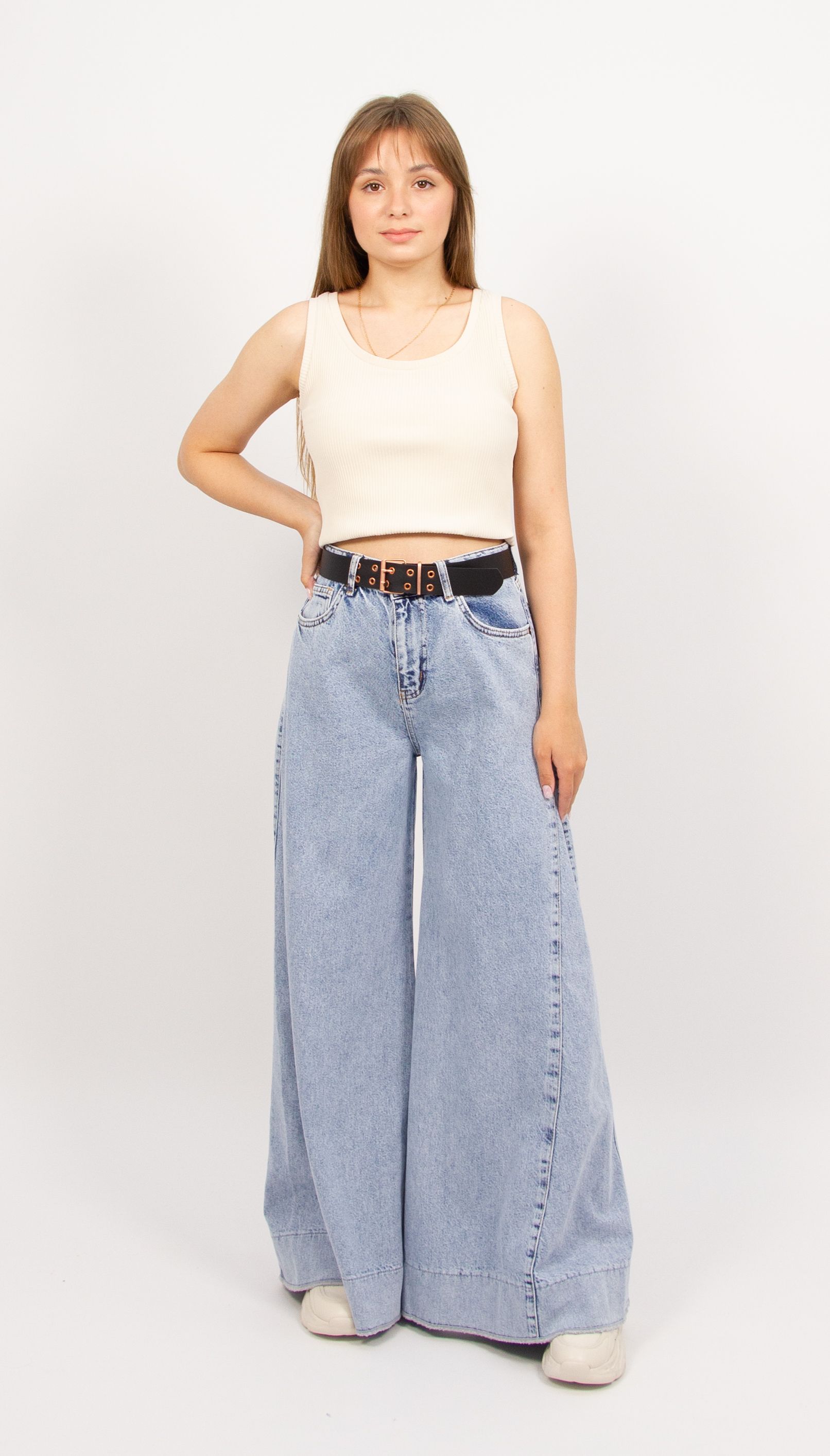 Стильные женские джинсы клеш прекрасная основа для любого гардероба повседневный базовый вариант на работу на учебу на встречу. Прямой свободный крой делает образ более подтянутым и стройным. Комфортная длина не стесняет движения и подходит для любого роста и фигуры. Джинсы-палаццо красиво подчеркивают силуэт, прекрасно сочетаются с туфлями на каблуке или плоской подошве, кроссовками, кедами, босоножками, ботинками на шнуровке. Элегантные женские штаны с высокой посадкой визуально делают живот более плоским. Подойдут для любого времени года, как весенний или осенний вариант, в них будет комфортно летним прохладным вечером и мягкой зимой. Джинсовые брюки удобно носить под любую верхнюю одежду, сочетать с блузкой, майкой, футболкой или под пиджак. Широкие от бедра с высокой посадкой на талии спереди и сзади накладные карманы отлично садятся по фигуре и не давят отрезная кокетка формируют красивый силуэт застежка на молнию и пуговицу с защитной планкой, по бокам штанин клинья для большего удобства движения. Стильные джинсы женские широкие WIDE LEG выполнены из качественного материала, аккуратные швы, ткань мягкая, приятная, абсолютно не имеет запаха, не скатывается, практически не мнется и не требует сложного ухода. Модные джинсы женские идеально подходят для мероприятий, для праздников на свежем воздухе, в школу, институт, для прогулок. Идеально садятся по фигуре, подходят для стройных. Брюки женские больших размеров хорошо смотрятся на полных. Благодаря широкому размерному ряду женские брюки подходят любому типу фигуры и для любого возраста, для женщин, для девушек. Джинсы легко комбинировать с другими деталями одежды и создавать различные образы. Современная модель прекрасно подходит для высоких и невысоких. Станет отличным подарком на день рождения, 8 марта, 14 февраля, как новогодний сюрприз, любимой женщине, дочке на лето, сестре, маме, на день всех влюбленных. Вы будете выглядеть великолепно! В нашем магазине вы также сможете найти качественные брюки домашние женские, брюки классические женские, юбки-брюки, комплекты и другую женскую и мужскую одежду, а также обувь отечественных и зарубежных производителей.