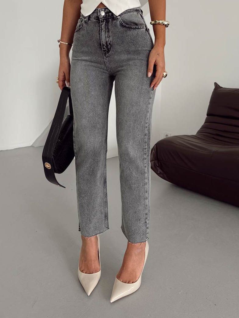 Стильные женские прямые джинсы , не зауженная модель - прекрасная основа для любого гардероба. Можно носить как повседневный базовый офисный вариант, на работу, на учебу, деловую встречу. Прямой крой делает образ более подтянутым и стройным. Комфортная длина не стесняет движения и подходит для любого роста и фигуры. Штаны для женщин с высокой талией, красиво подчеркивают силуэт, прекрасно сочетаются с туфлями на каблуке или плоской подошве, кроссовками, ботинками на шнуровке, сапогами.