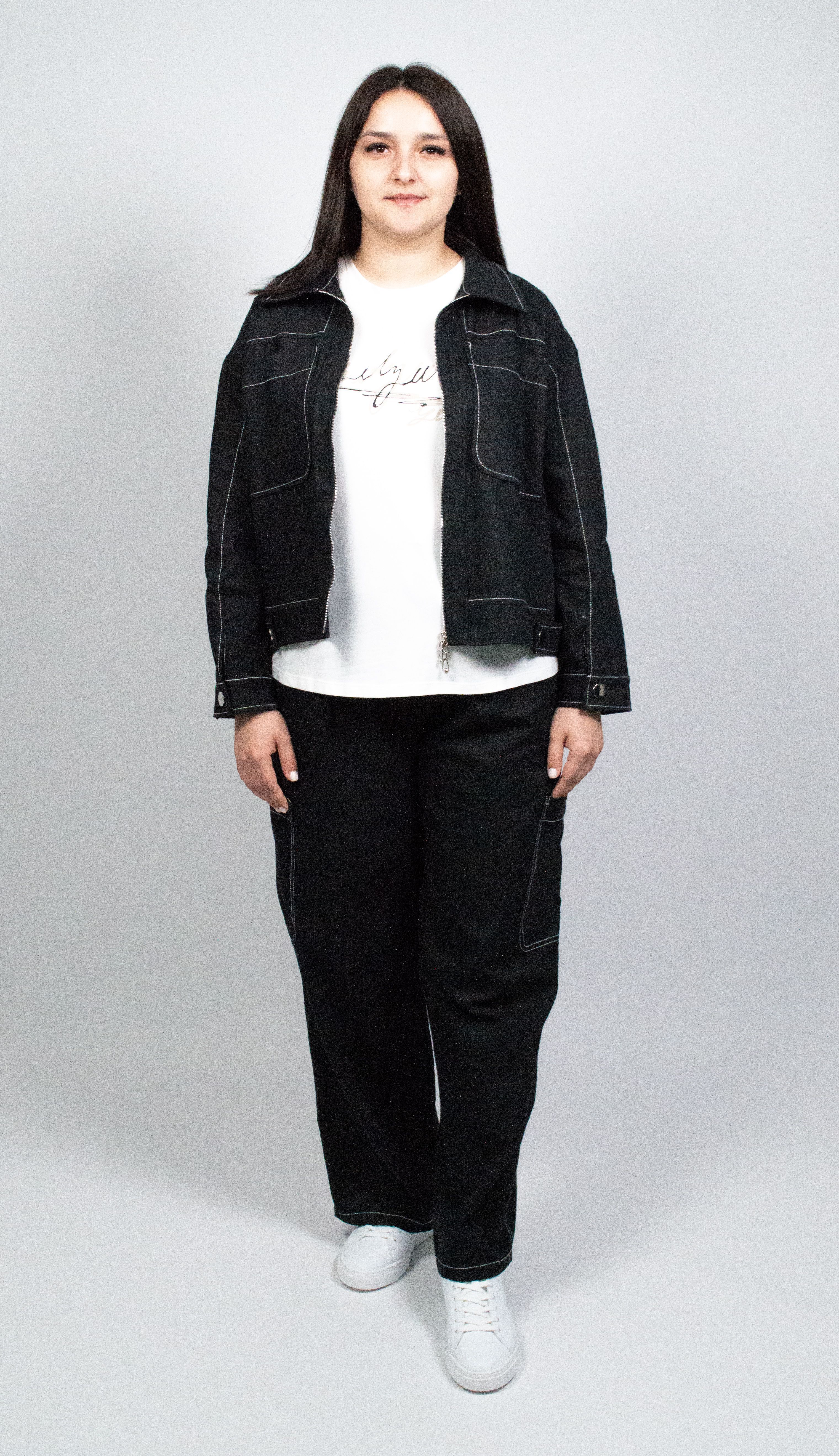 Костюм тройка женский классический джинсовый oversize – прекрасная основа для любого гардероба. Выполнен из премиальной хлопковой ткани. Можно носить как повседневный, офисный вариант, на работу, на учебу, деловую встречу. Прямой крой и комфортная длина не стесняет движения и подходит для любого роста и фигуры. Жакет с длинным рукавом прямого силуэта легко сочетать с другими брюками, джинсами, юбкой. Готовый образ - можно носить комплект, либо комбинировать с другими деталями. Элегантный брючный костюм женский выполнен из мягкой ткани, абсолютно не имеет запаха, не скатывается и не требует сложного ухода. Хлопок не вызывает аллергию, в нем не жарко и комфортно, тело дышит. Комплект пиджак + брюки + футболка с коротким рукавом оверсайз подойдет для на осень - весну или прохладное лето. Удобно носить под любую верхнюю одежду. Куртка джинсовая. Без подкладки. На молнии. Отложной классический воротник. Прямой втачной рукав. Накладные карманы. Брюки свободного кроя. Красиво садятся по фигуре. Накладные и боковые карманы. Майка свободного кроя с оригинальным принтом и овальным вырезом прекрано дополняет образ. Стильный костюм тройка для девушек и женщин предпочитающих комфорт в одежде. Подходит для прогулок или фотосессий. Модный жакет женский отлично сочетается с минималистичной бижутерией. Можно носить как основной слой, либо как верхний на майку, водолазку, лонгслив. Брюки также легко комбинировать с другими деталями одежды. Благодаря строгому стилю и свободному крою является универсальной формой одежды и подходит для праздника и работы. Костюм женский больших размеров хорошо смотрится на полных, а на стройных модель выглядит как oversize. Современный классический стиль прекрасно подходит для высоких и невысоких, для беременных. Позволяет чувствовать себя увереннее. Станет отличным подарком на день рождения, как новогодний сюрприз, любимой женщине, дочке, сестре, маме. Подойдёт для дня рождения, для дружественной вечеринки, различных торжественных мероприятий, на новый год, на свадьбу, корпоратив, юбилей, 8 Марта, День Влюблённых. В таком модном образе Вы будете выглядеть великолепно!