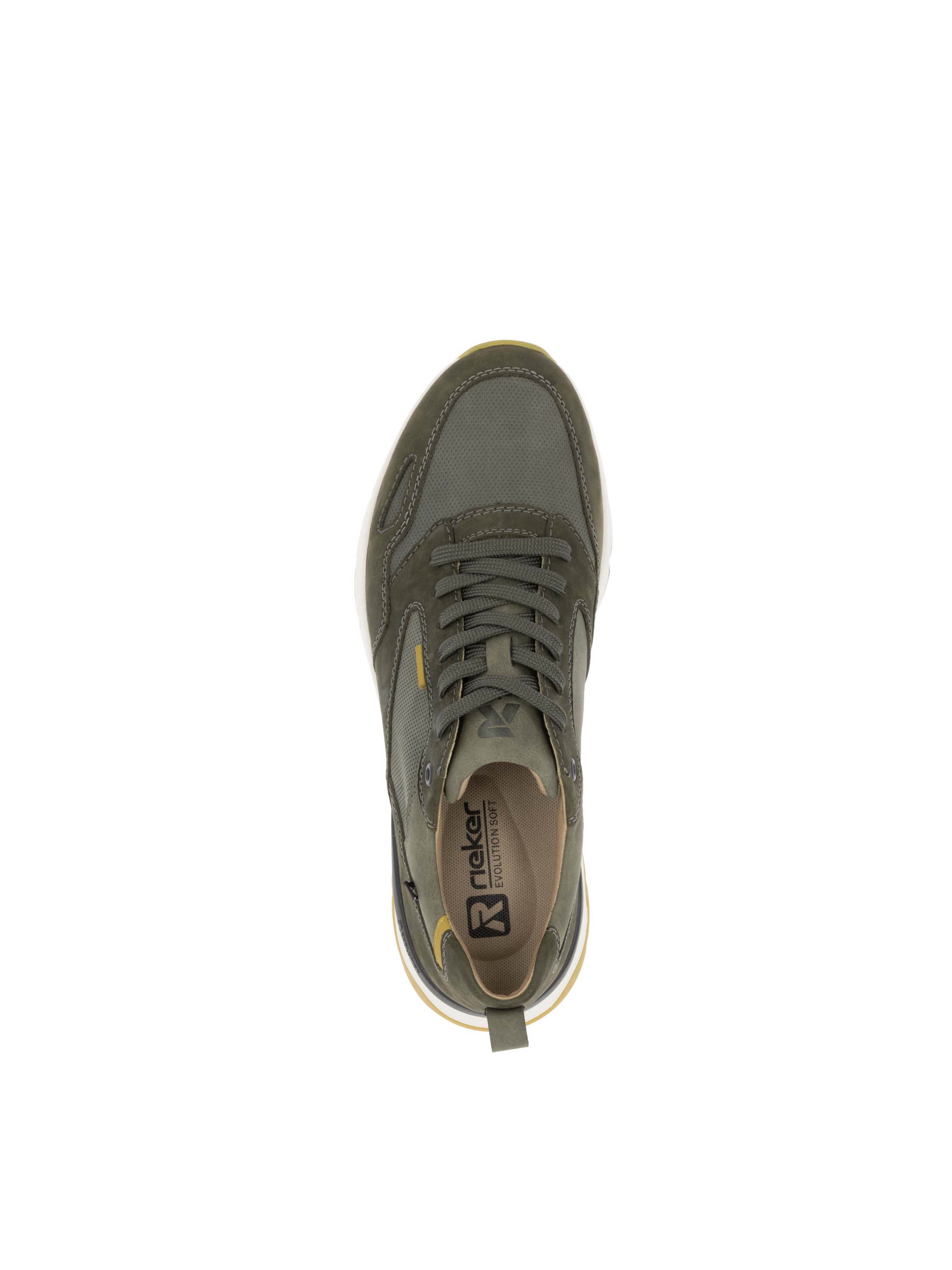 Рекомендуем рассмотреть зеленые мужские кроссовки на шнурках от немецкого бренда Rieker, сочетающие в себе качество, комфорт, простой и современный дизайн.