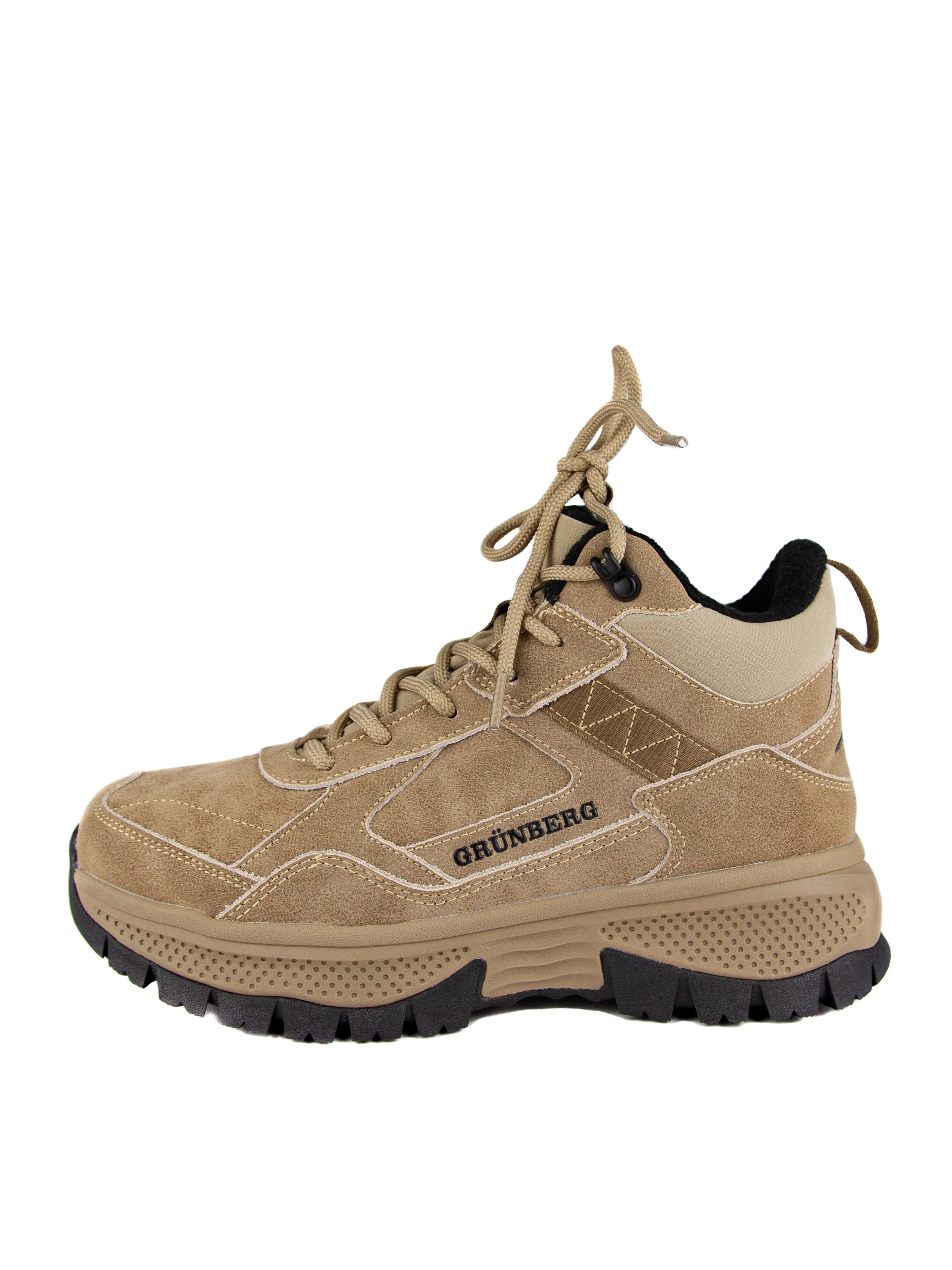Кроссовки женские известного бренда GRUNBERG. Верх изготовлен из натурального нубука и синтетического материала темно-бежевого цвета. Материал подкладки искусственная шерсть. Идеально подойдут на зиму и станут отличным завершением к Вашему гардеробу.