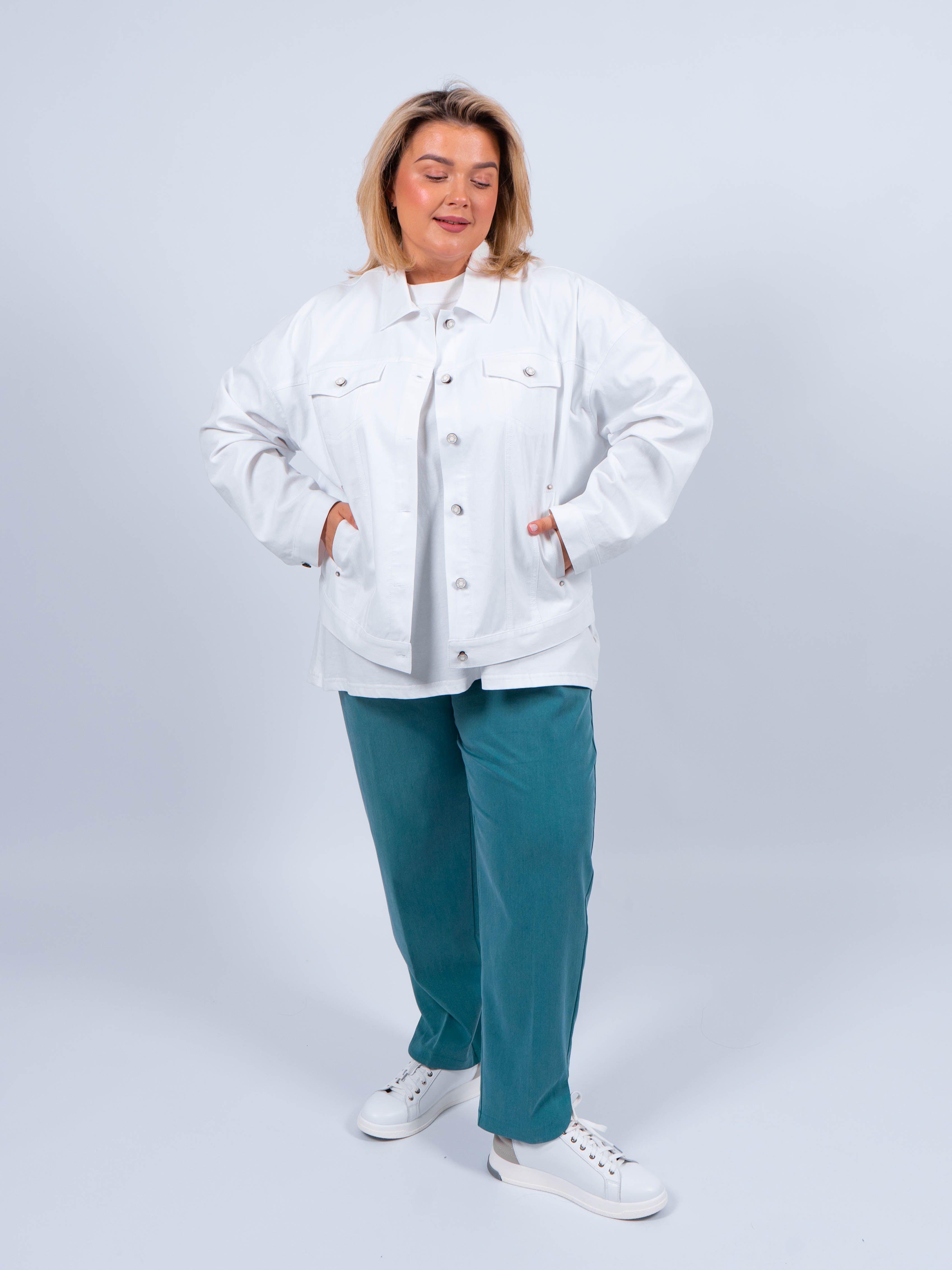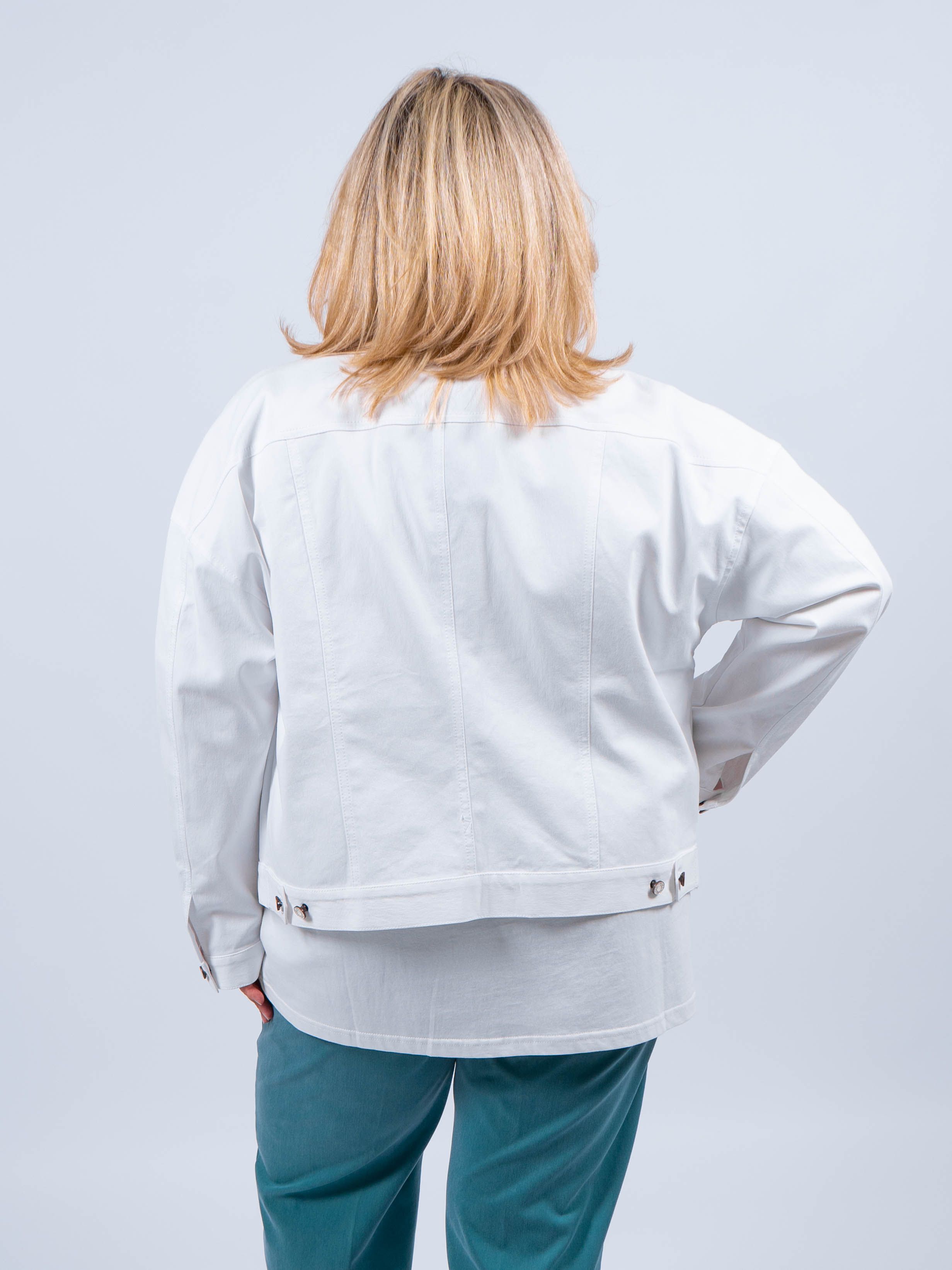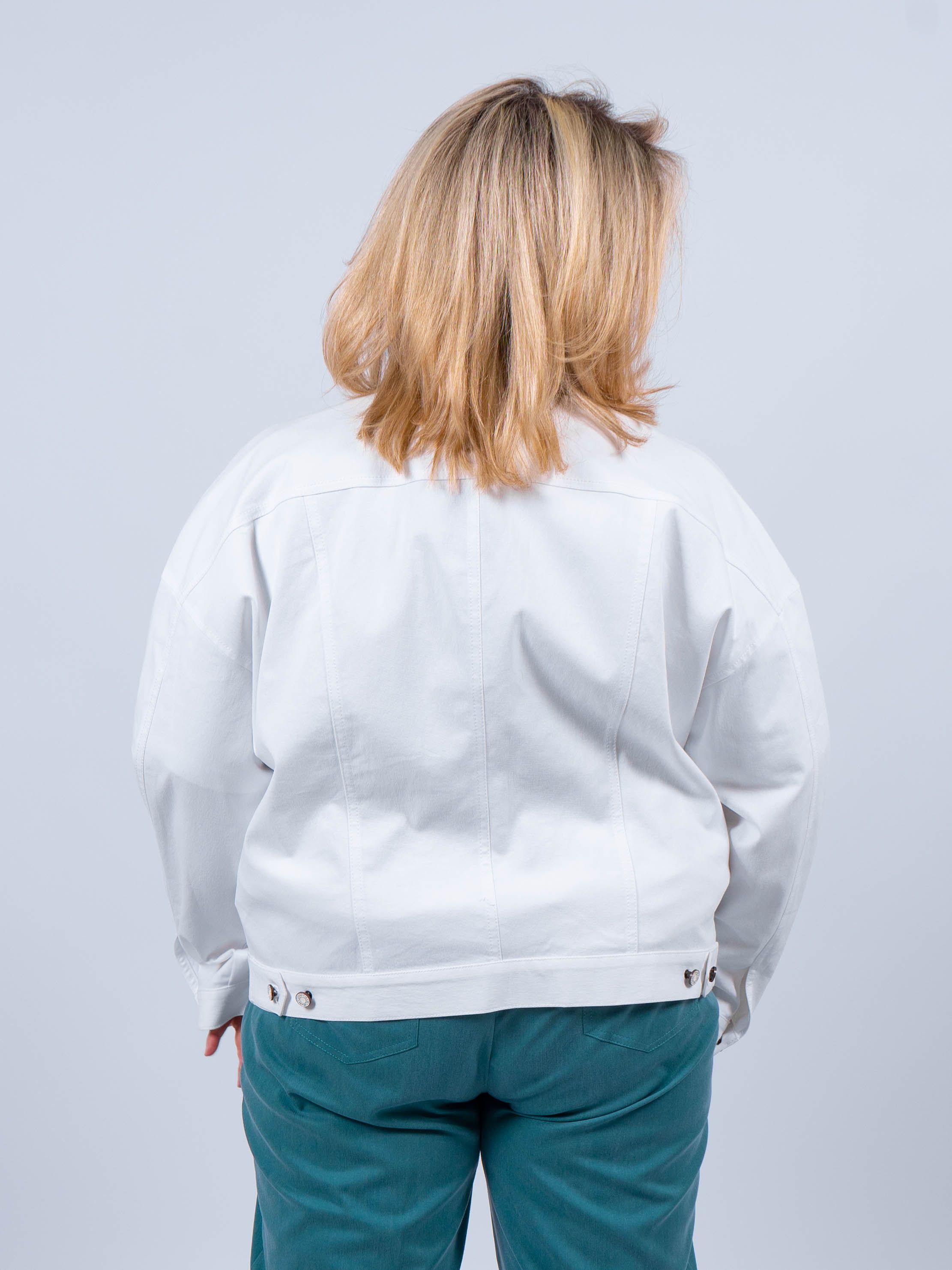 Джинсовка выполнена из высококачественного материала, обеспечивающего комфорт и приятные тактильные ощущения. Белый цвет придает ей особый шарм и стильный вид.