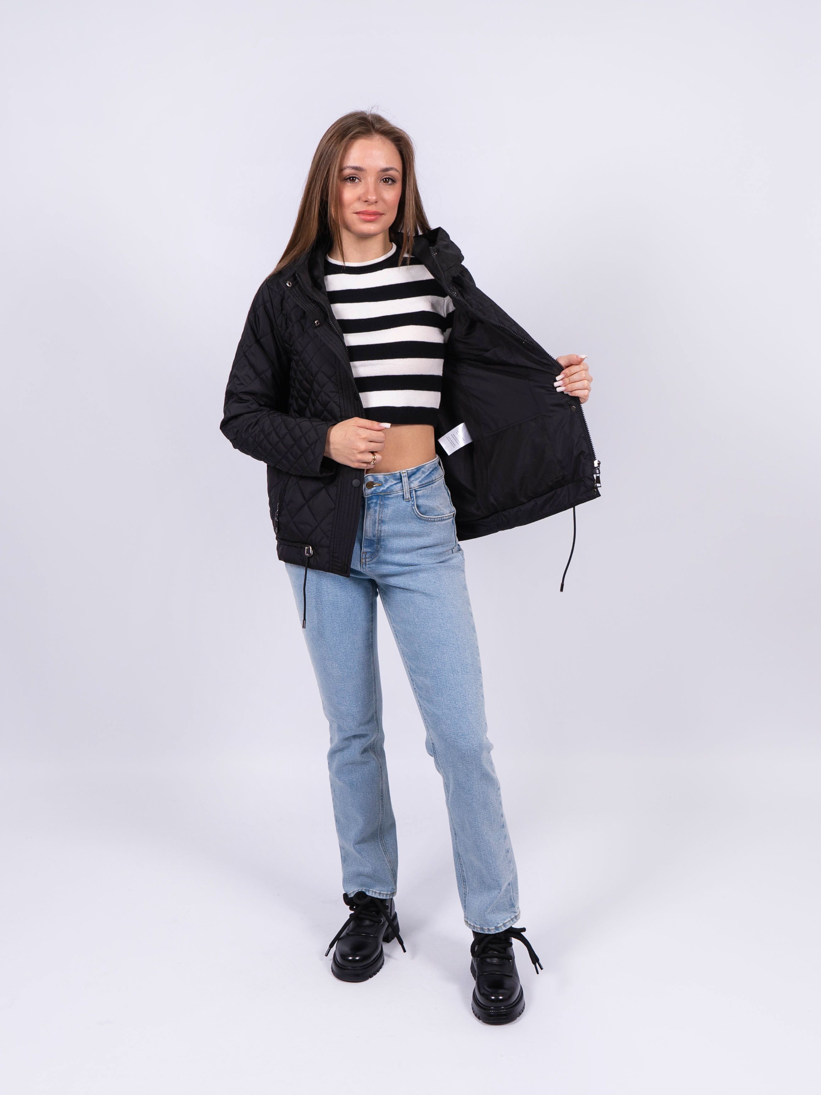 Демисезонная женская куртка черная идеальный выбор для комфортного и стильного осенне-весеннего периода. Она обеспечит вам тепло и защиту от холода благодаря своему превосходному качеству и функциональности.