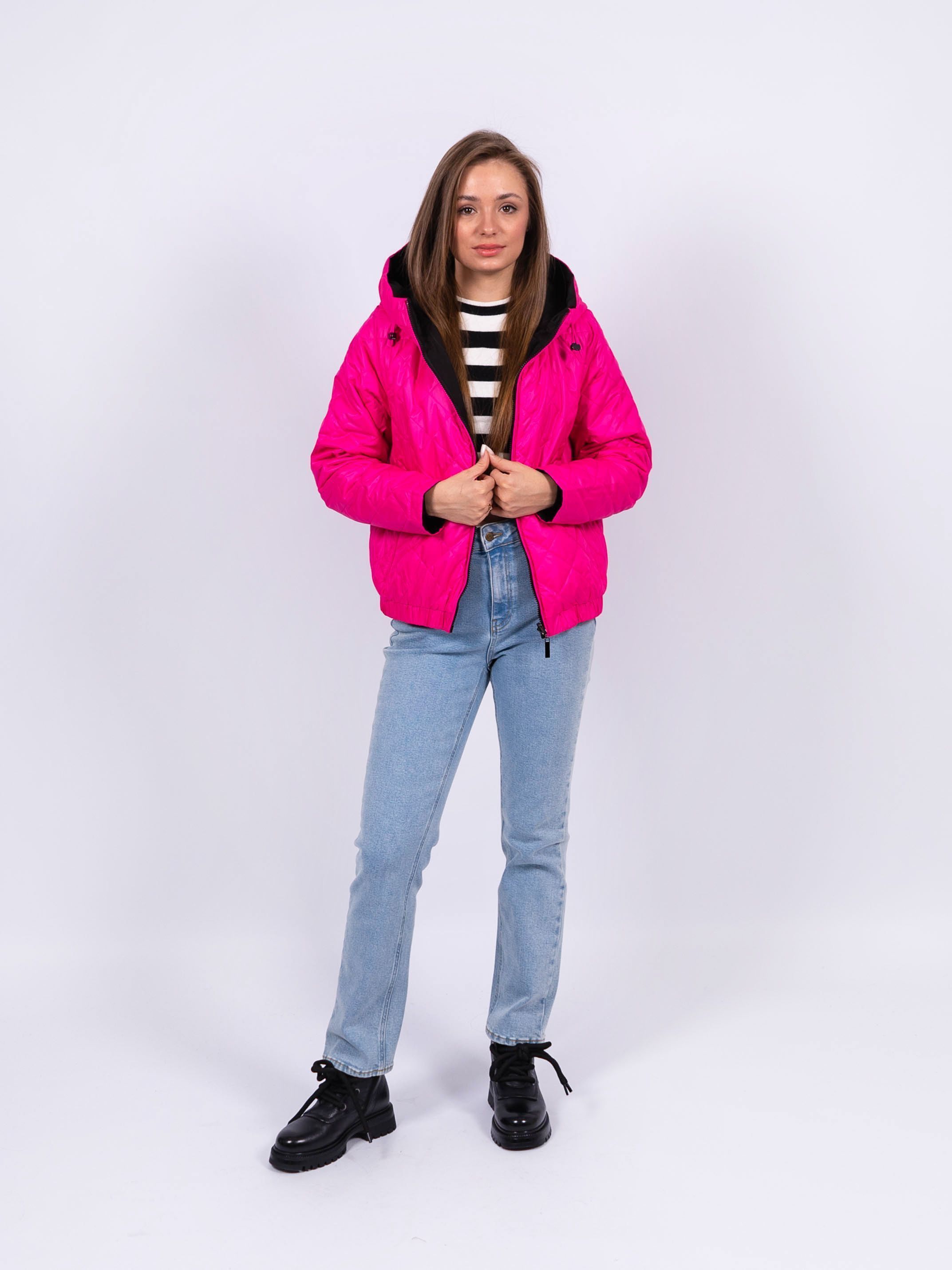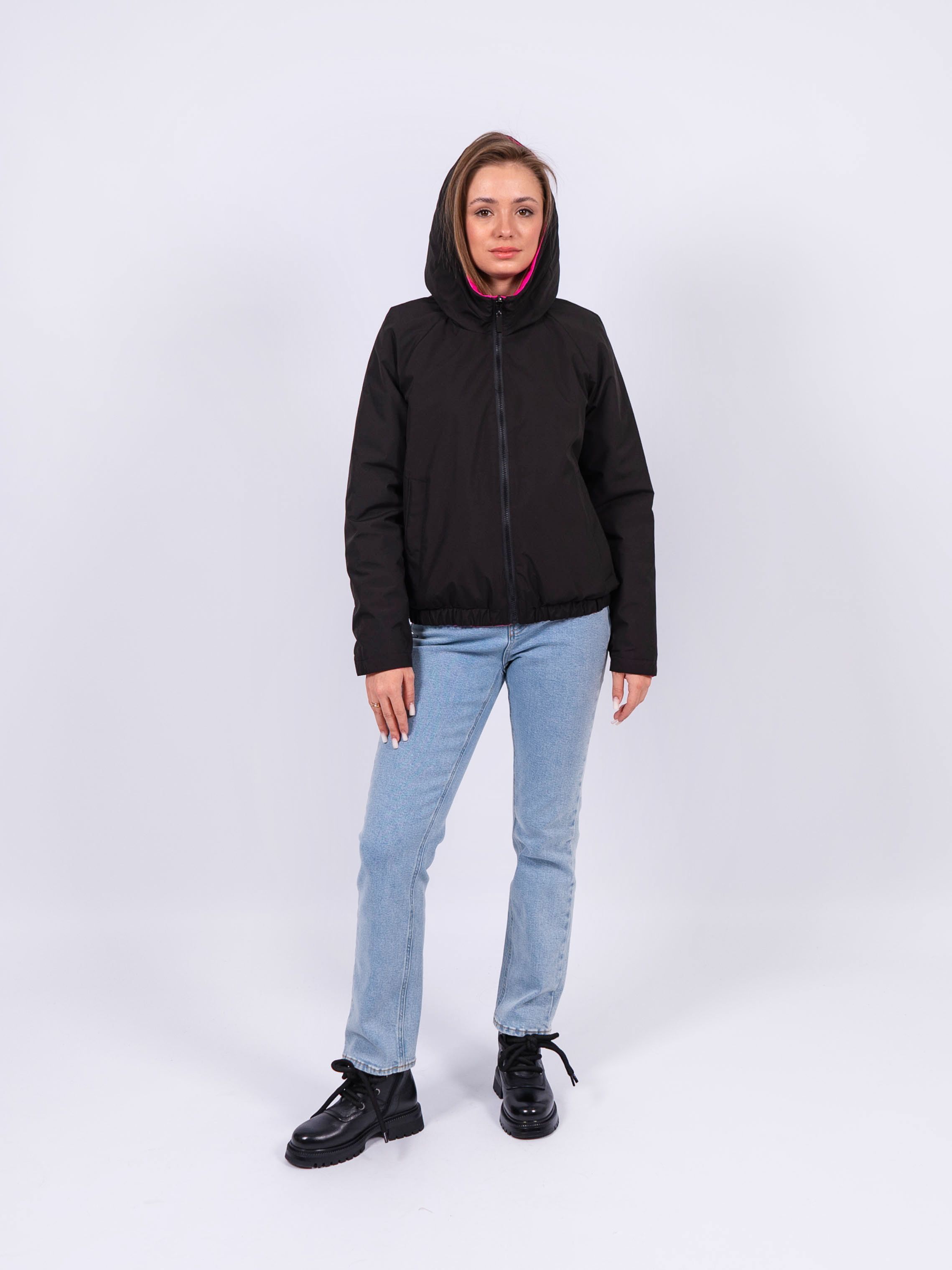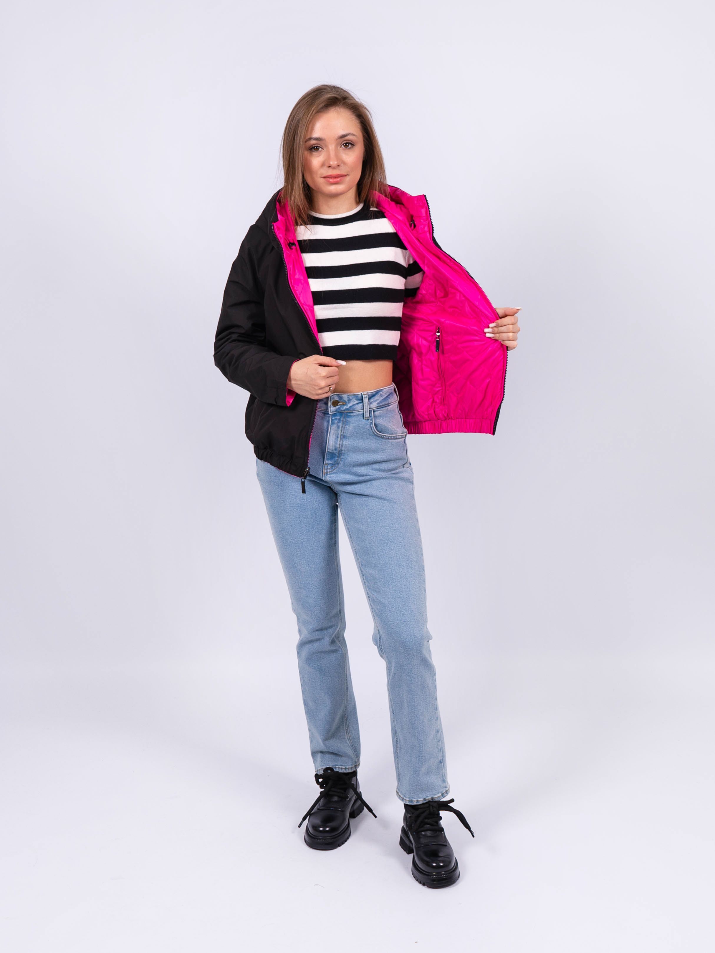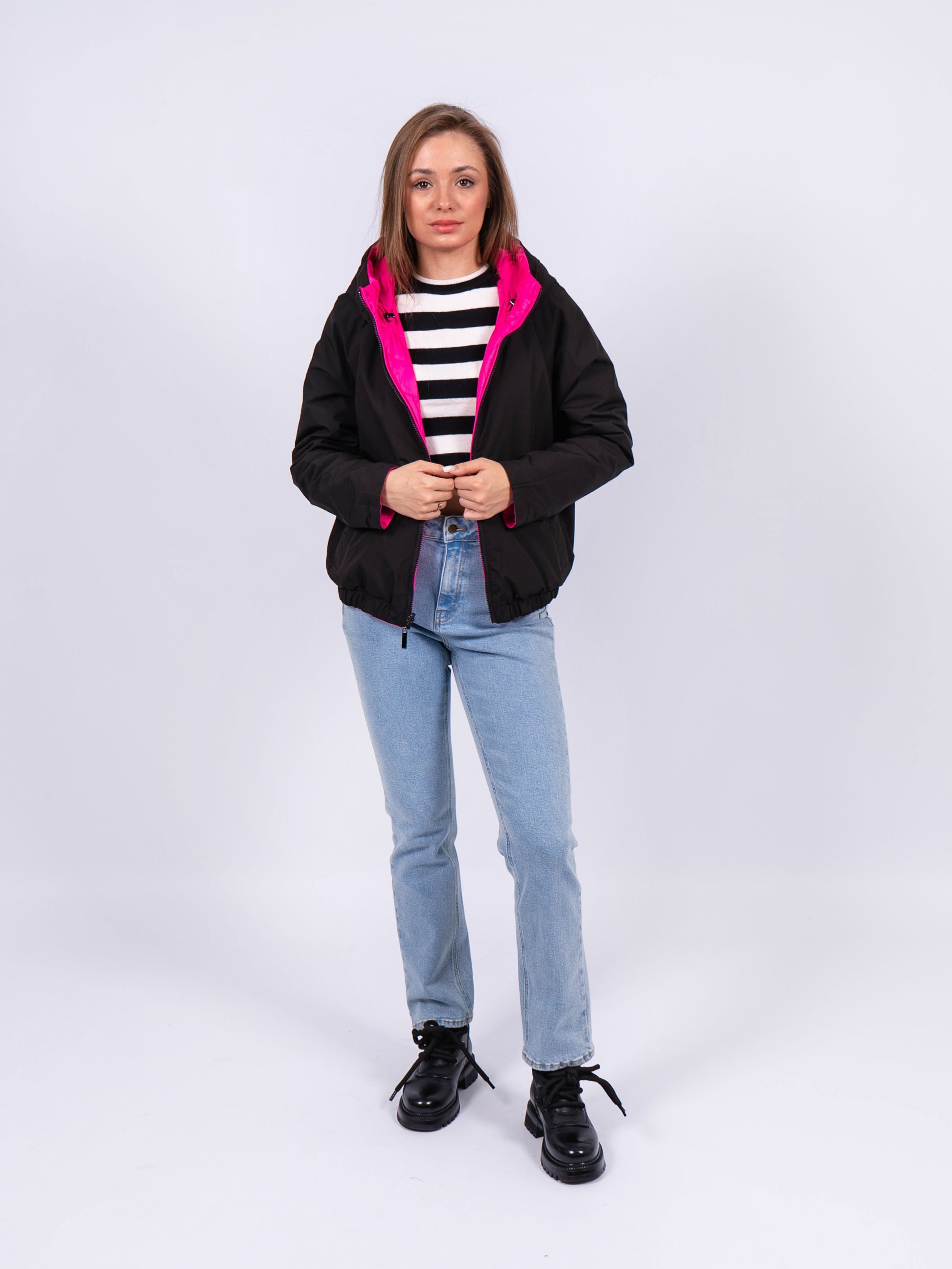 Демисезонная женская двусторонняя куртка черная/фуксия идеальный выбор для комфортного и стильного осенне-весеннего периода. Она обеспечит вам тепло и защиту от холода благодаря своему превосходному качеству и функциональности.