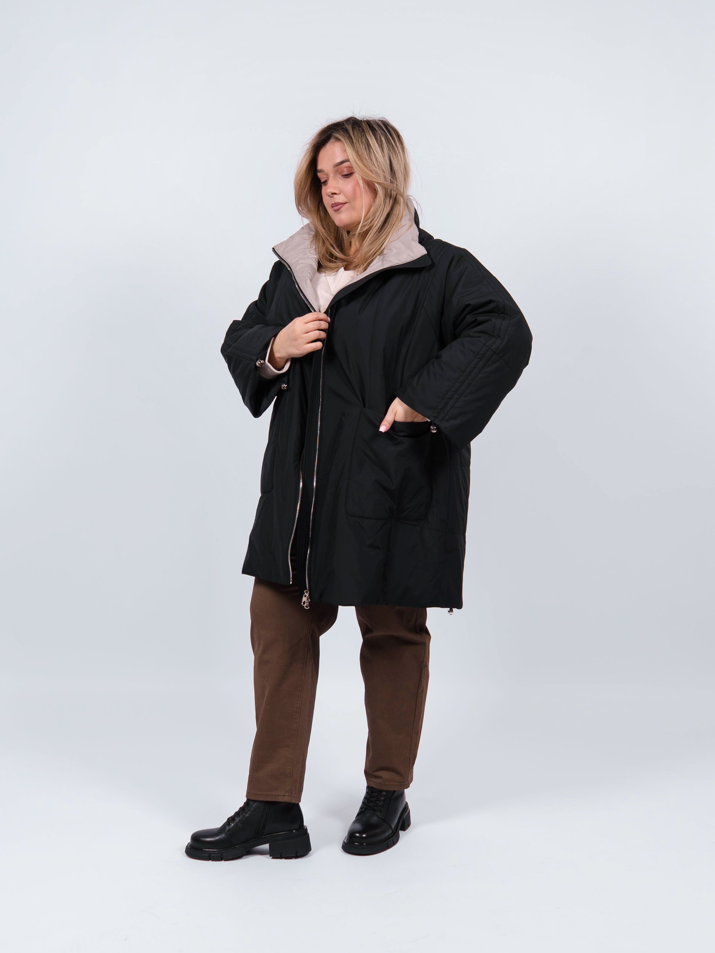 Дизайн данного пальто очаровывает своей простотой и изысканностью. Оно имеет удобную застежку на молнию, что позволяет легко и быстро надевать и снимать куртку. Высокий воротник стойка. Накладные карманы не только добавляют функциональности, но и являются стильным акцентом на модели. Вы сможете без проблем хранить в них необходимые мелочи или просто разместить руки для дополнительного комфорта. Длина изделия в 44 размере 87 см.