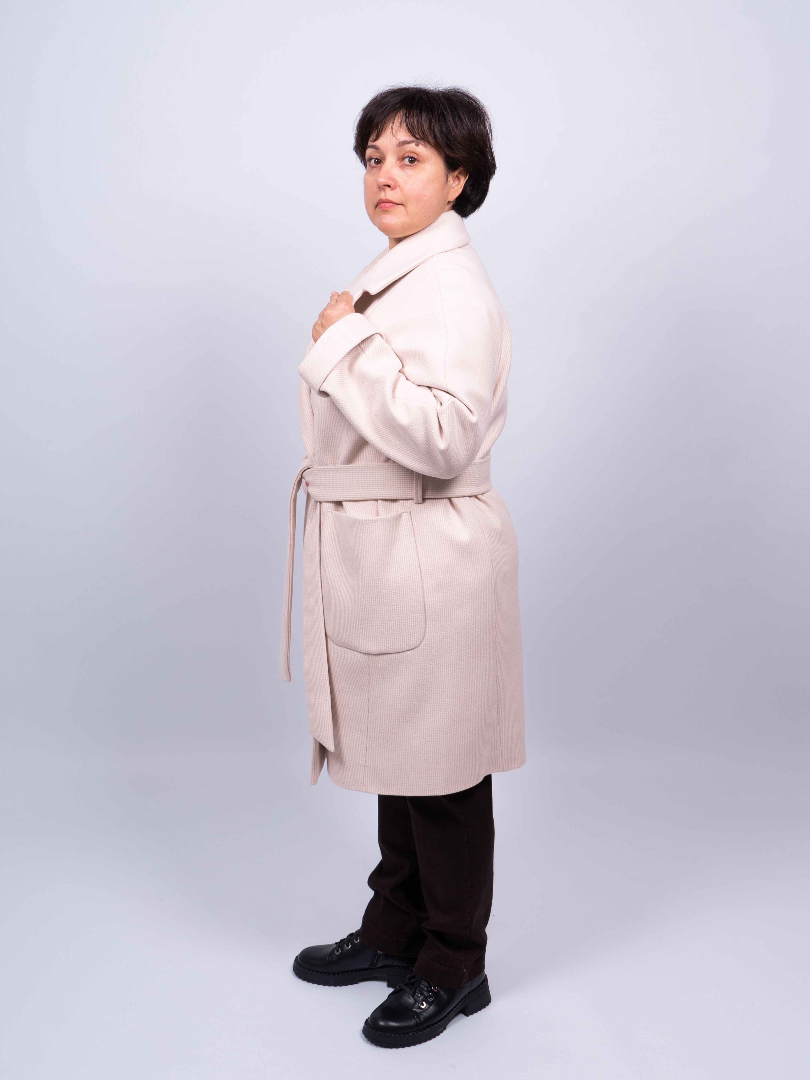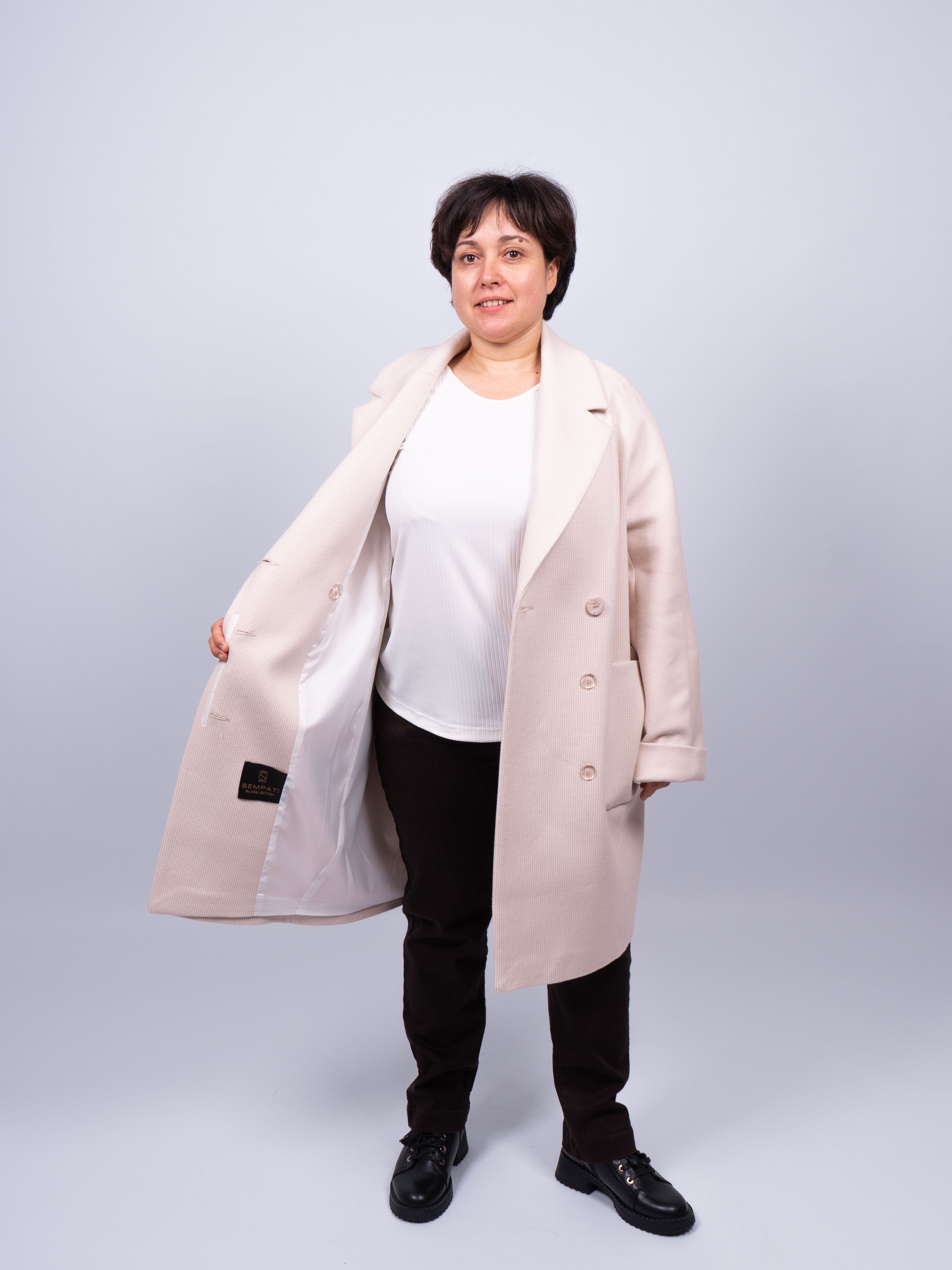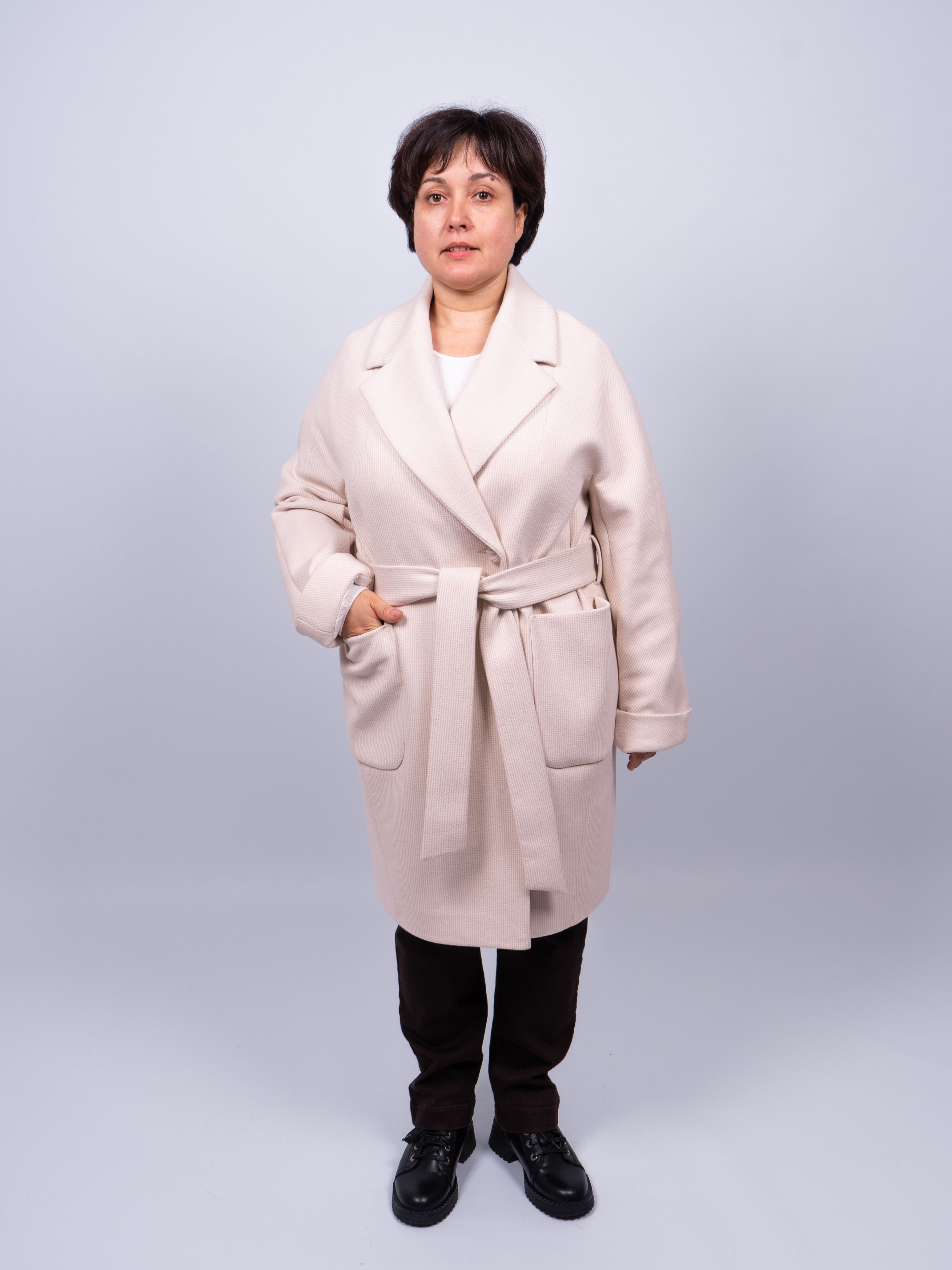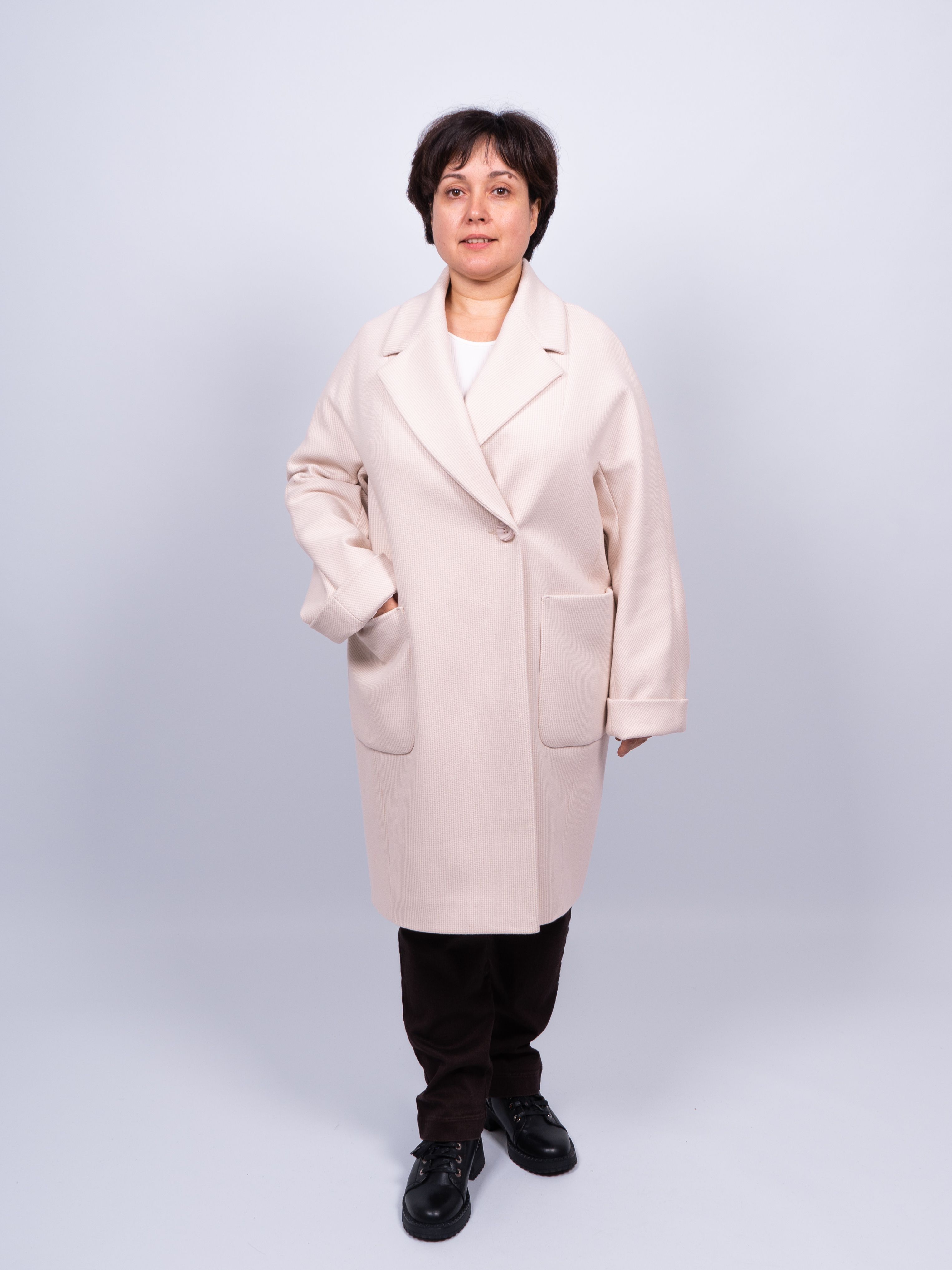 Оригинальное пальто добавит Вашему образу женственности, элегантности и шарма. Демисезонное пальто светло-бежевого цвета хорошо сочетается с любой обувью. Легкий оверсайз (oversize) позволяет создавать модные и современные образы.